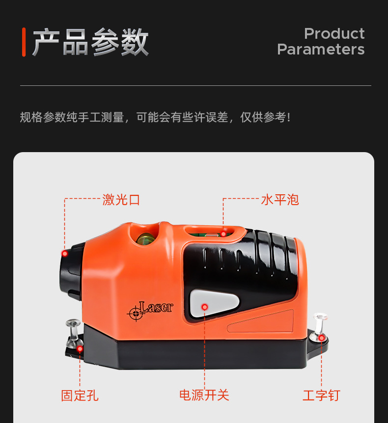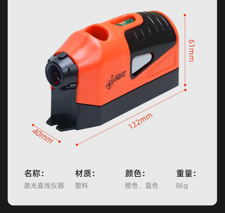| Modelo | Naranja [mini láser de cableado], nivel de ratón, nivel de ratón + soporte |