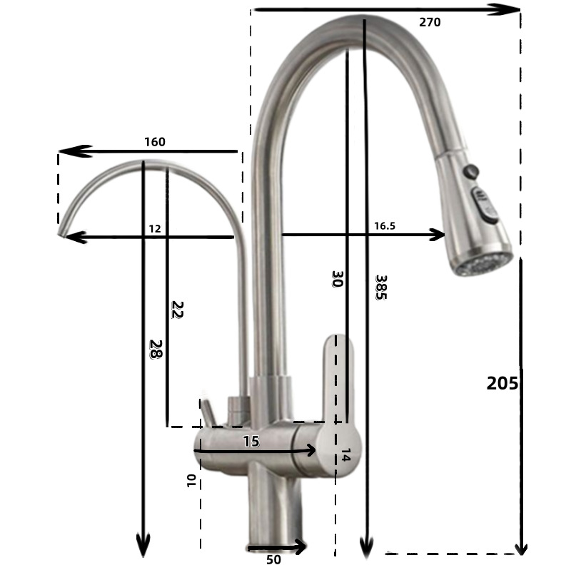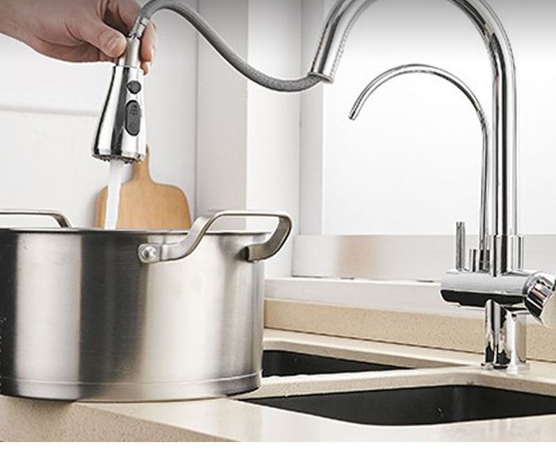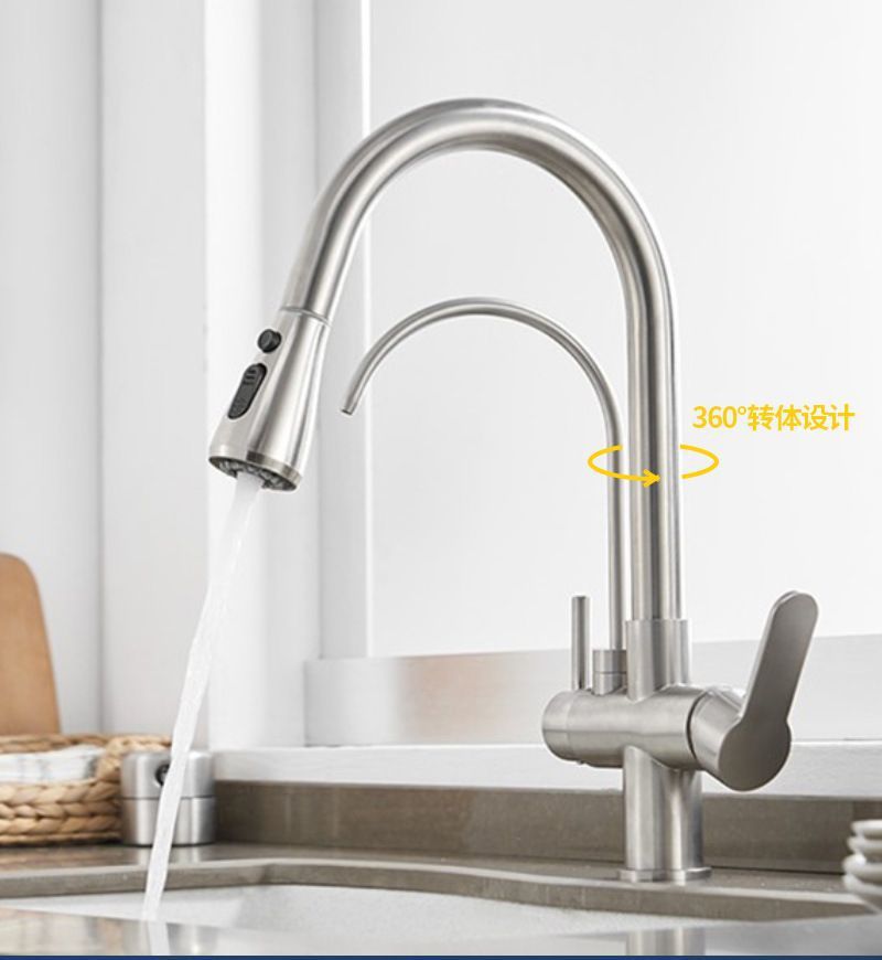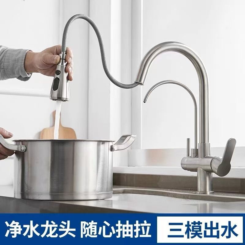Grifo Purificador de Agua Extraíble Tres en Uno para Fregadero de Cocina con Función de Purificación de Agua Giratoria y Retráctil, Venta Directa de Fabricante Transfronterizo