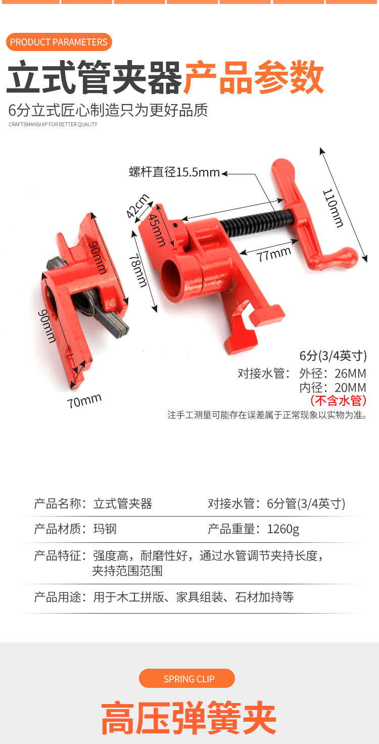 Abrazadera de tubería de agua Abrazadera de placa de carpintería Abrazadera de tubería Abrazadera de tubería de acero Carpintería Clip f Clip rápido Clip de carpintería 4 puntos 6 Clip de tubería de agua