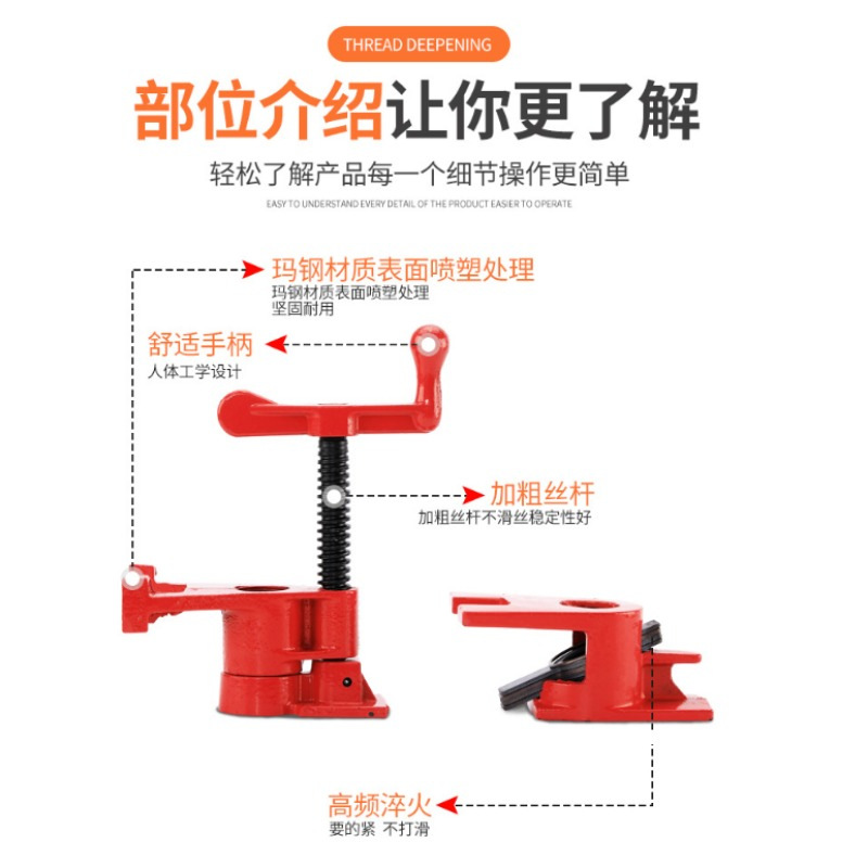 1/2 "3/4" Abrazadera de tubería pesada Juego de abrazadera de tubería encolada de madera, accesorio de conexión de tablero de madera, herramientas manuales de carpintero