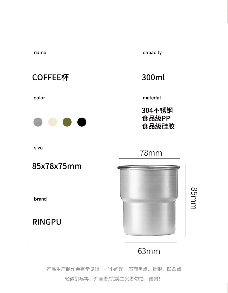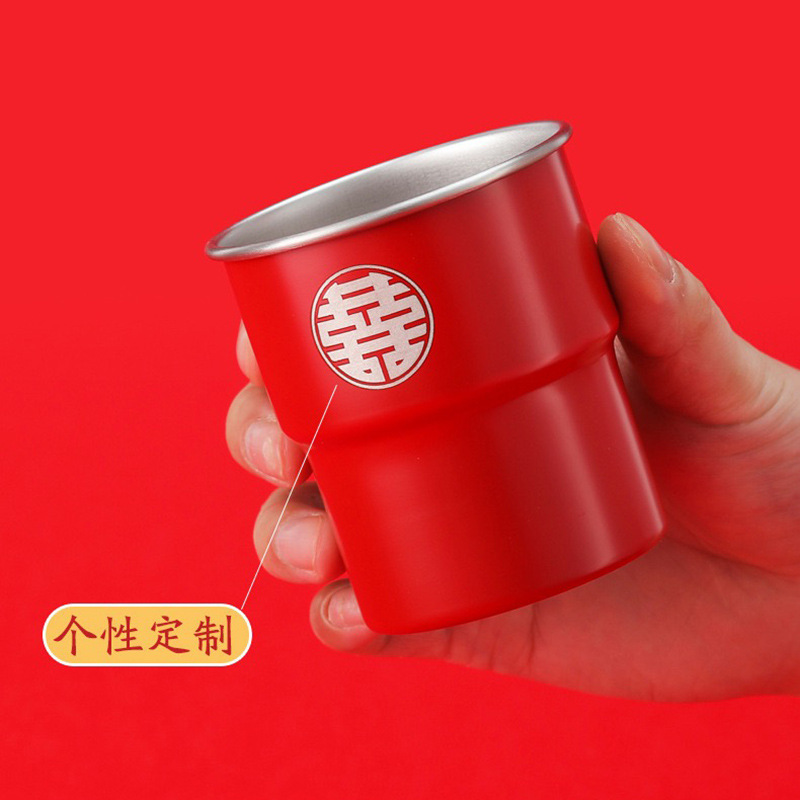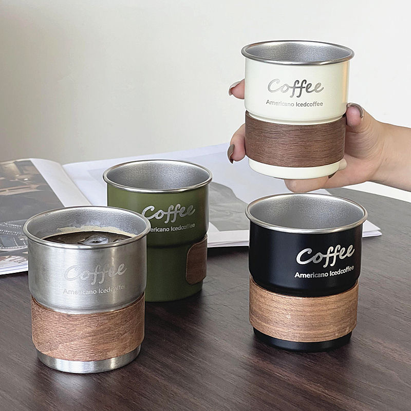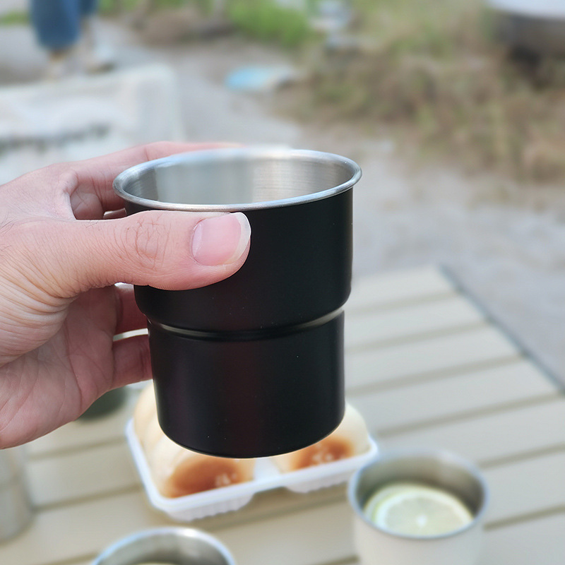 Taza de agua plegable 304 taza de café de acero inoxidable taza de acampamiento al aire libre taza de mango taza de escalones grabación plegable portátil