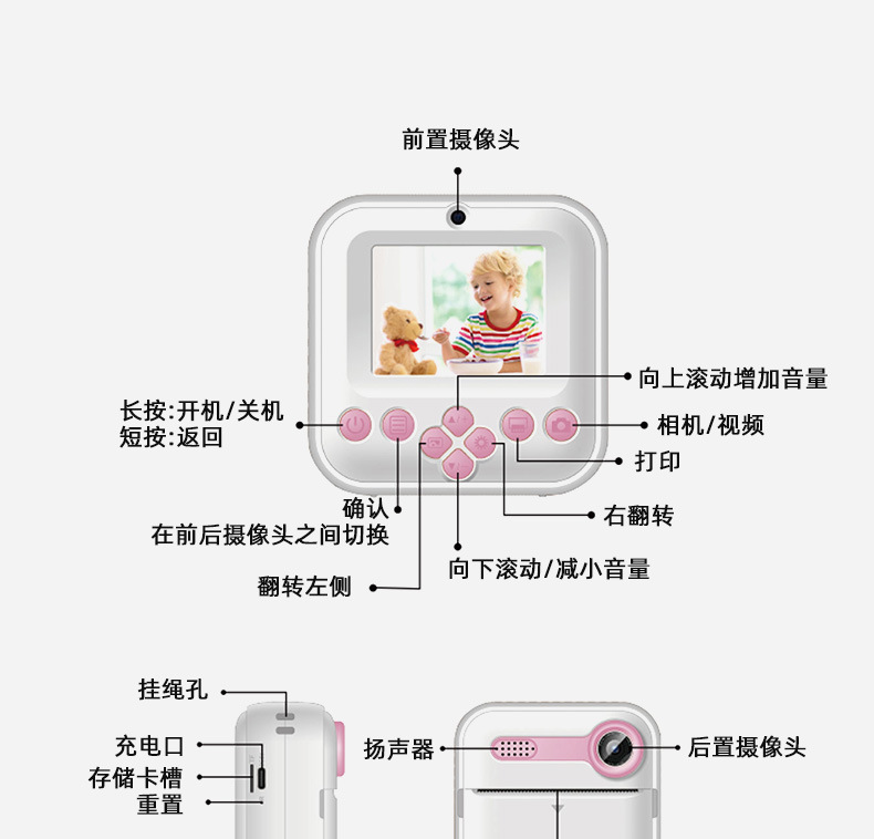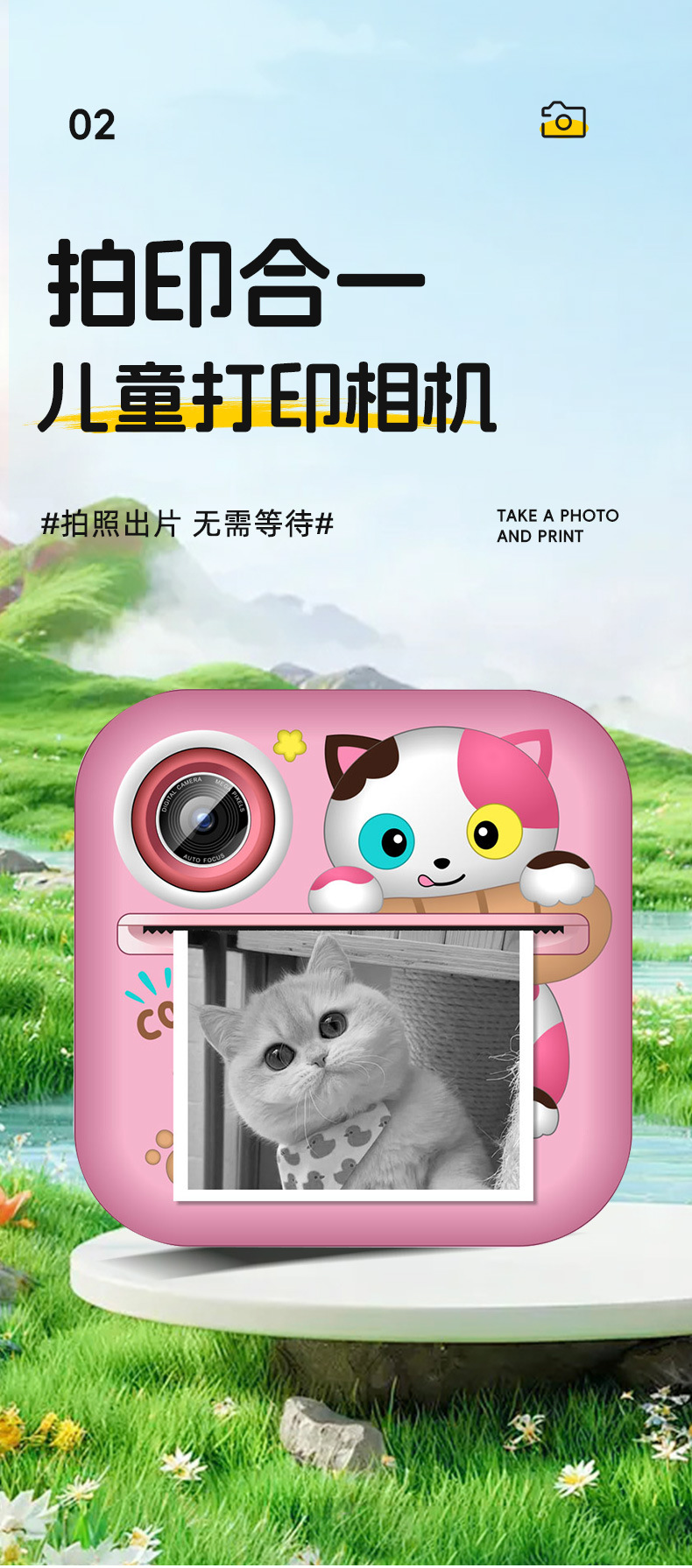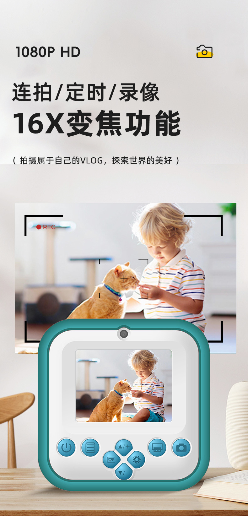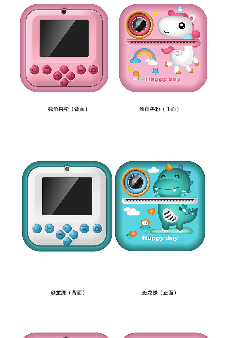 | Color | Cámara Unicornio rosa + 1 rollo de papel de impresión, Cámara de dinosaurio verde + 1 rollo de papel de impresión, Cámara de gato Rosa + 1 rollo de papel de impresión, tarjeta de memoria 8g, tarjeta de memoria 16g, tarjeta de memoria 32g |
