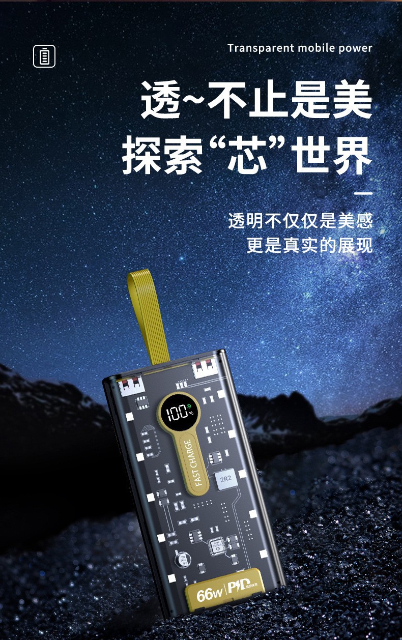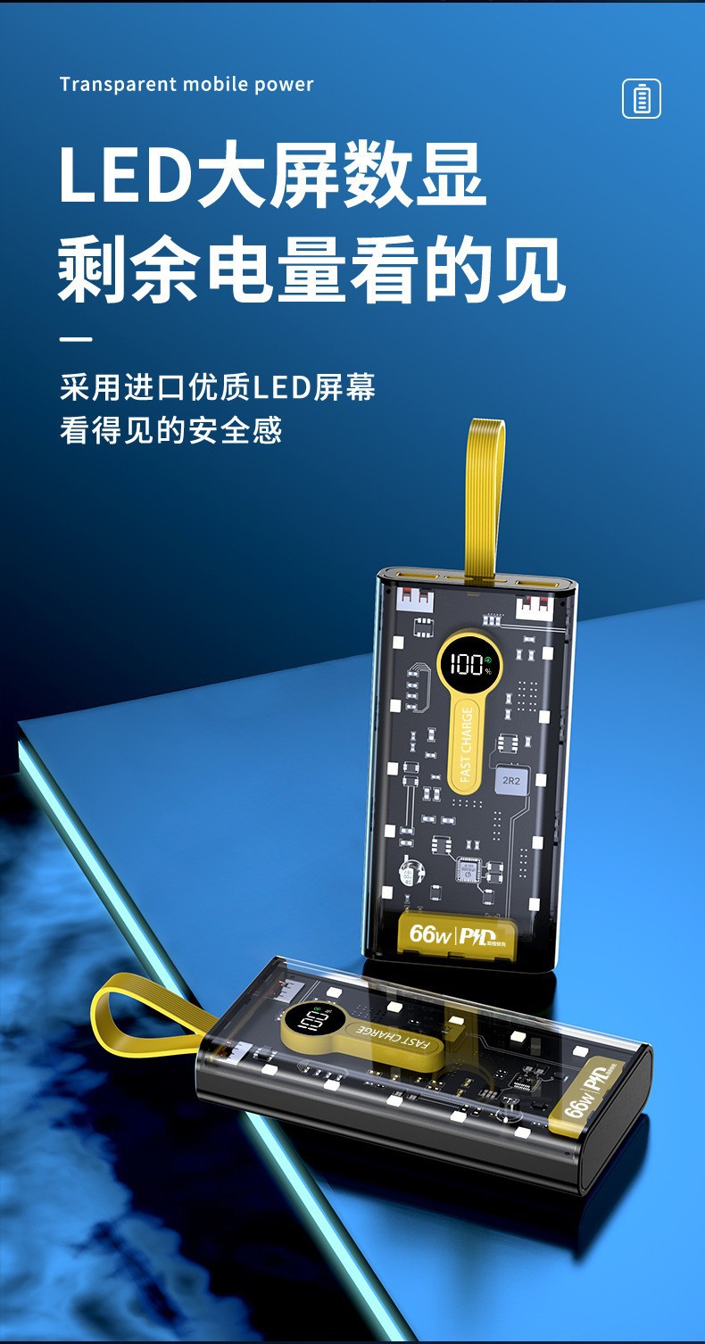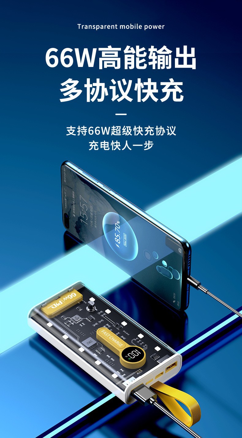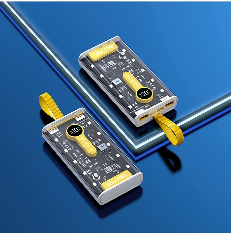 Explosiva de comercio electrónico transparente punk amarillo mech viento banco de energía 66w carga rápida bidireccional 20000 mAh banco de energía