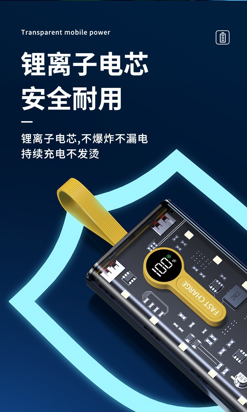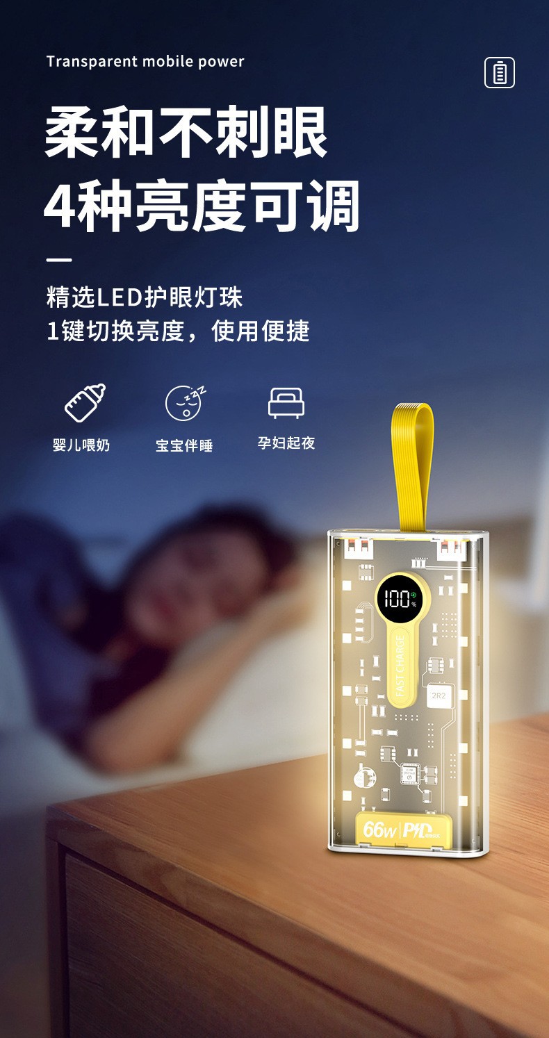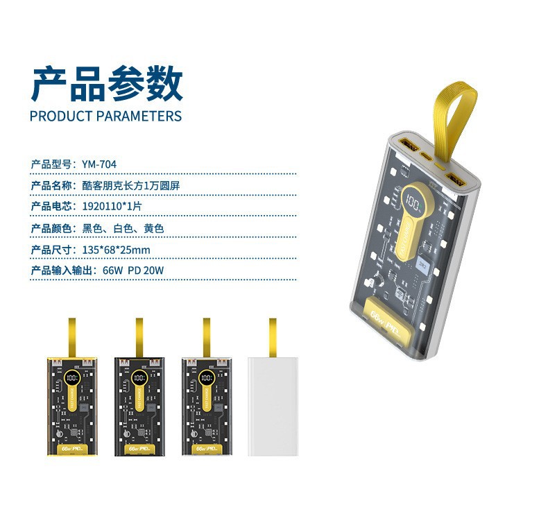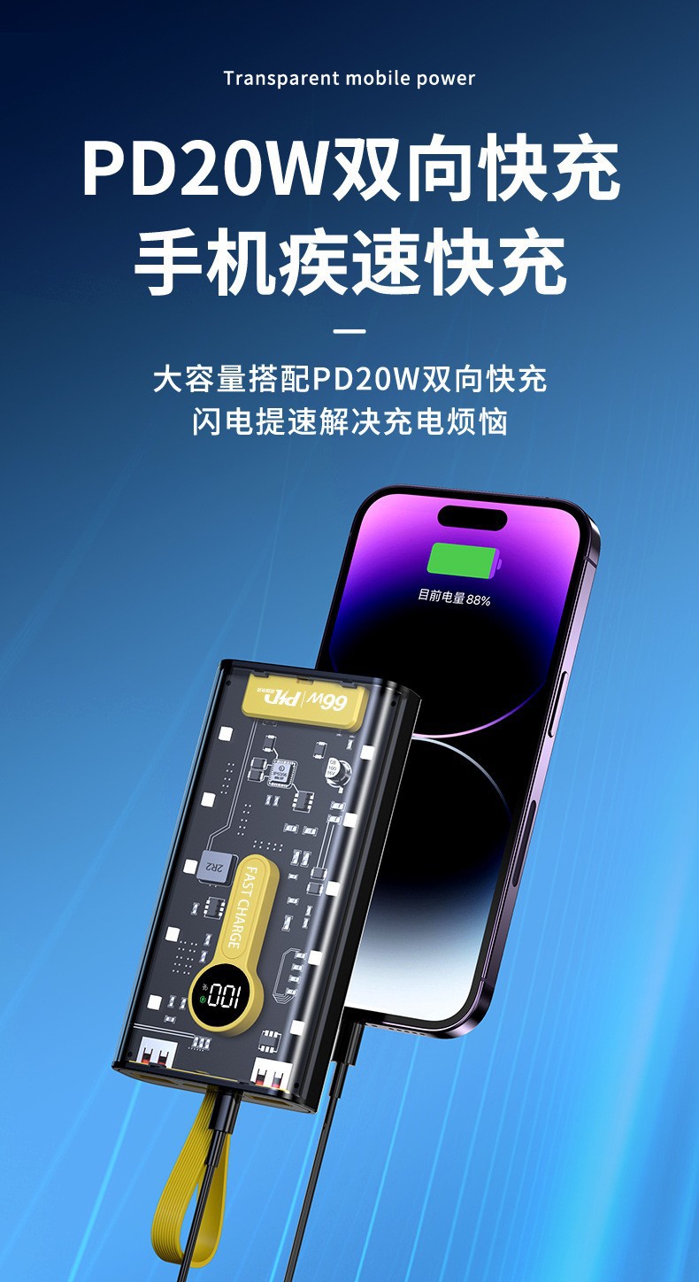 Explosiva de comercio electrónico transparente punk amarillo mech viento banco de energía 66w carga rápida bidireccional 20000 mAh banco de energía