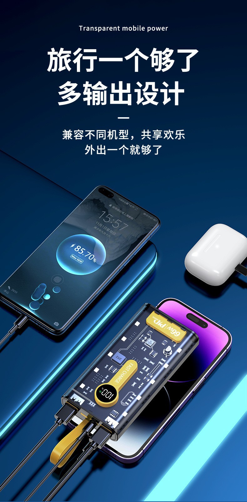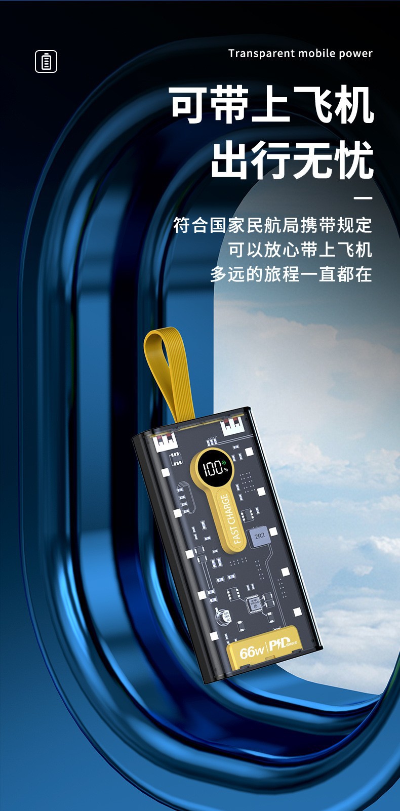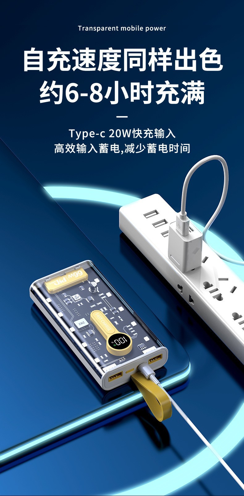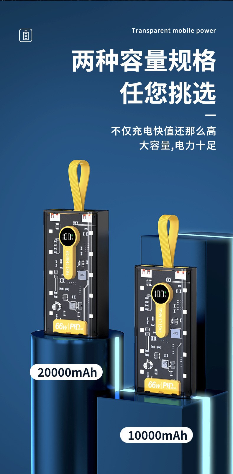 Explosiva de comercio electrónico transparente punk amarillo mech viento banco de energía 66w carga rápida bidireccional 20000 mAh banco de energía