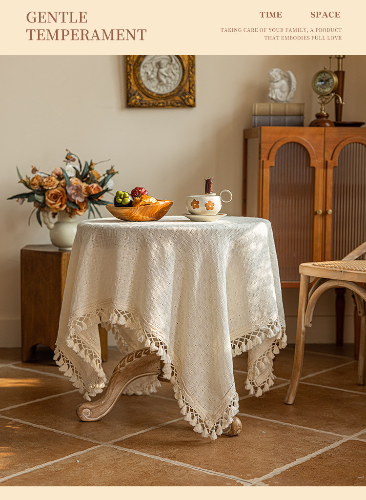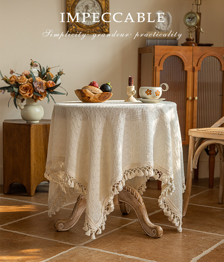| Color | Mantel con borlas beige al viento, Annie habla de encaje con algunas coberturas |
