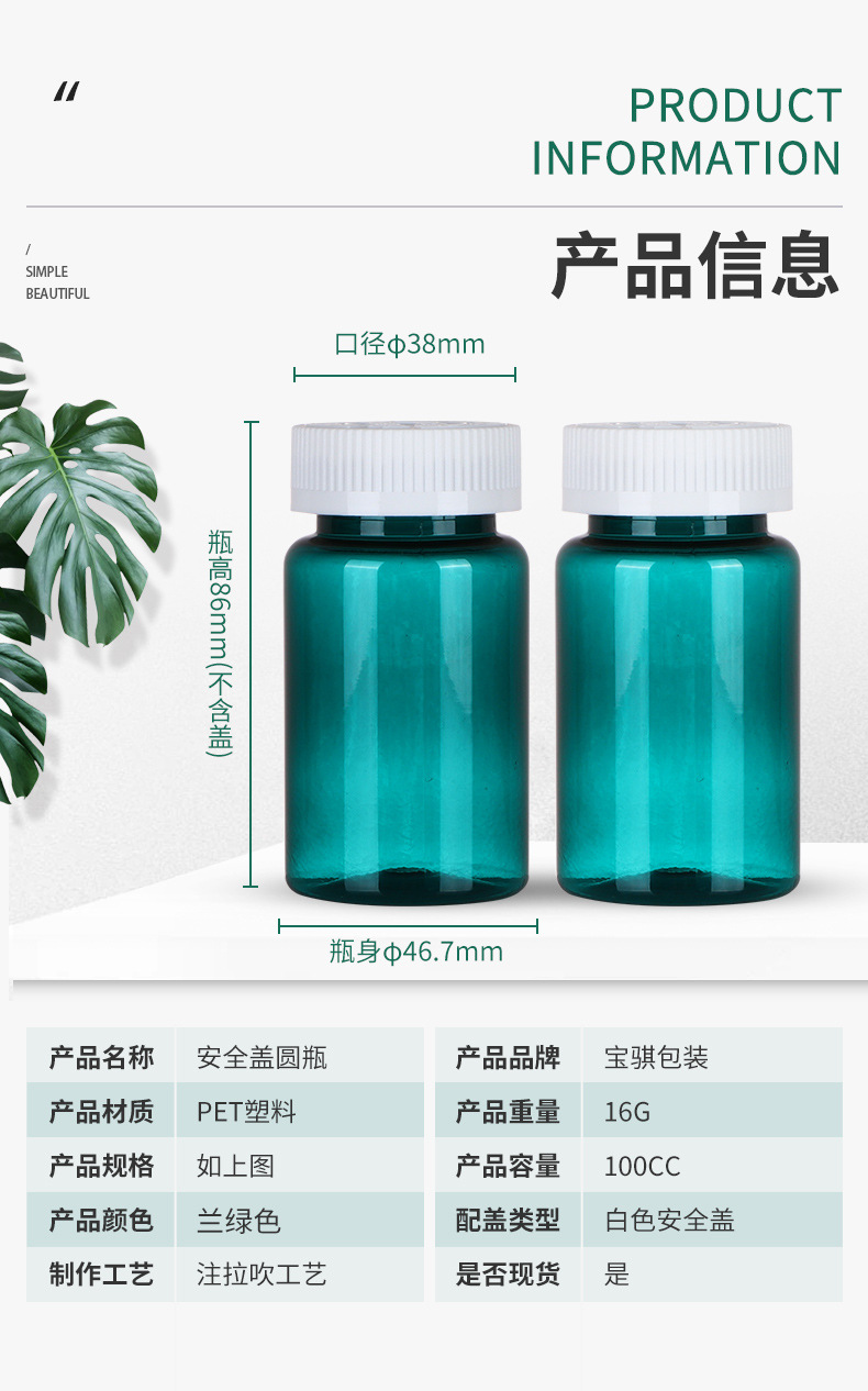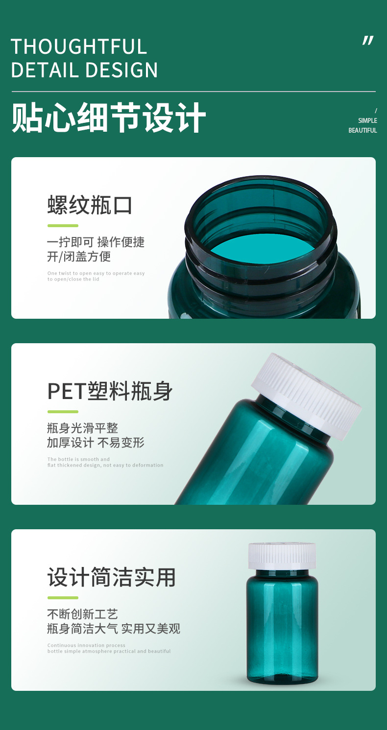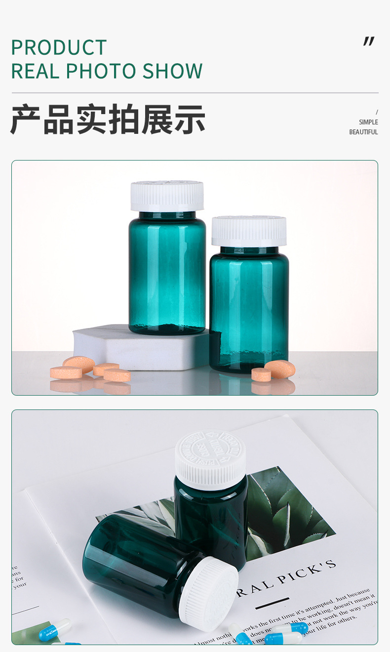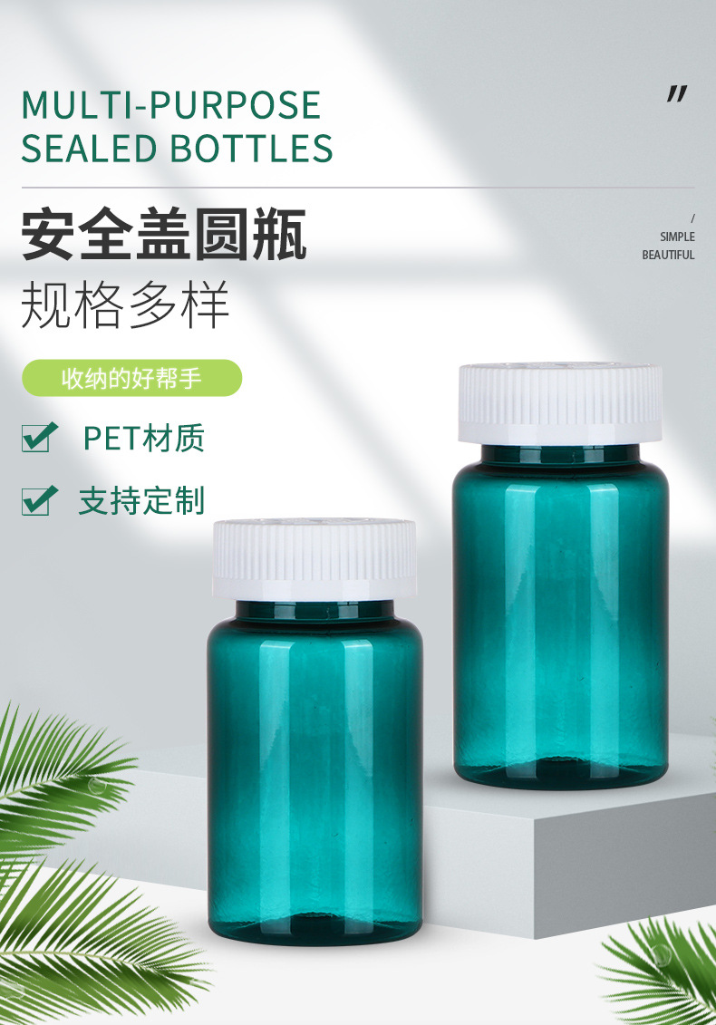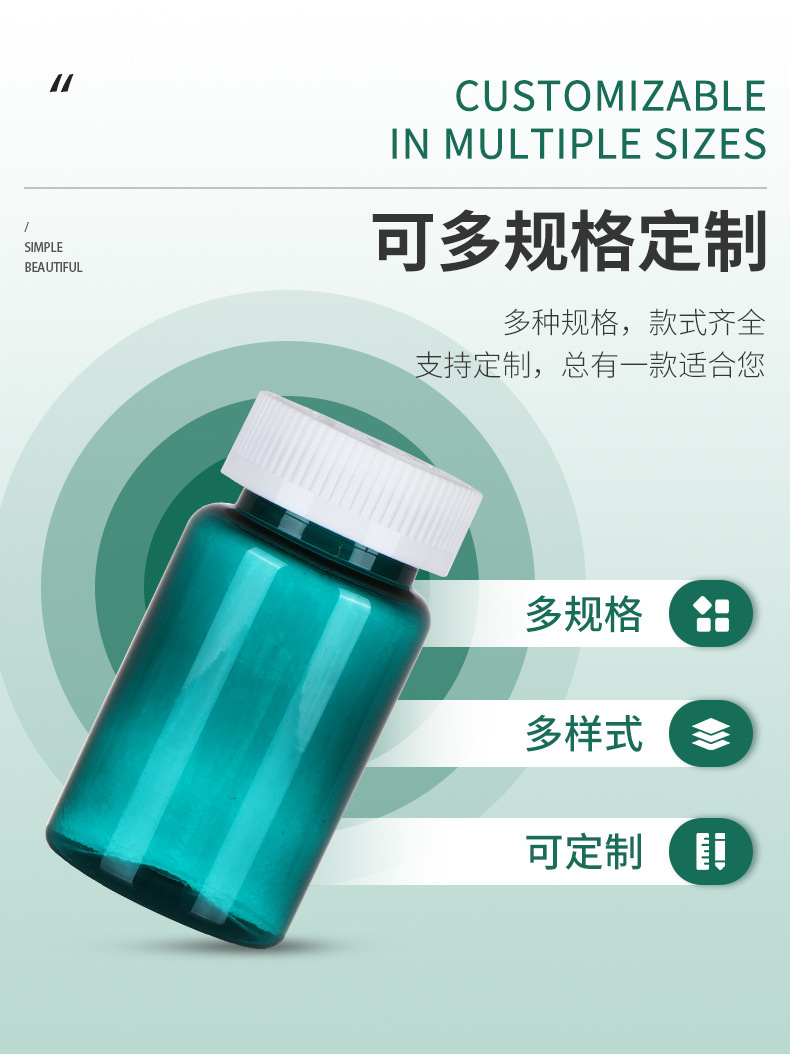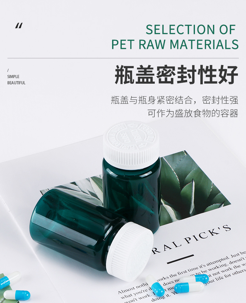 100ml botella verde oscuro botella de productos de salud de alta calidad botella de plástico botella redonda botella de polvo de cordyceps