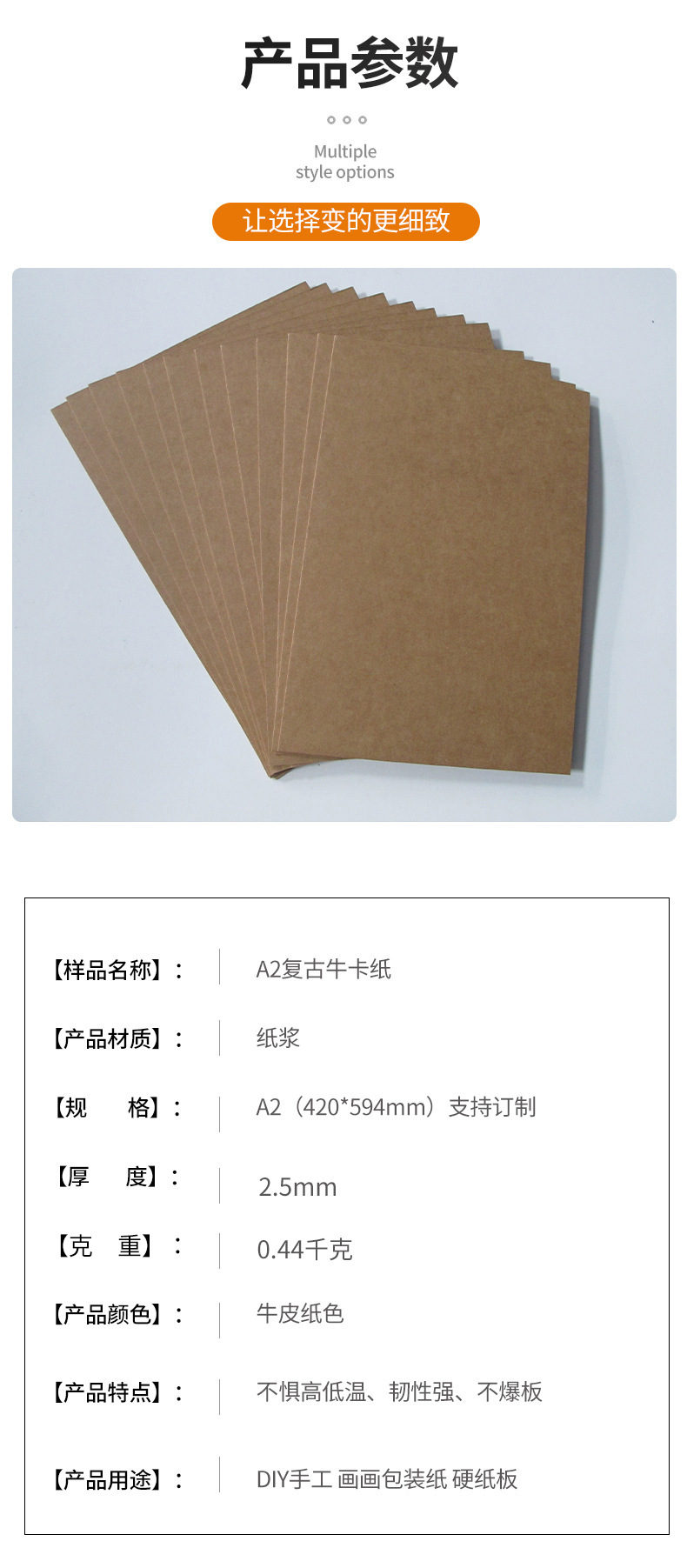 Papel kraft vintage de 2.5 mm, papel para álbumes de fotos, papel de embalaje, pulpa de madera natural, papel kraft A2, tarjeta rígida