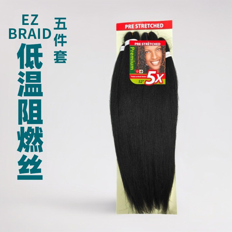 5X pre-stretched EZ braiding hair negro pre-estiramiento baja temperatura retardante de llama peluca