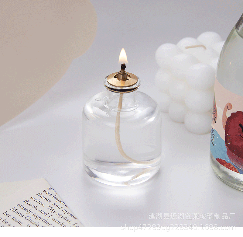 Lámpara de aceite al aire libre pequeña escena de lámpara de aceite atmósfera de alta lámpara de alquitrán de vidrio de silicio con cubierta de viento se puede reabastecer con lámpara de Buda