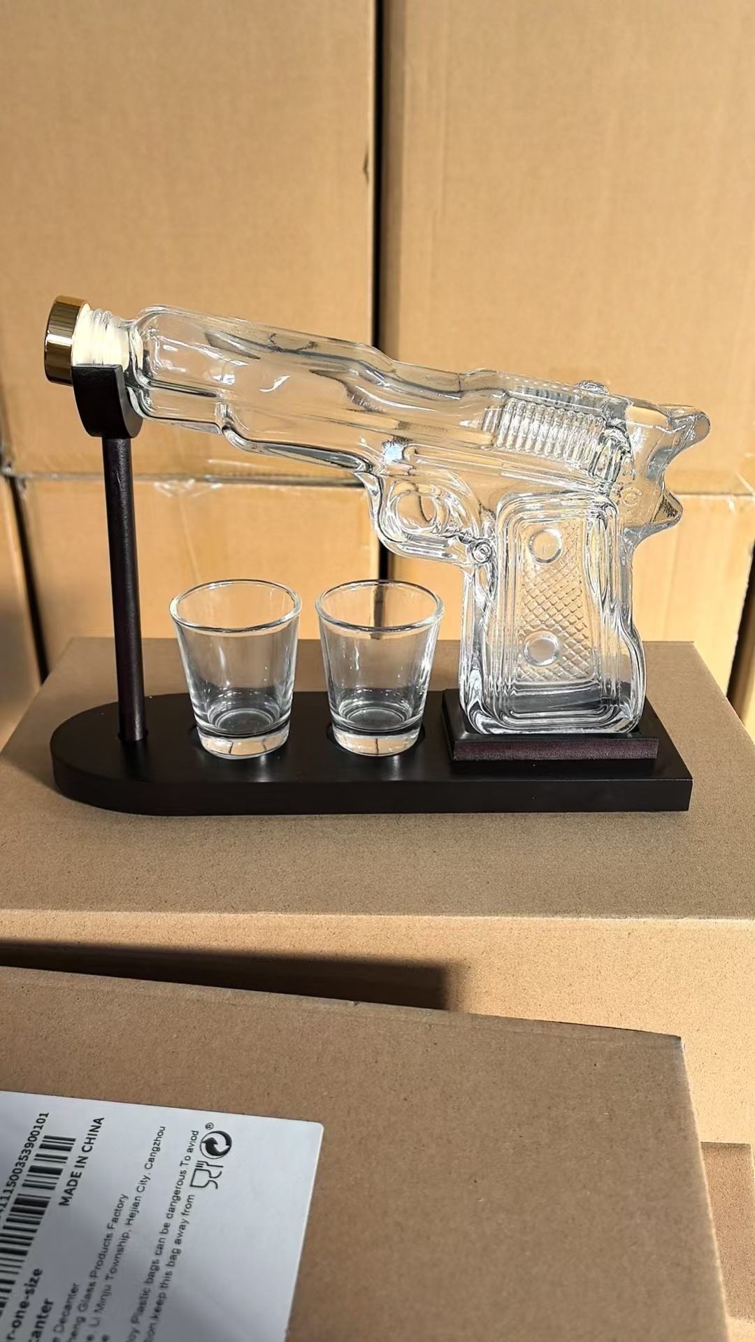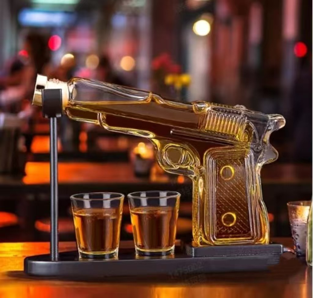 Pistola de vidrio decantador Botella de vino artesanal de vidrio Whisky Vodka Dieter Sand Eagle Pistola decantador