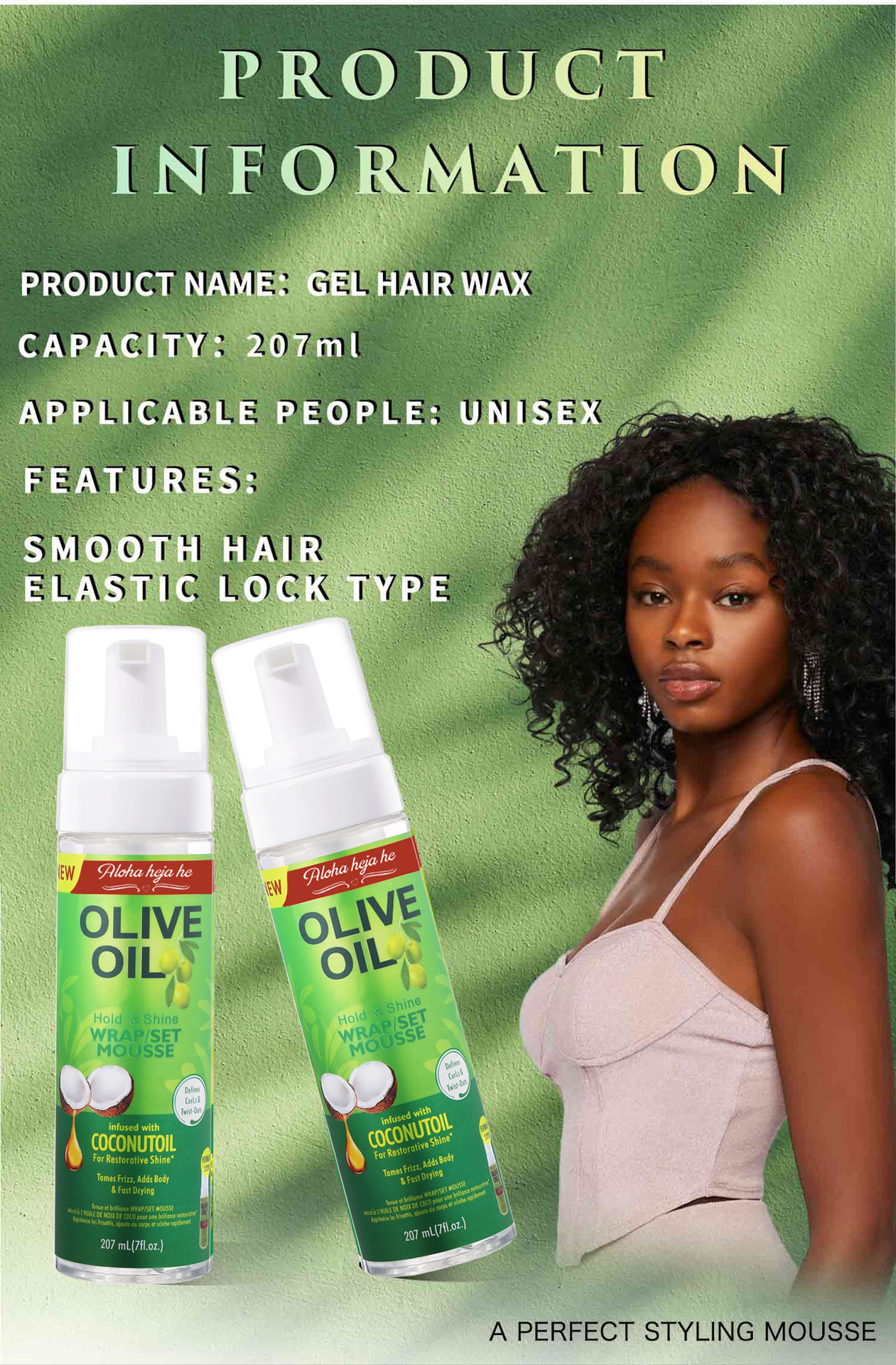 Coco transfronterizo modelado mousse espuma de oliva cera para el cabello rizado modelado cabello esponjoso espuma de cera mousse al por mayor