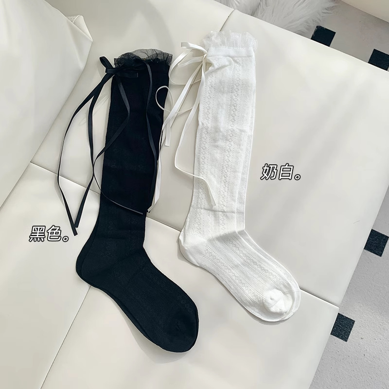 Calcetines de pantorrilla hueca estilo ballet niños blanco lolita japonés con falda verano blanco fino arco dulce