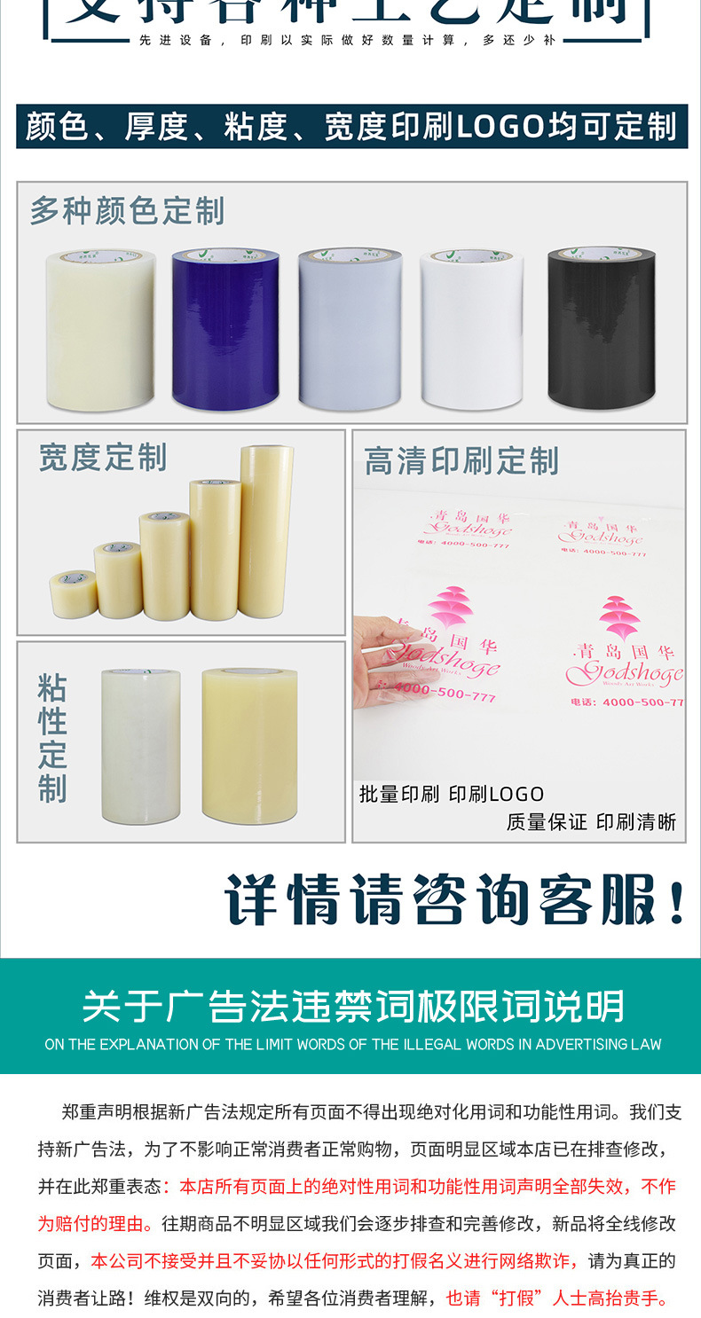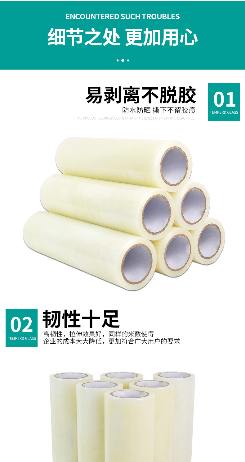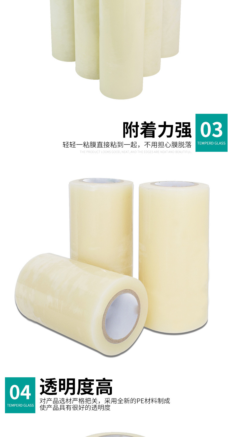 Película protectora transparente PE película electrostática alta viscosidad película plástica autoadhesiva acrílica no residual película protectora anti-rañazos