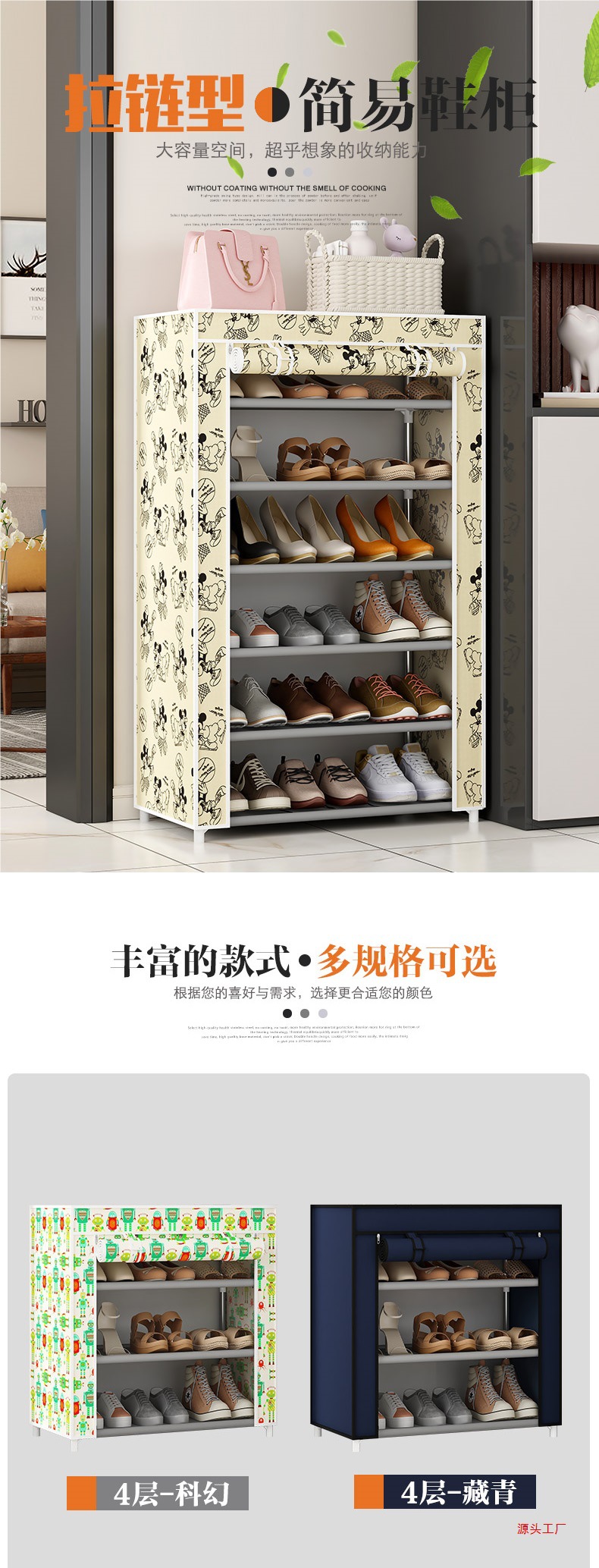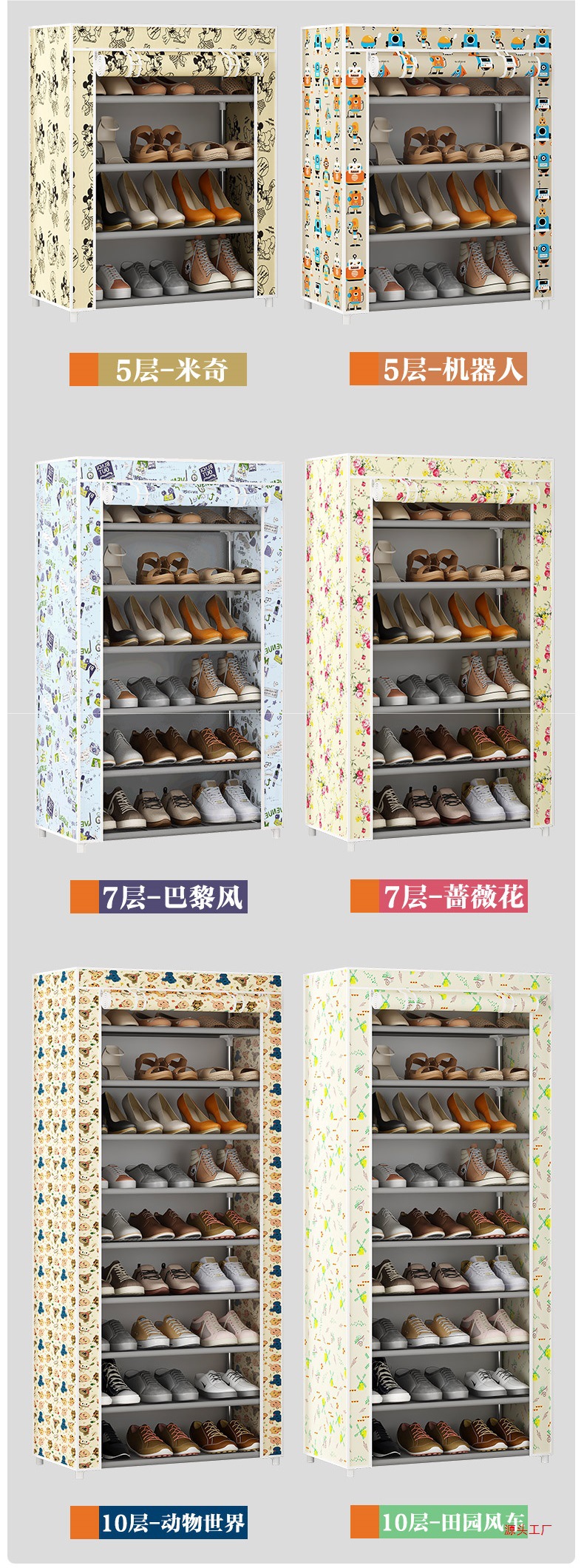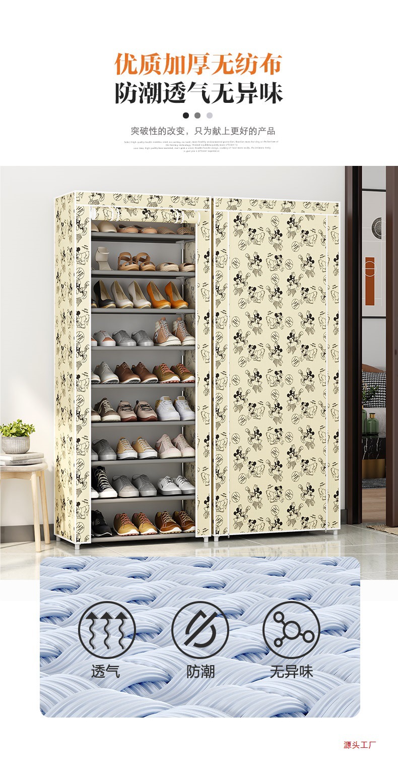 Estante de zapatos multicapa puerta doméstica cubierta a prueba de polvo alquiler simple gabinete de zapatos dormitorio almacenar artefacto mágico gabinete de tela