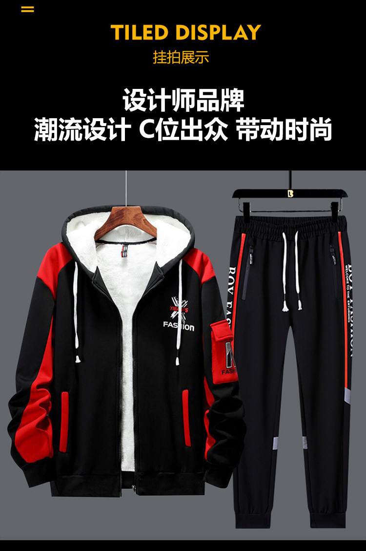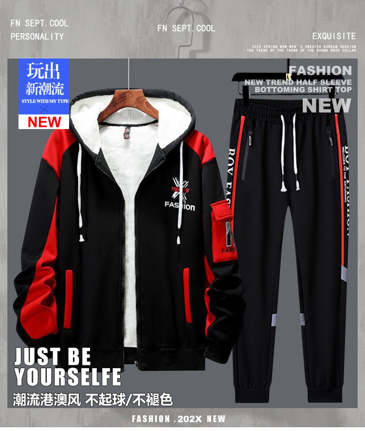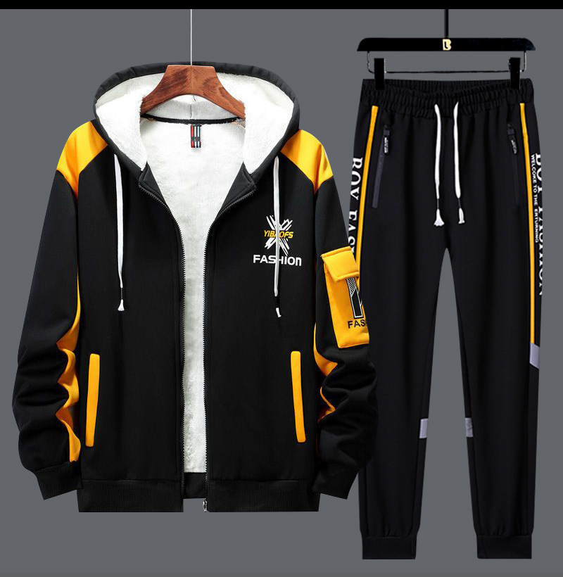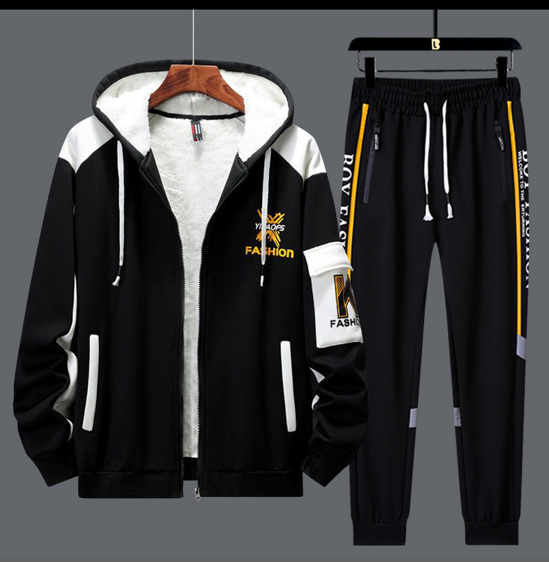 Invierno juvenil con camisa encapuchada gruesa, camiseta, pantalones casuales, ropa de moda al aire libre, hombre