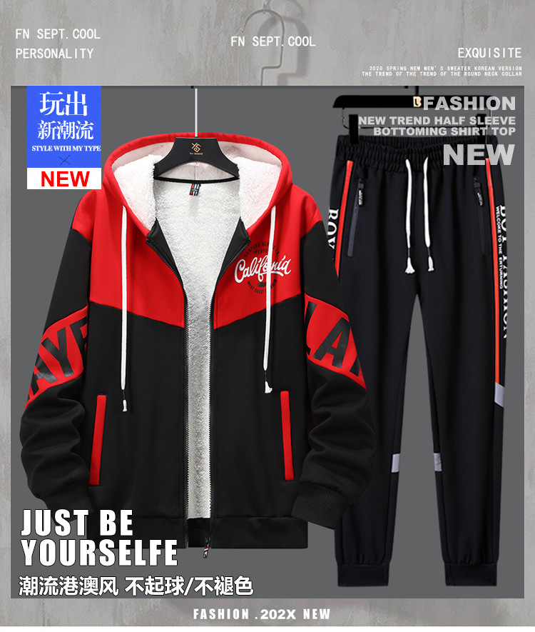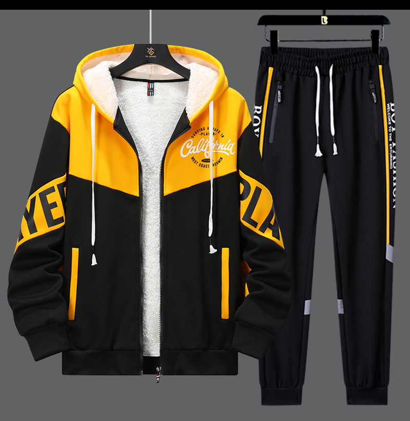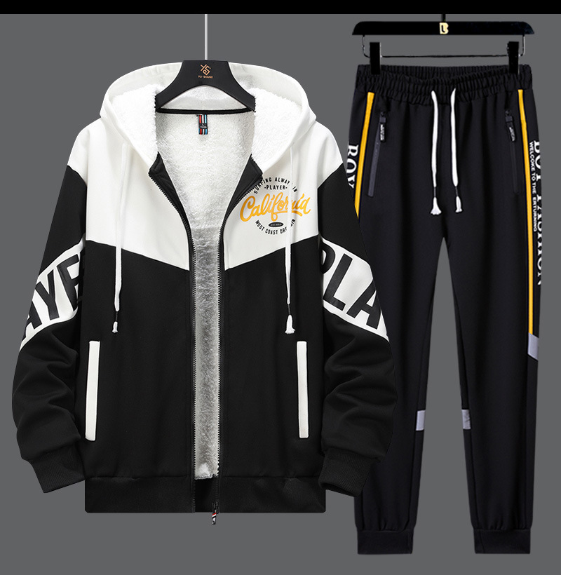 Adolescentes con camisa con capuzas gruesas tendencia de ropa de hombre de alto nivel con un conjunto de chaqueta deportiva de invierno