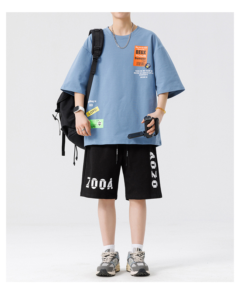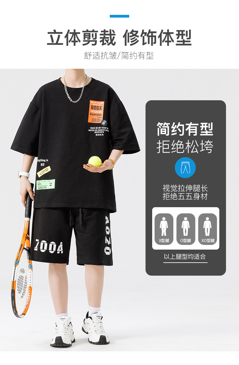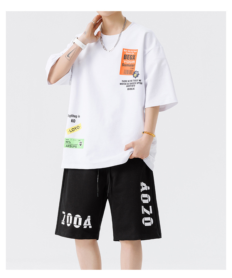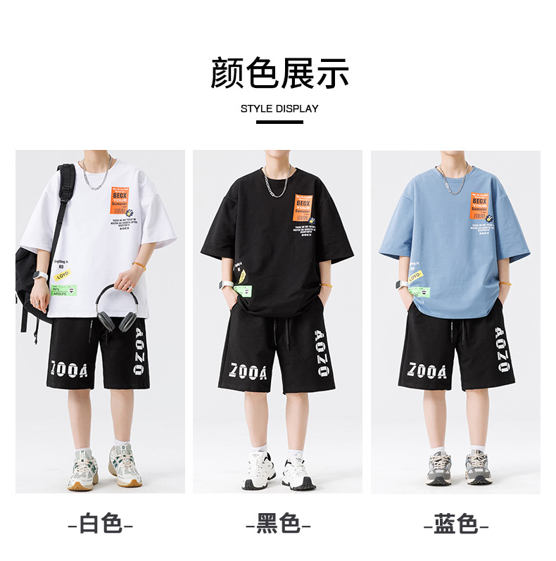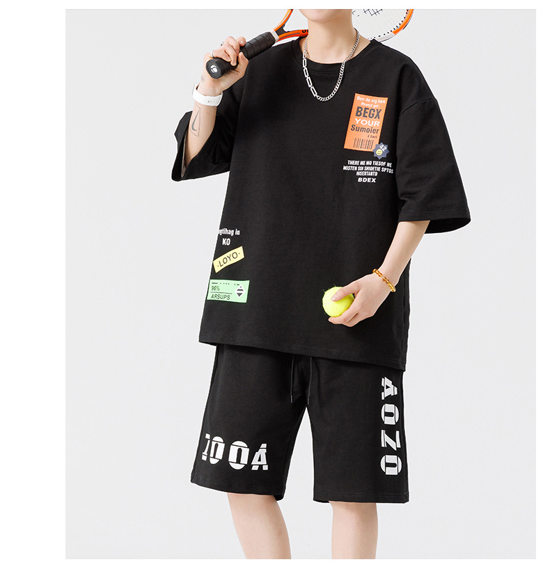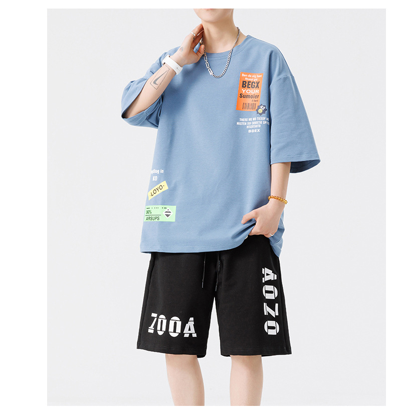 Conjunto de ropa para hombre, conjunto deportivo de verano para jóvenes, informal, de manga corta, pantalones cortos deportivos, conjunto versátil de dos piezas para chicos