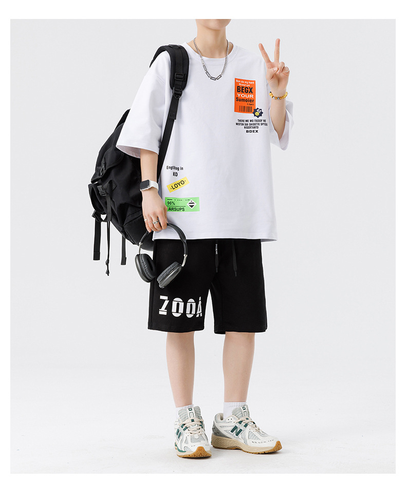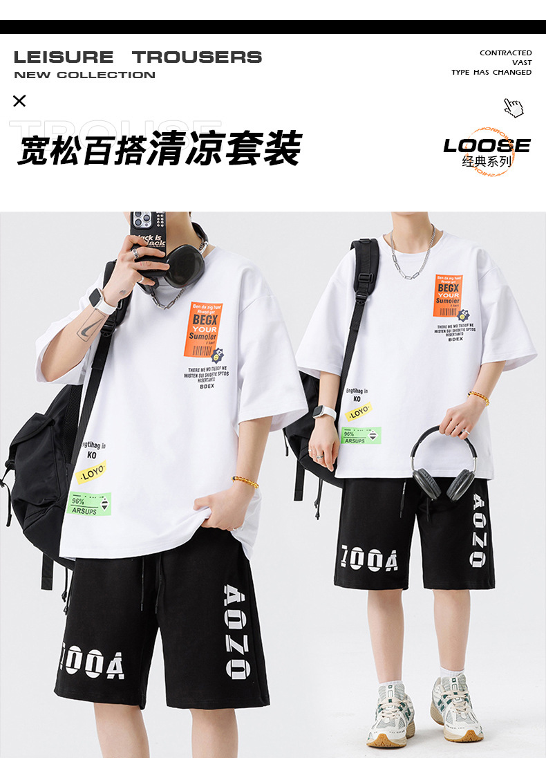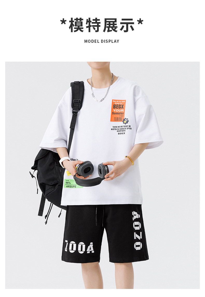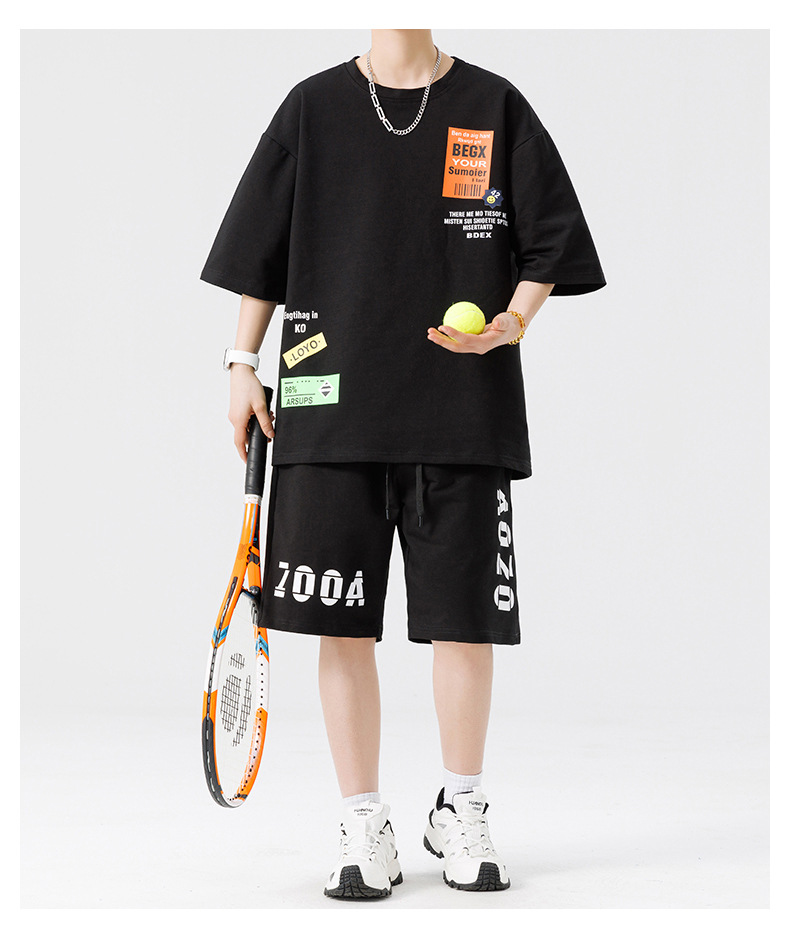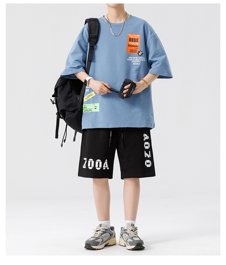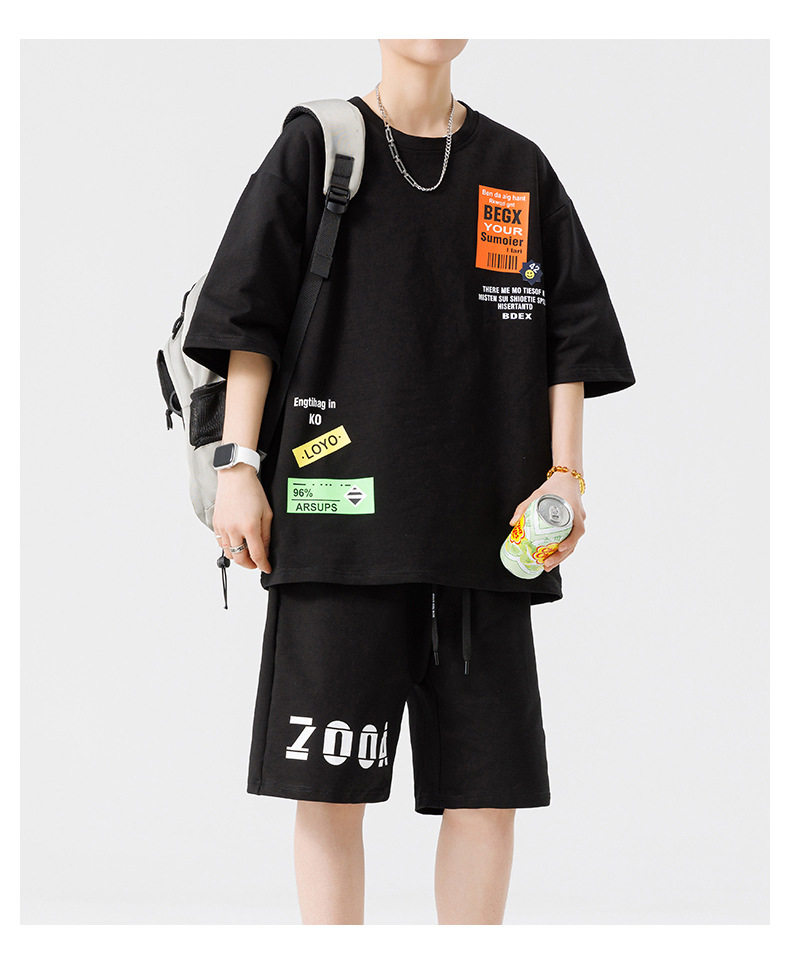 Conjunto de ropa para hombre, conjunto deportivo de verano para jóvenes, informal, de manga corta, pantalones cortos deportivos, conjunto versátil de dos piezas para chicos