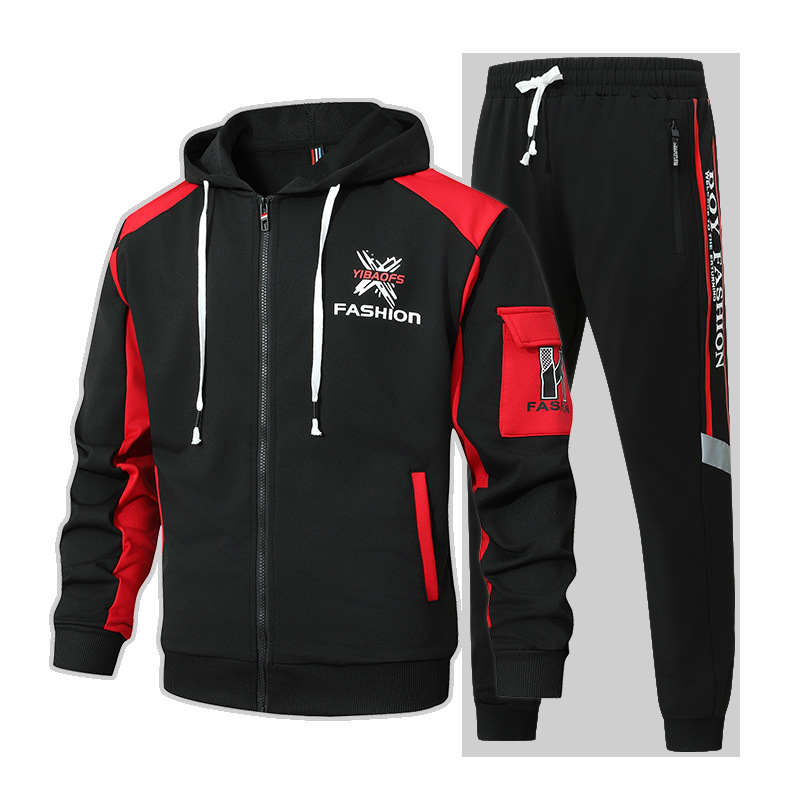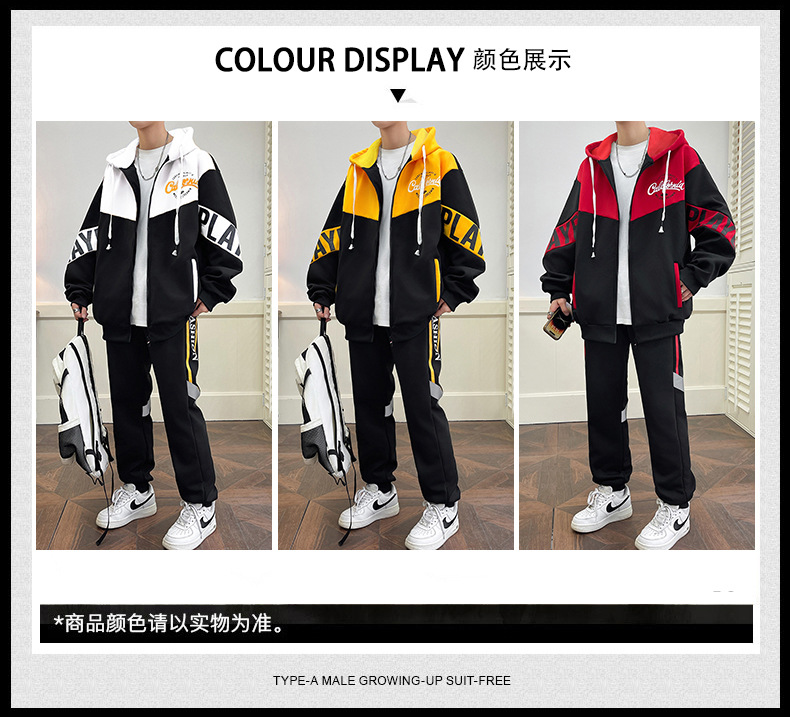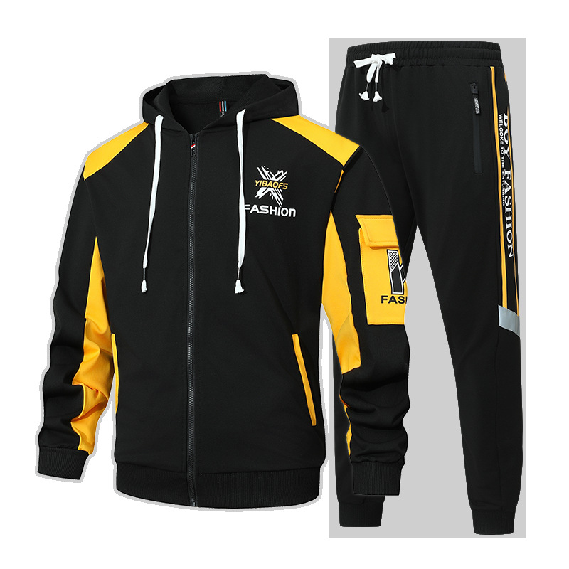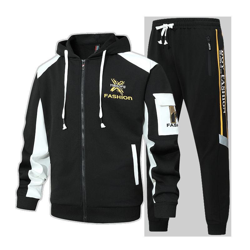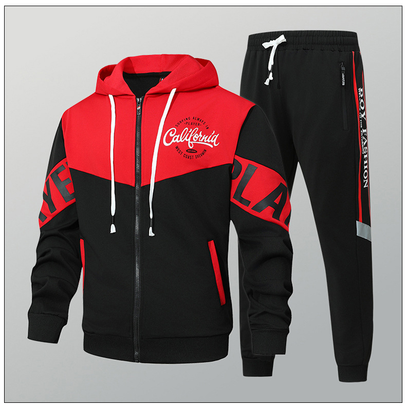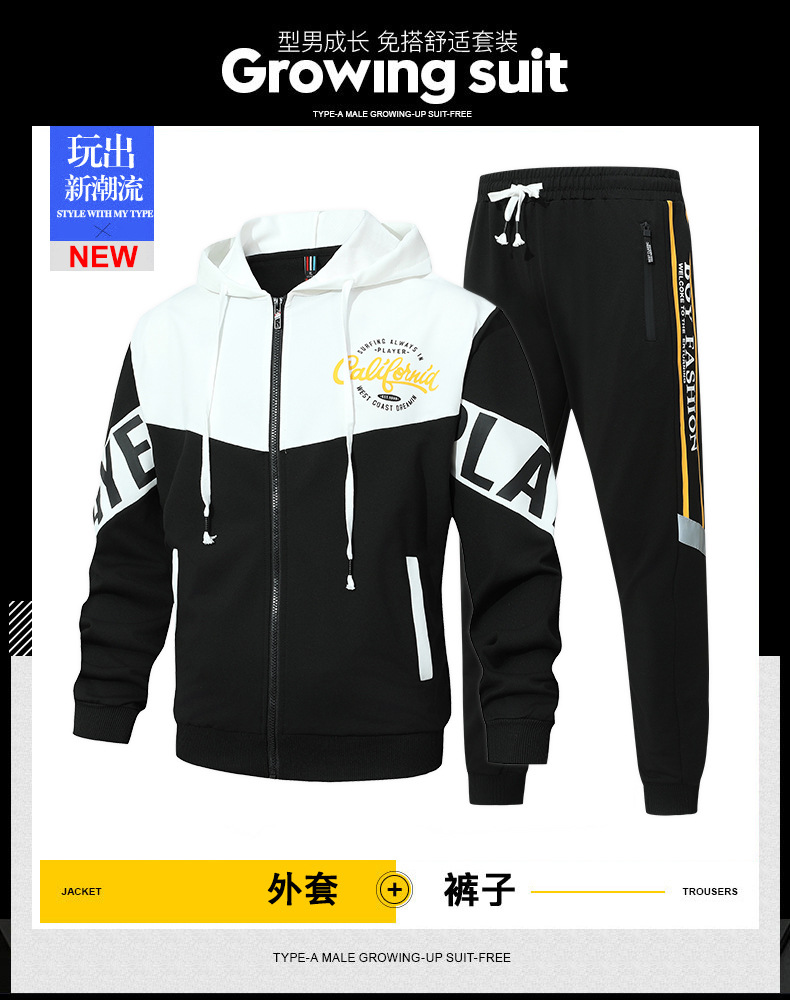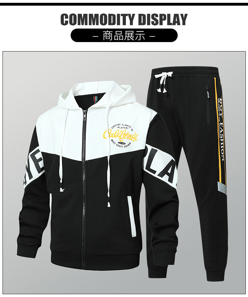 Primavera y otoño, marca de moda americana, chaqueta con capucha, pantalones, traje deportivo, traje casual de dos piezas simple para hombres y adolescentes