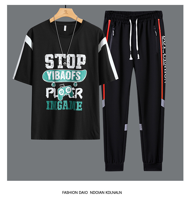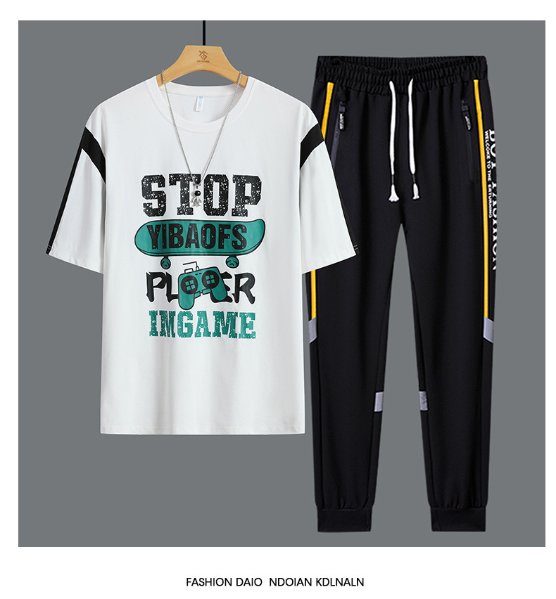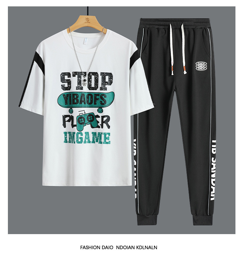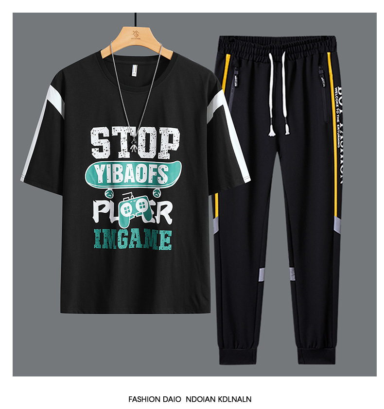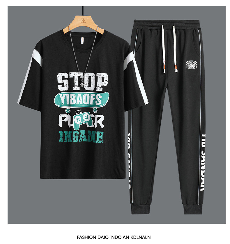 Conjunto de dos piezas de camiseta de cuello redondo holgada y deportiva informal juvenil de moda para el verano 2025 con pantalones y traje de manga corta para hombre