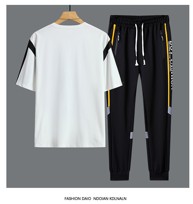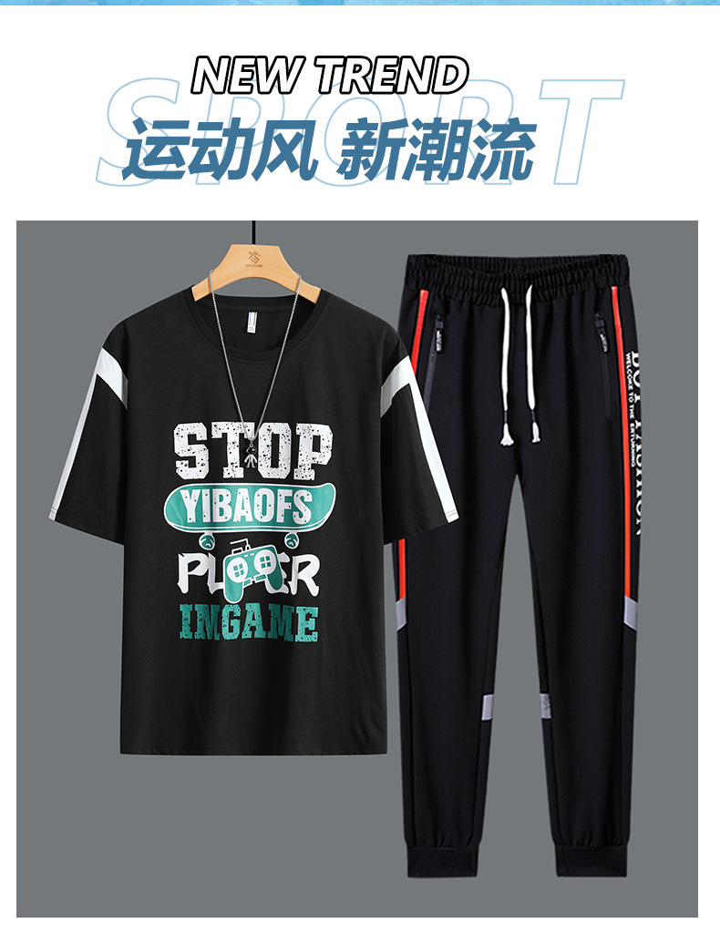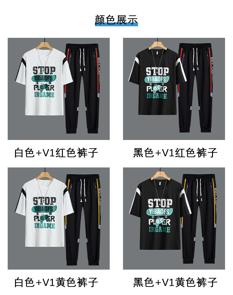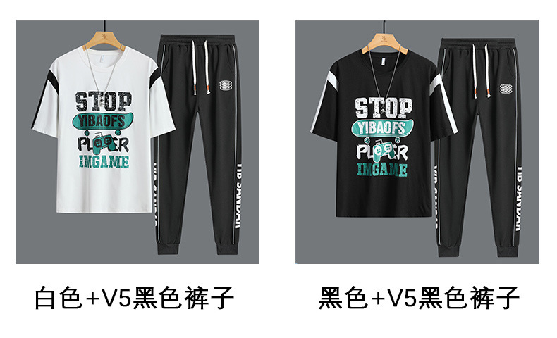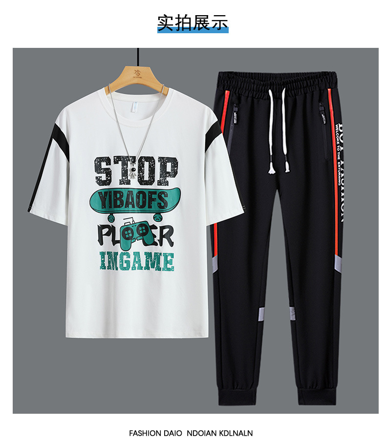 Conjunto de dos piezas de camiseta de cuello redondo holgada y deportiva informal juvenil de moda para el verano 2025 con pantalones y traje de manga corta para hombre