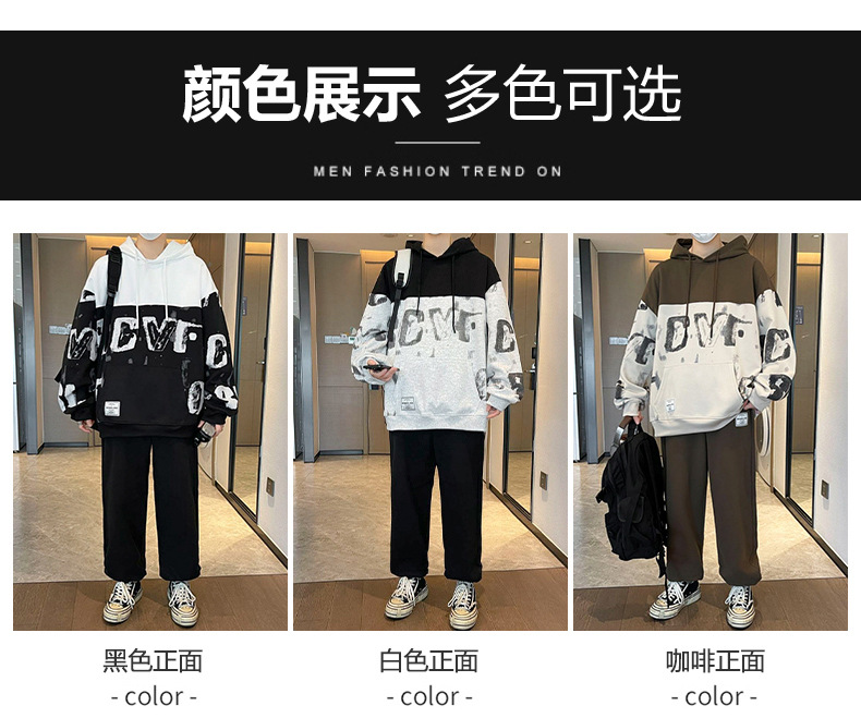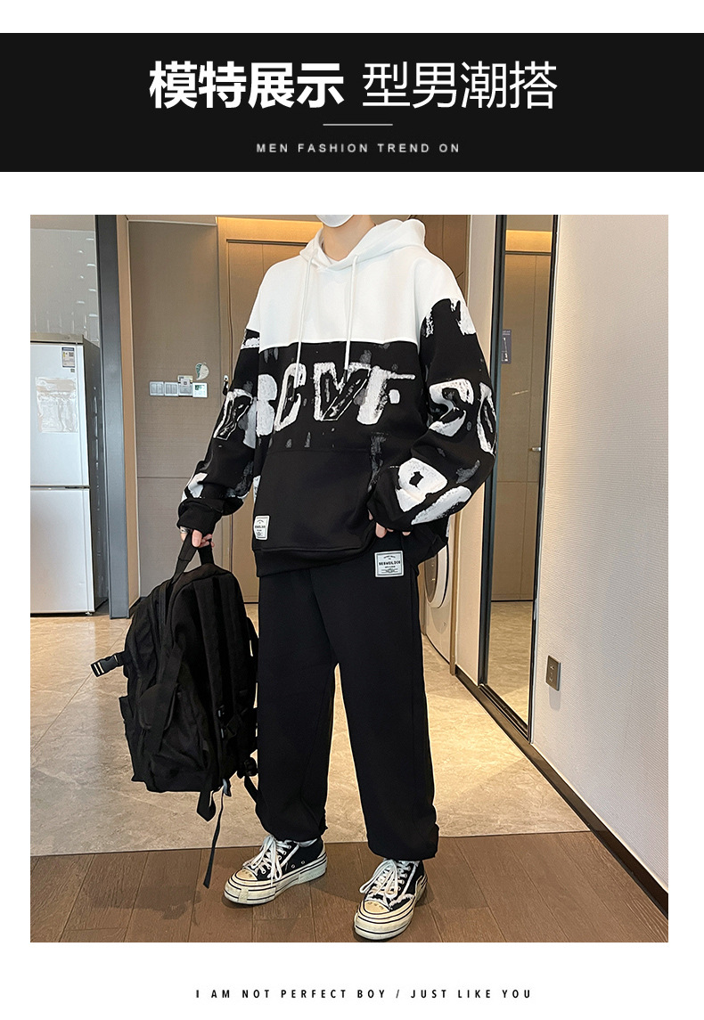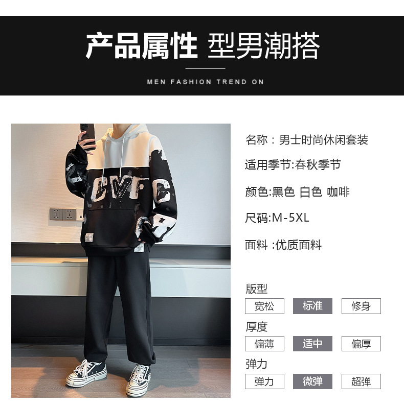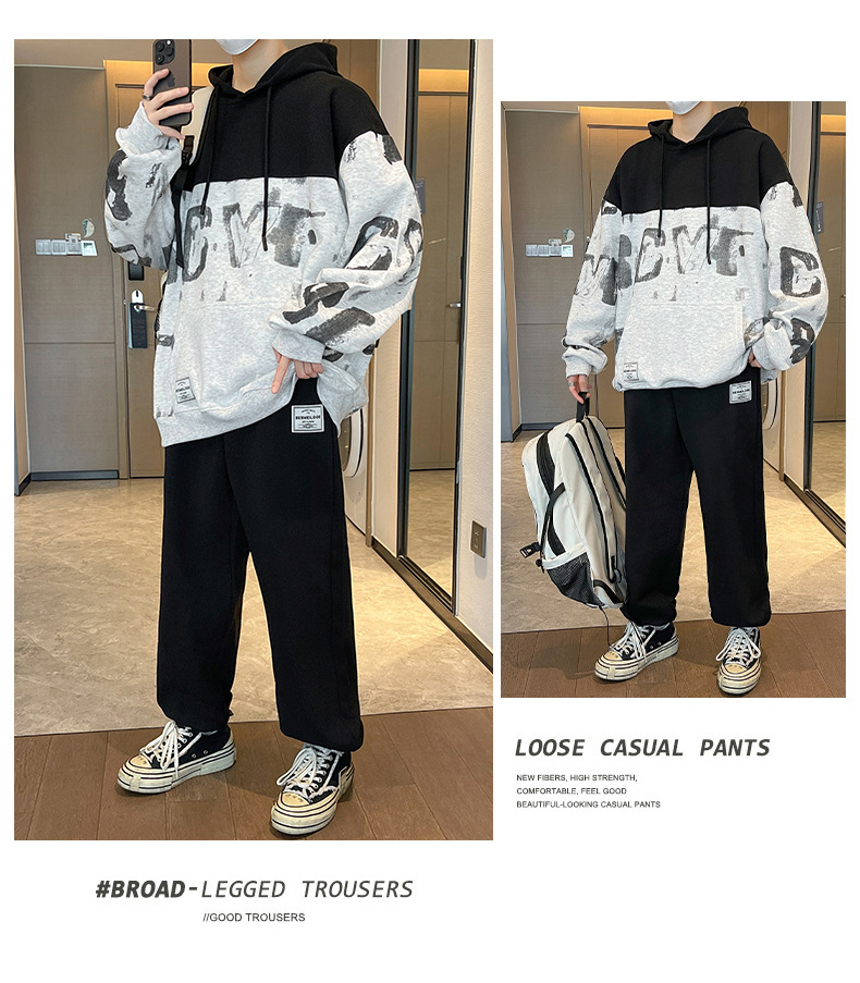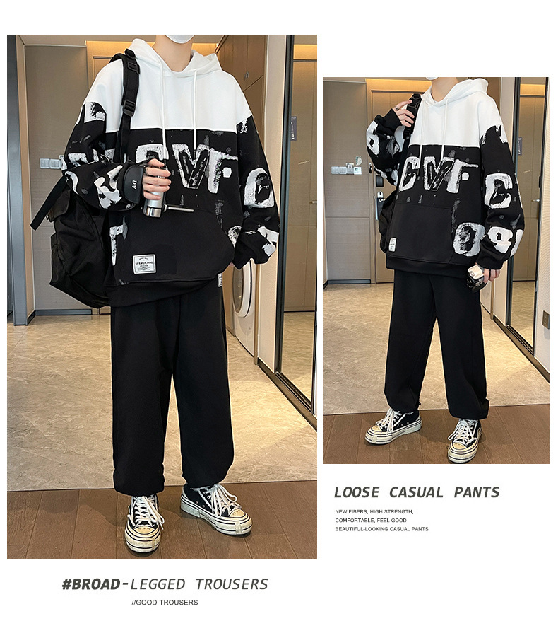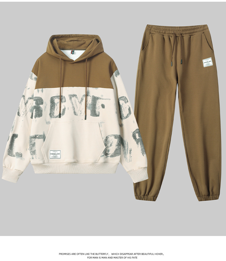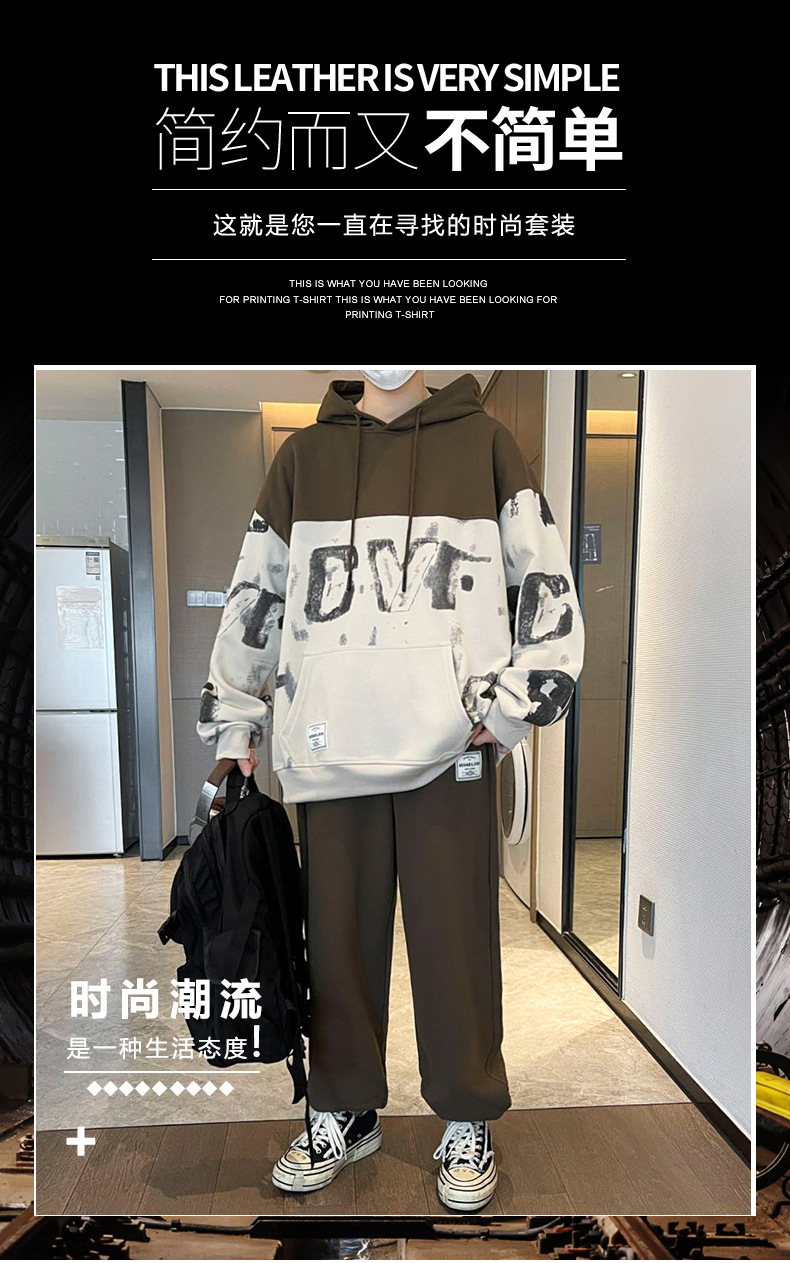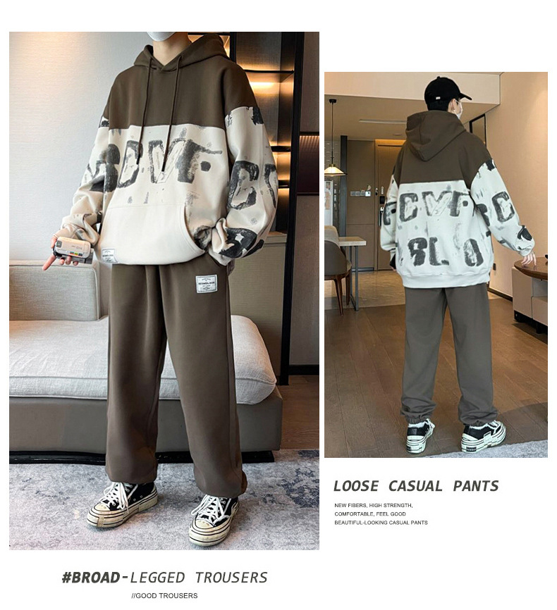 Los fabricantes de origen pueden personalizar el logotipo de los hombres jóvenes primavera y otoño moda suelta suéter con capucha suéter pantalones traje hombres