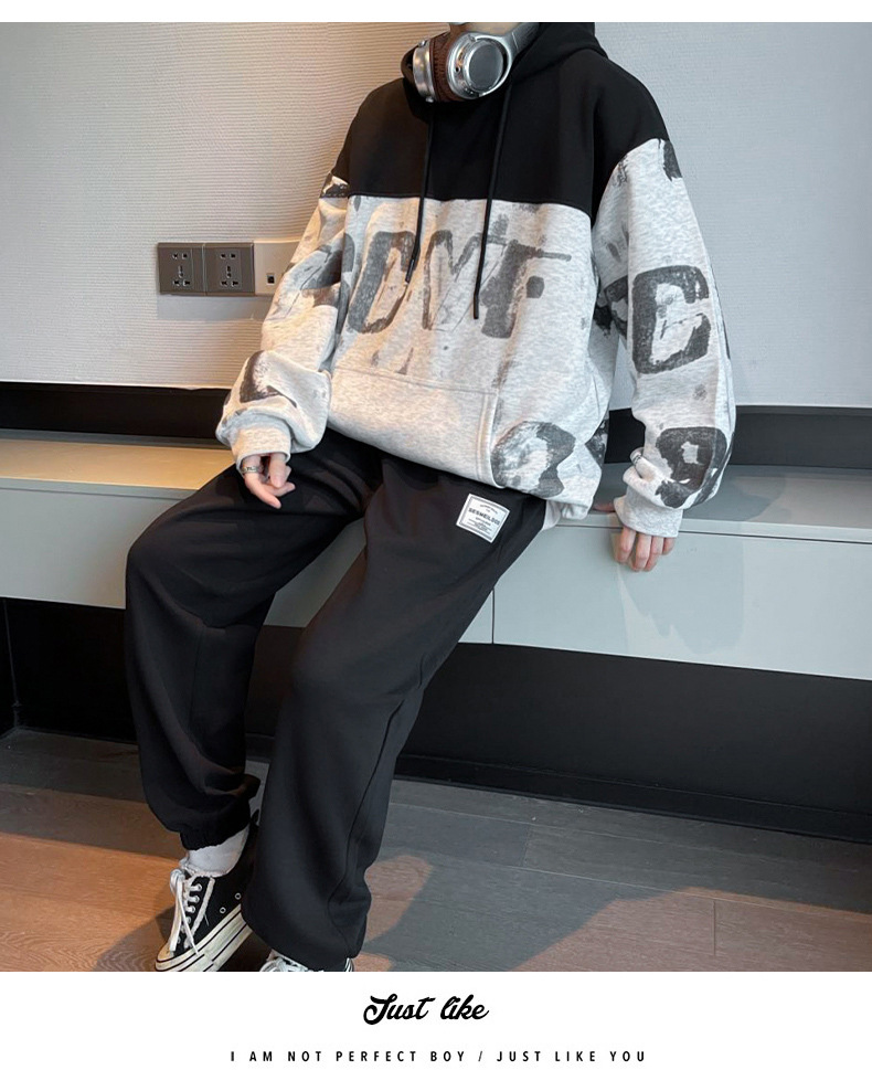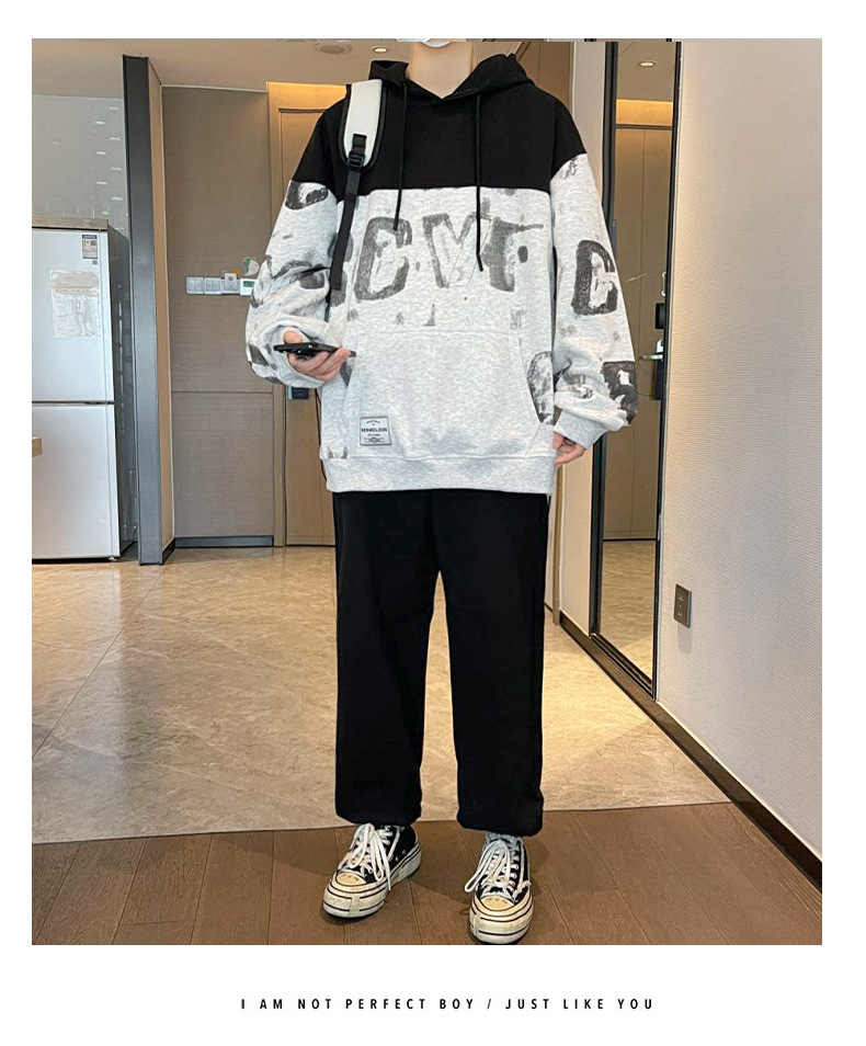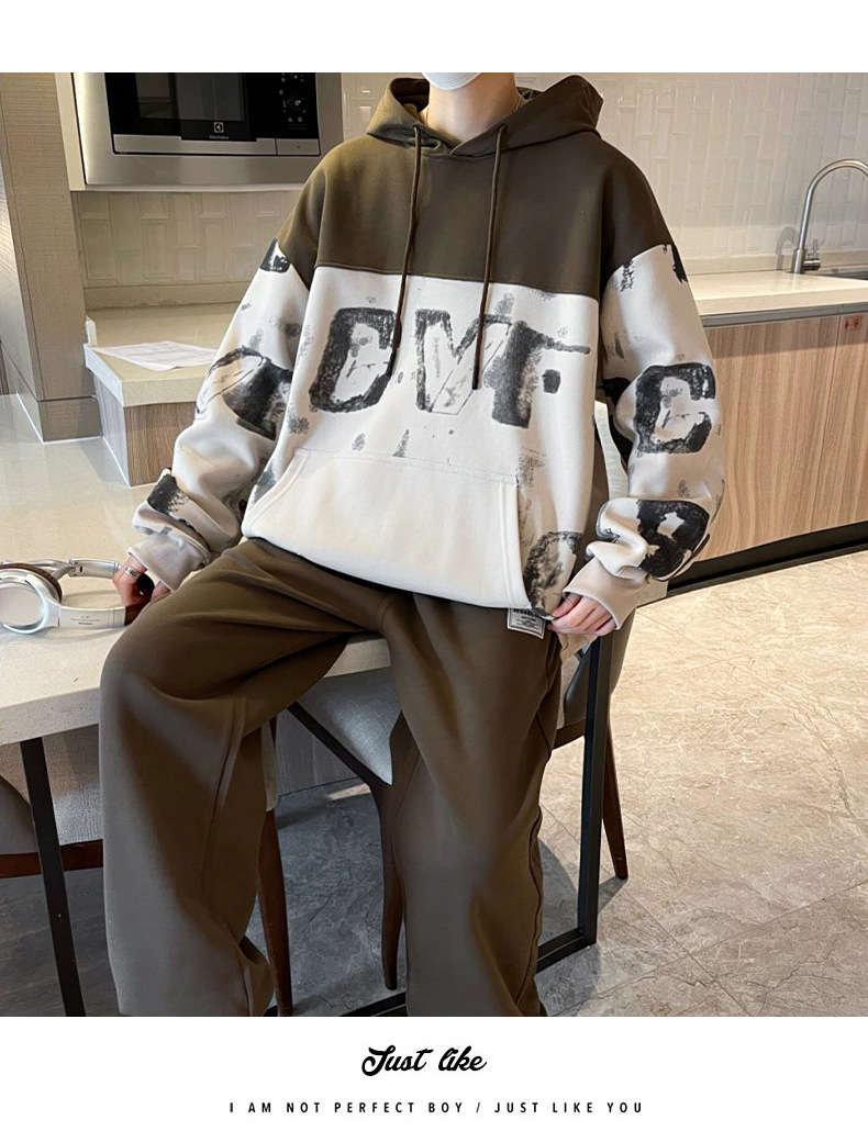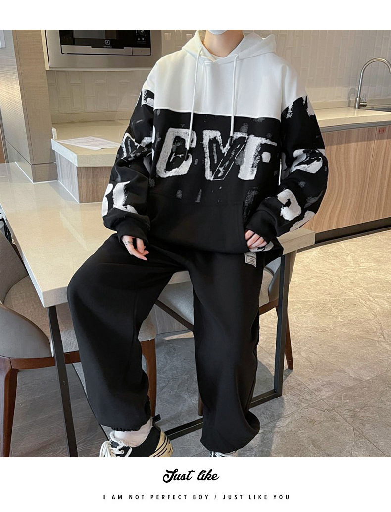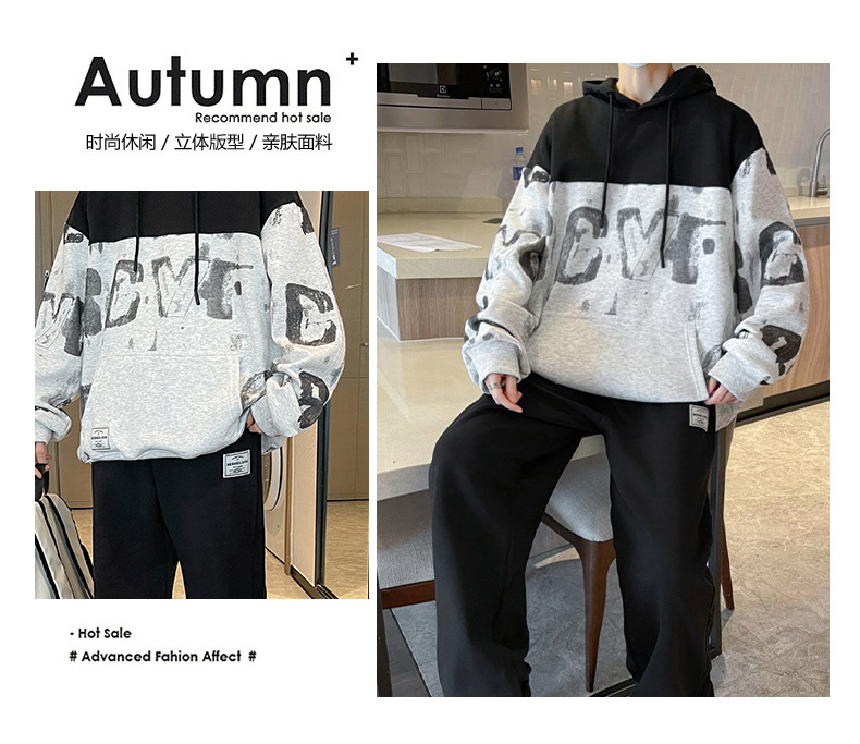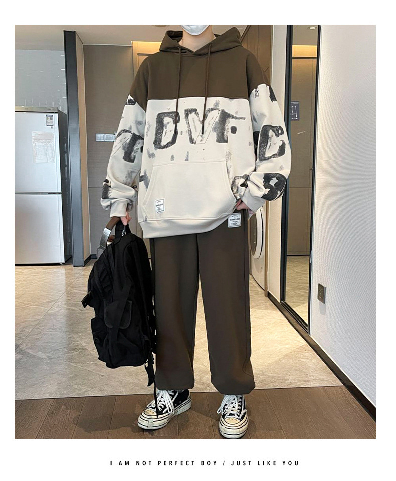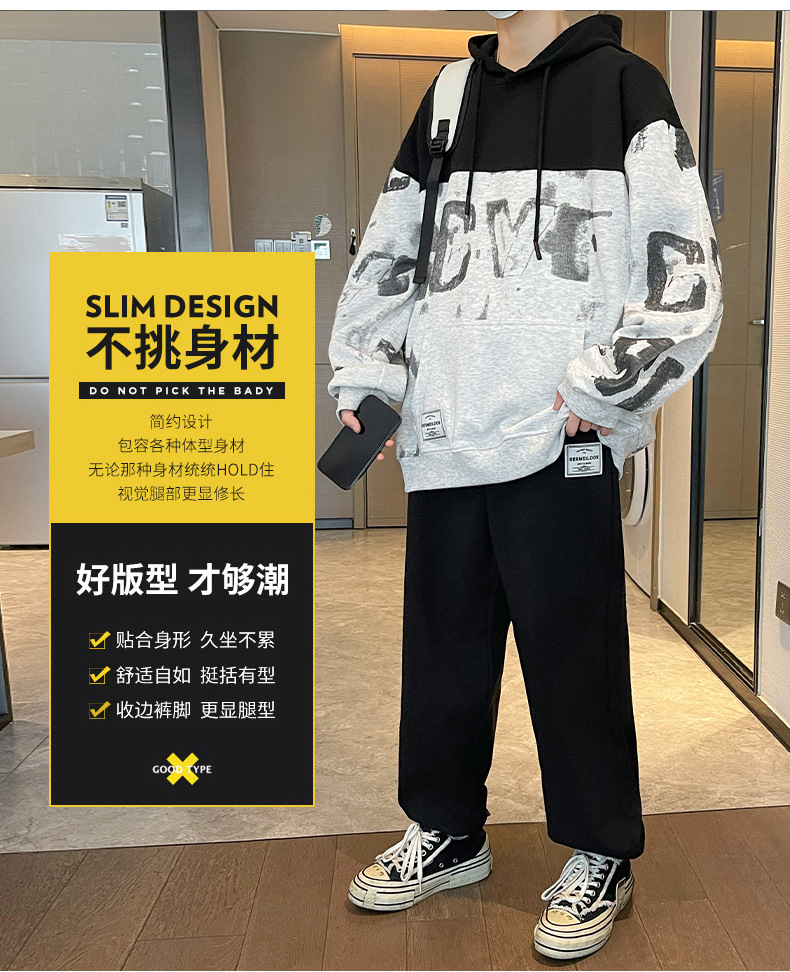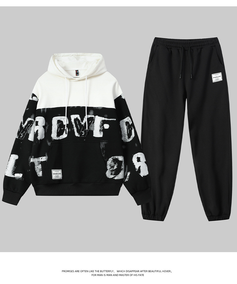 Los fabricantes de origen pueden personalizar el logotipo de los hombres jóvenes primavera y otoño moda suelta suéter con capucha suéter pantalones traje hombres