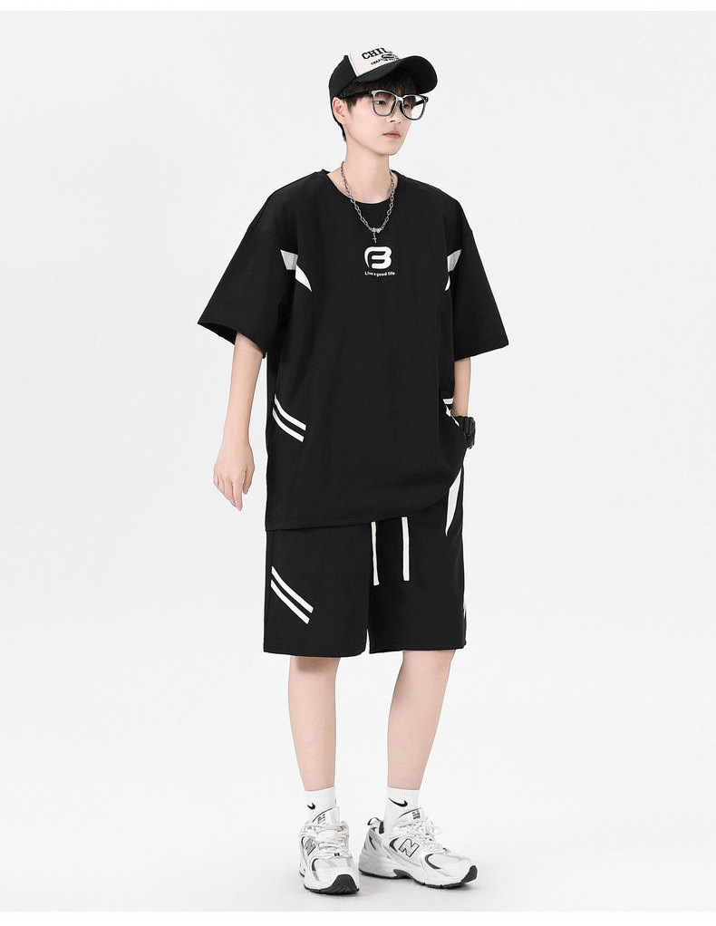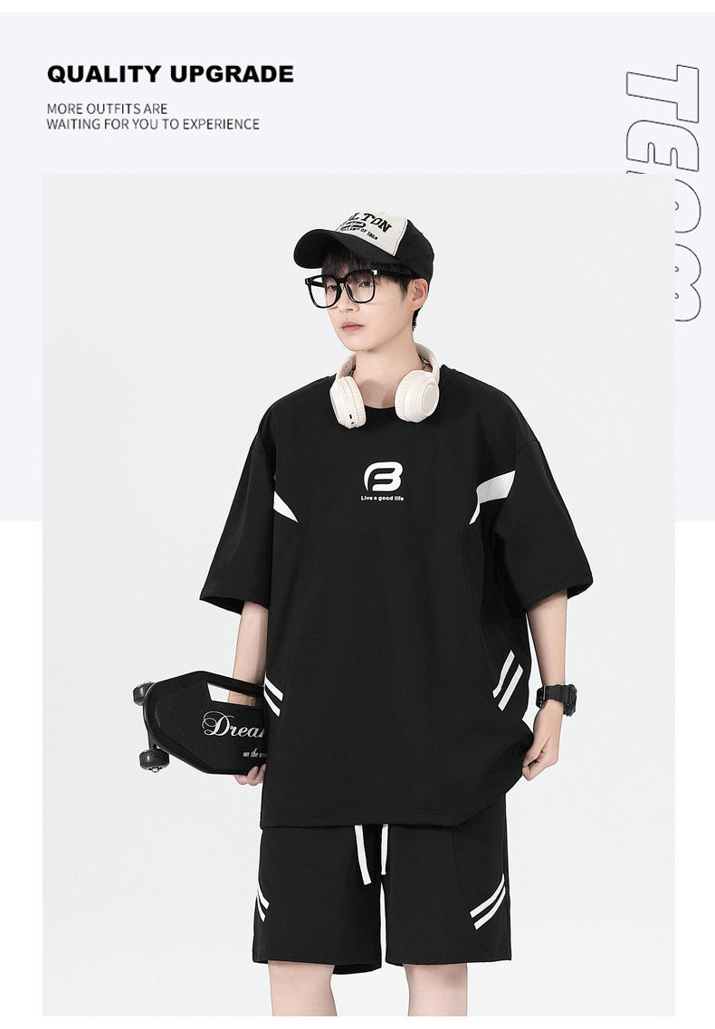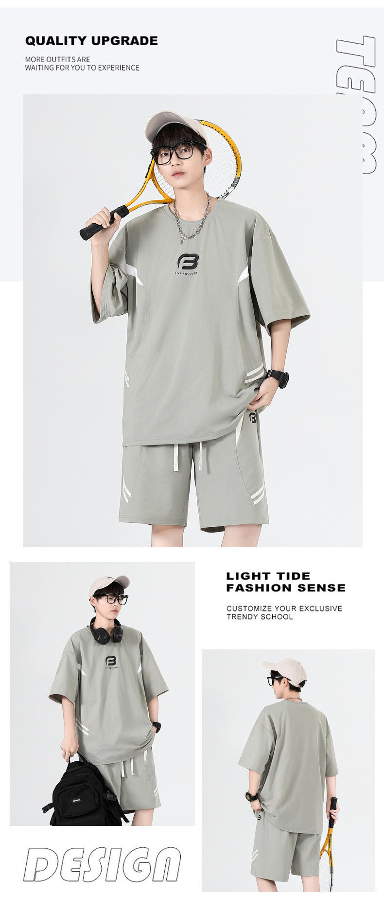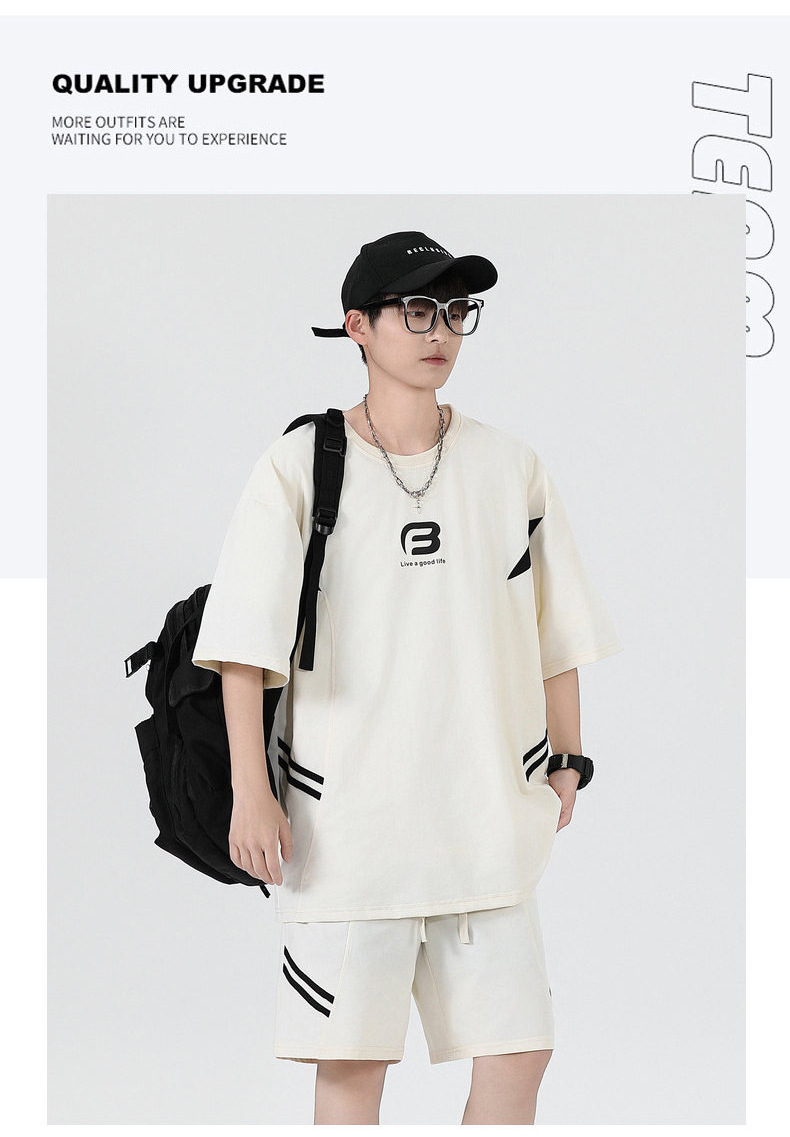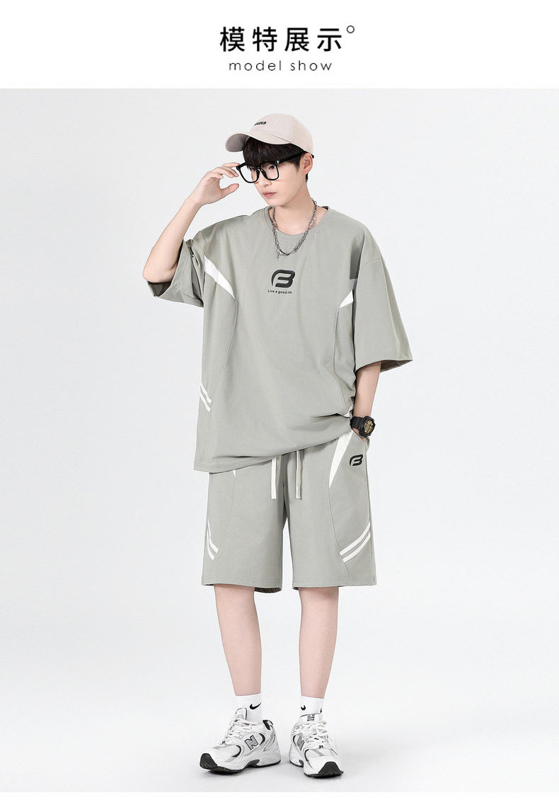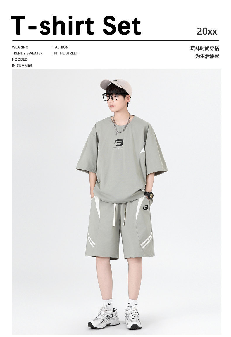 Conjunto de pantalones cortos de manga corta para hombre, nuevo estilo de verano 2025, conjunto deportivo informal de dos piezas, moderno y a la moda para hombres guapos