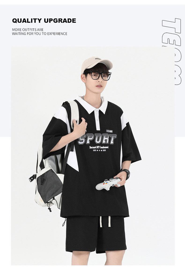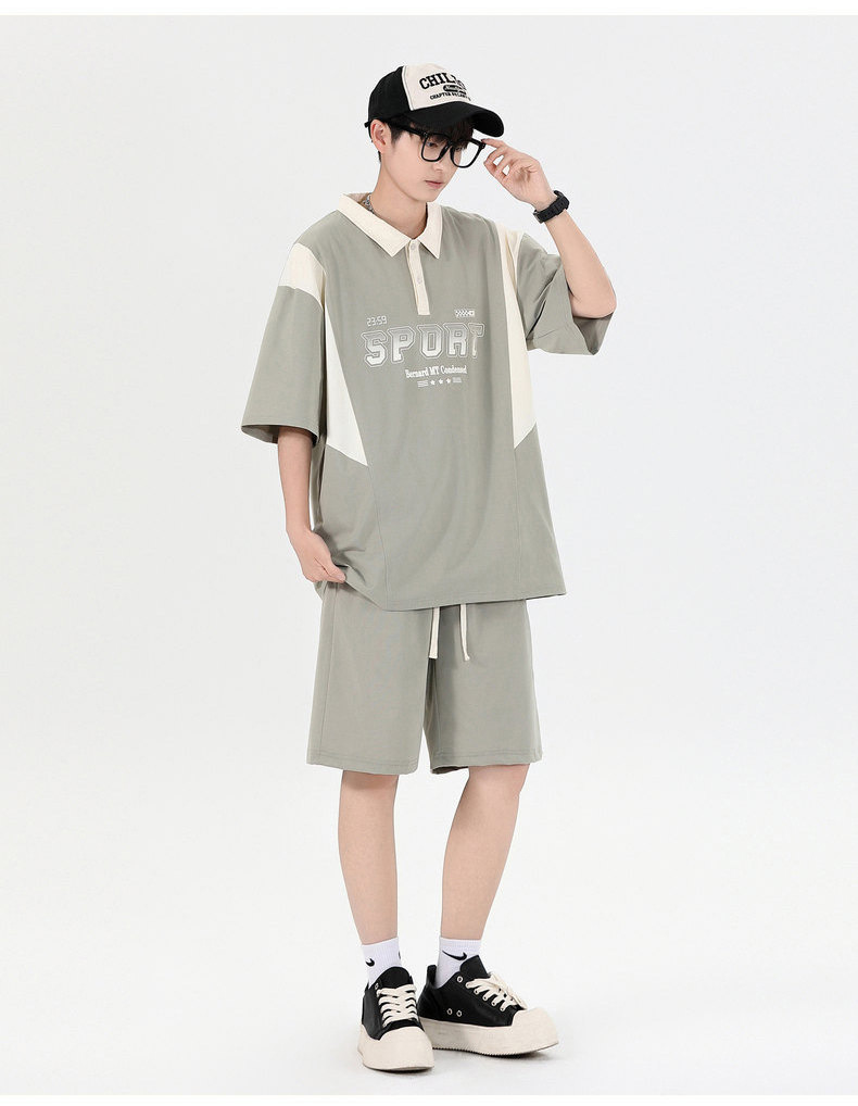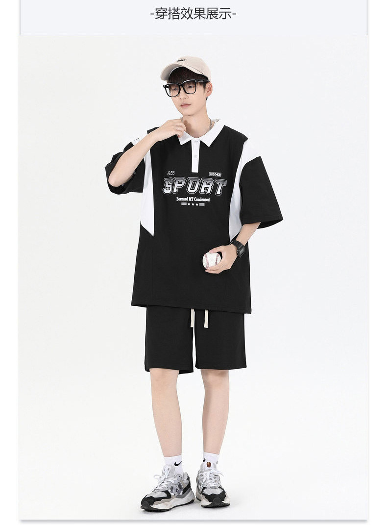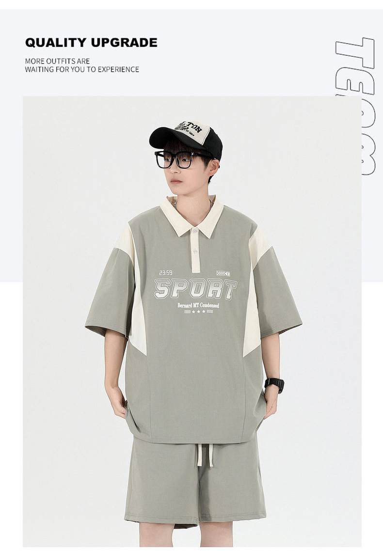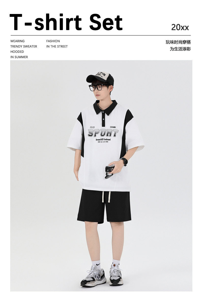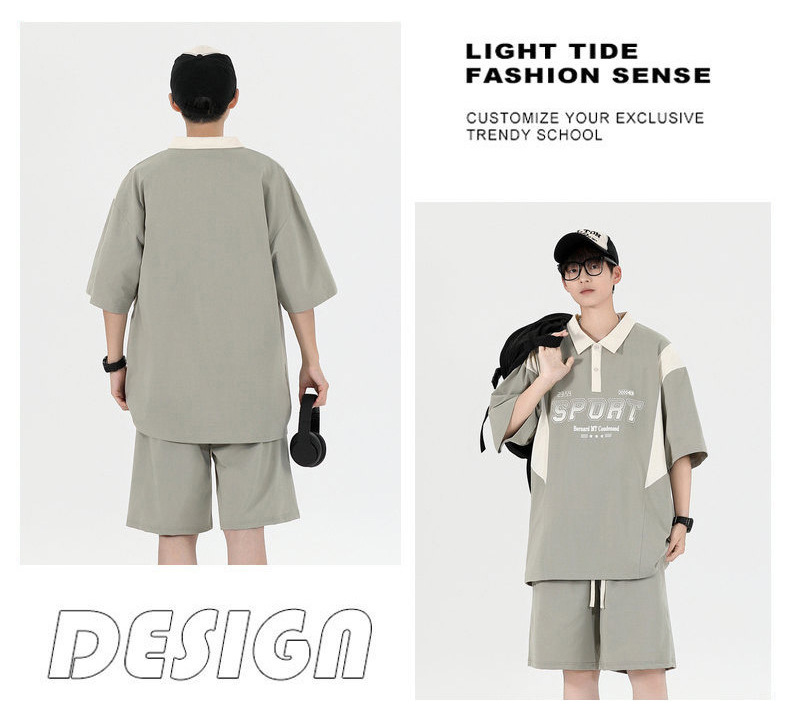 Joven hombre 2025 verano polo solapa suelta traje de manga corta marca de moda deportes de gran tamaño traje de dos piezas