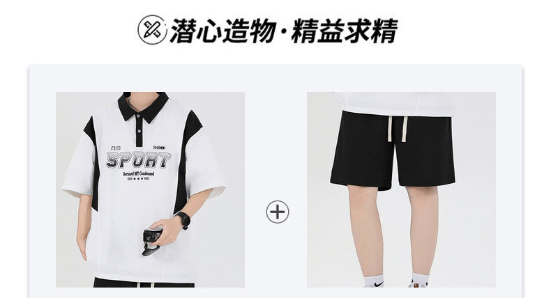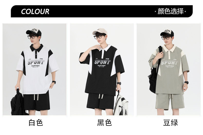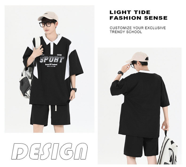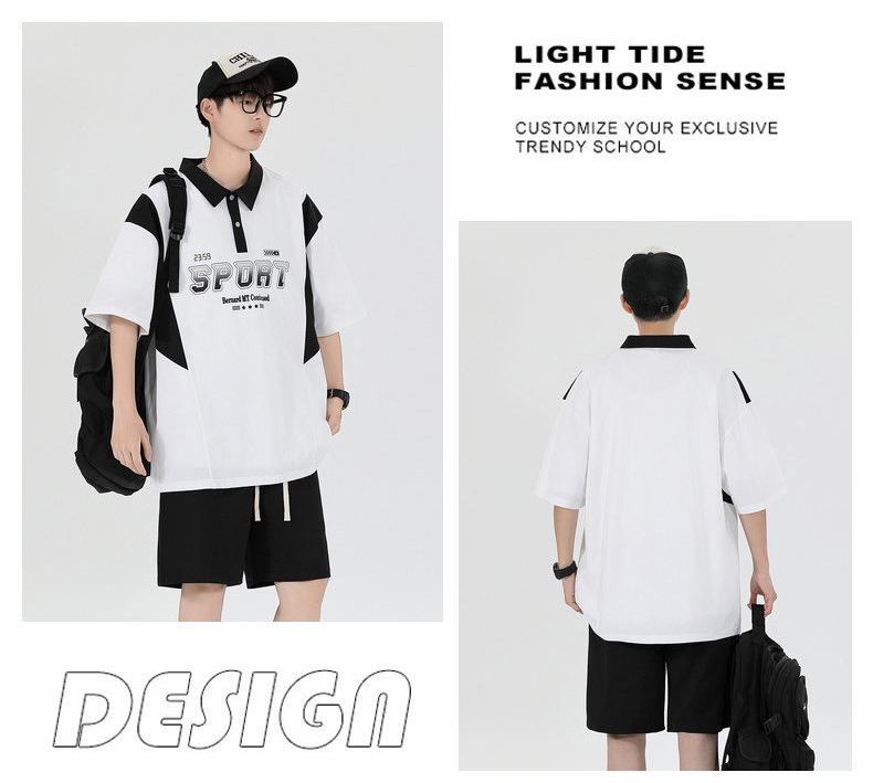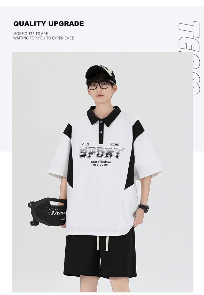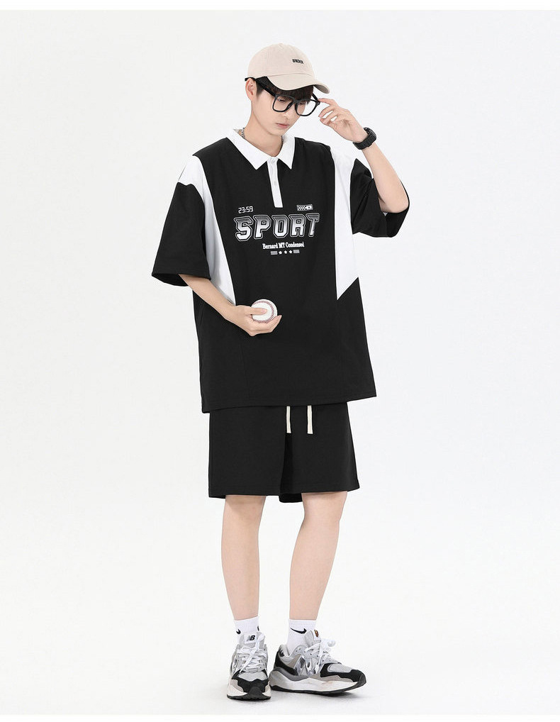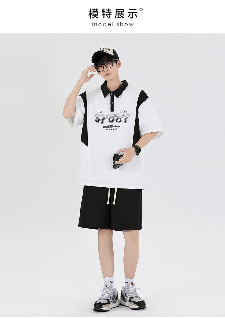 Joven hombre 2025 verano polo solapa suelta traje de manga corta marca de moda deportes de gran tamaño traje de dos piezas