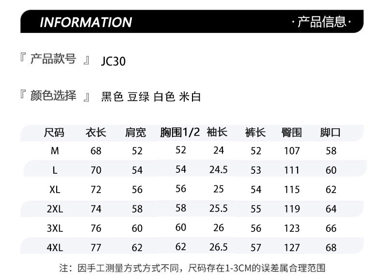 | Colores | JC30 traje negro,JC30 traje blanco,JC30 traje verde frijol,JC30 traje beige |