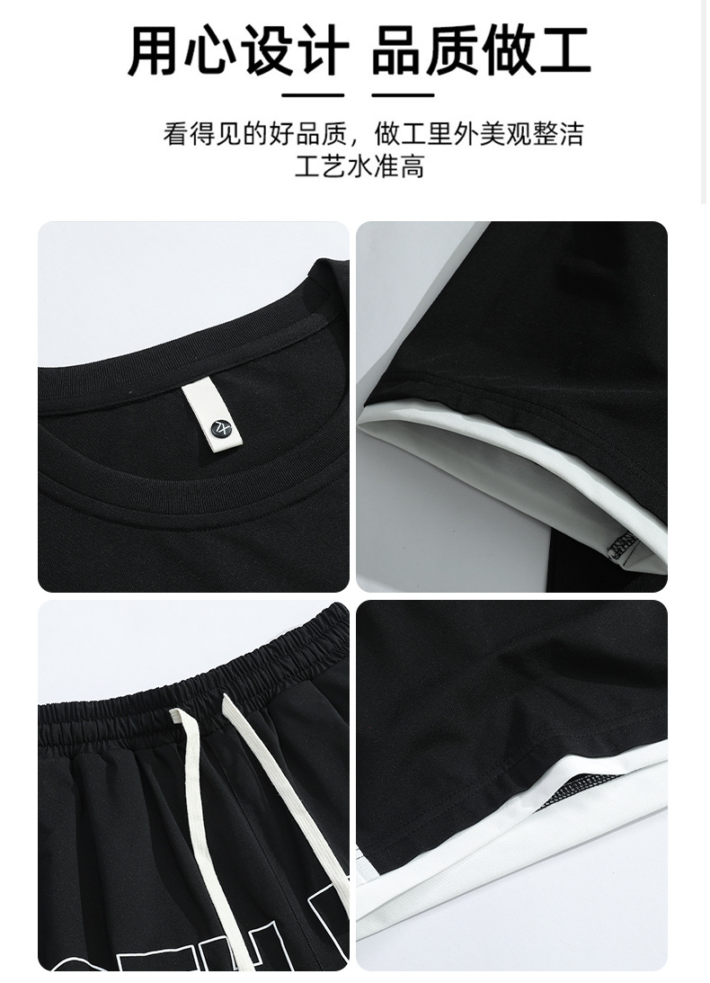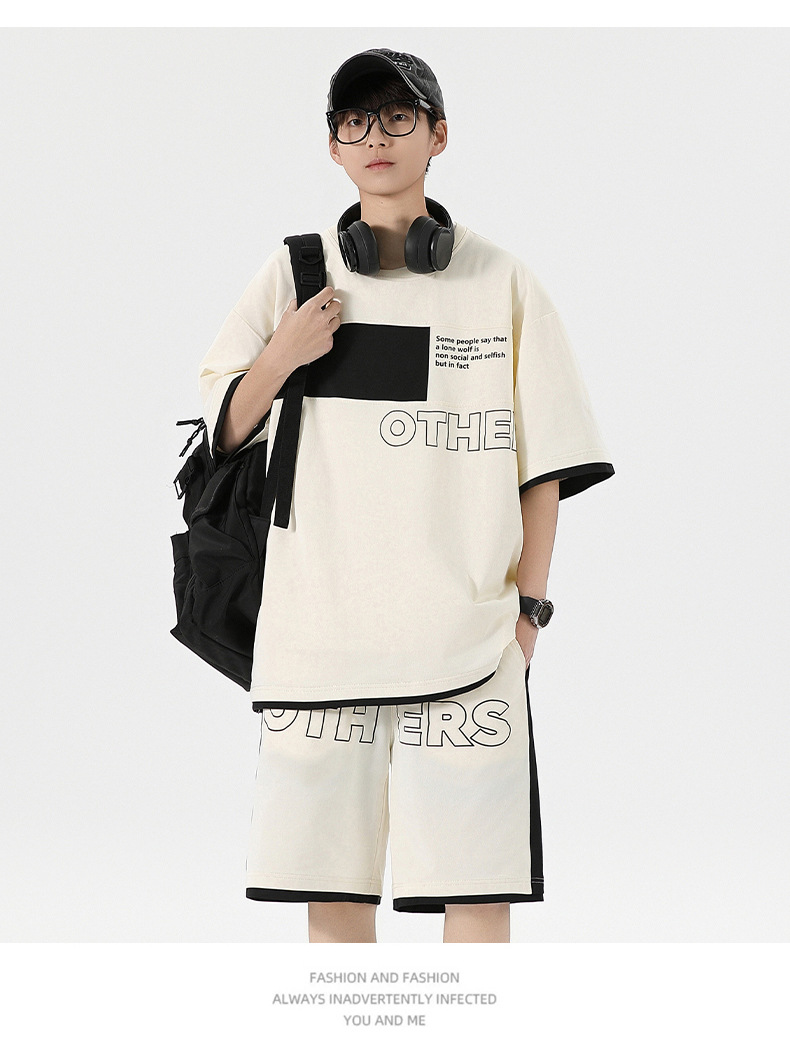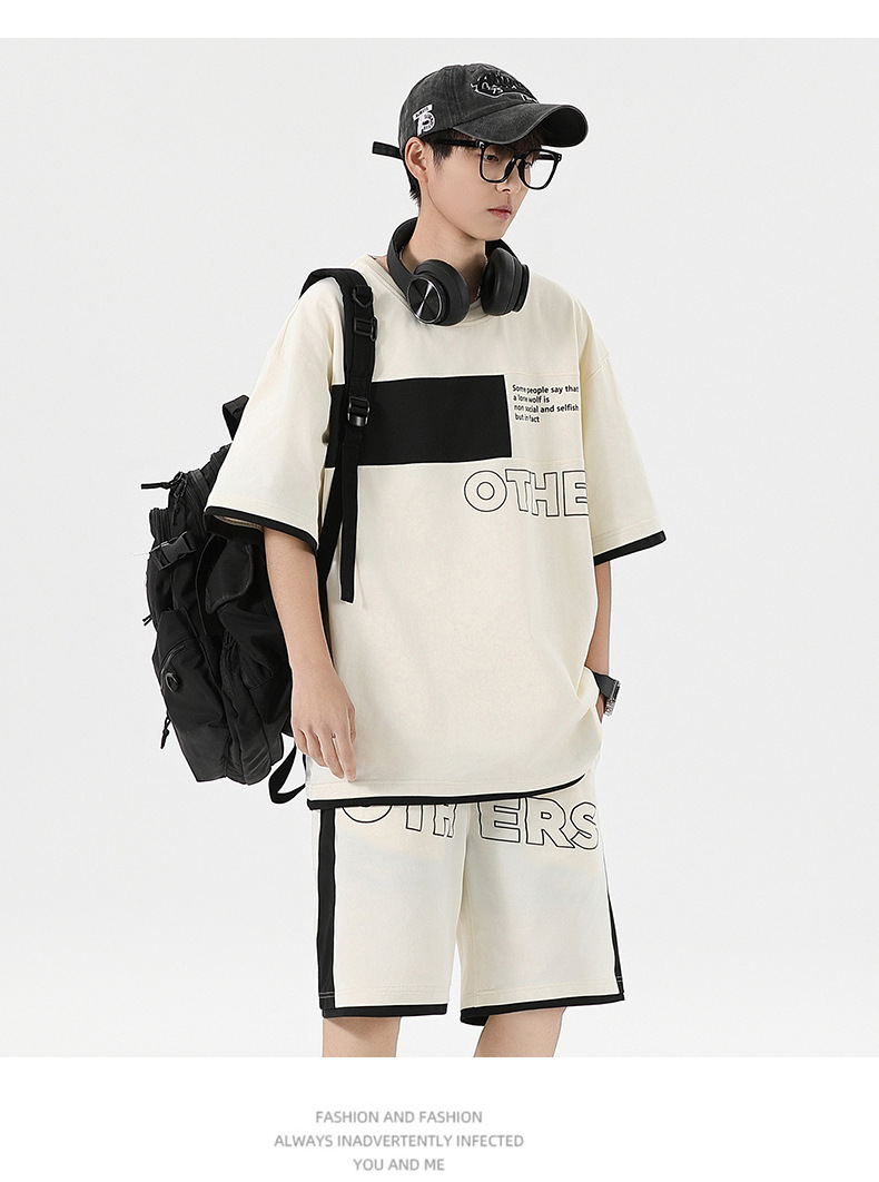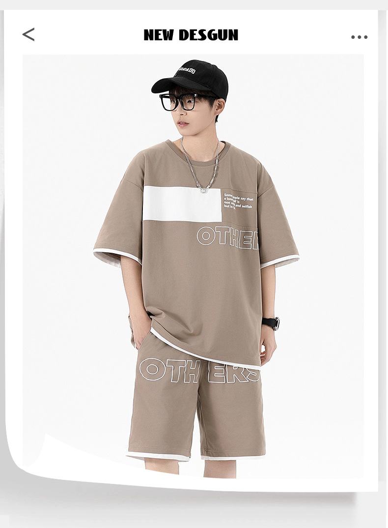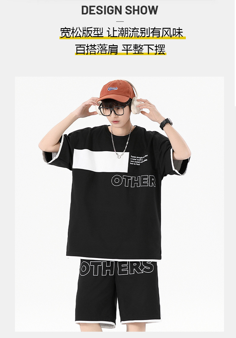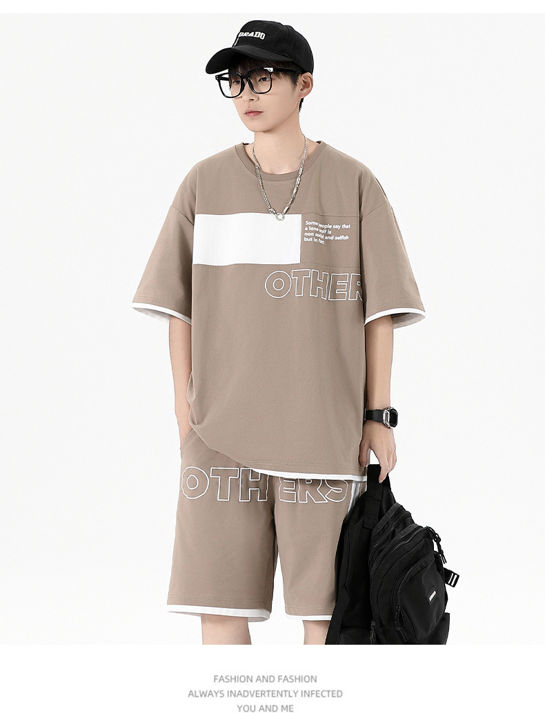 Traje informal holgado de manga corta para hombre, pantalones cortos de manga corta con conjunto de dos piezas, color contrastante, fresco, de verano