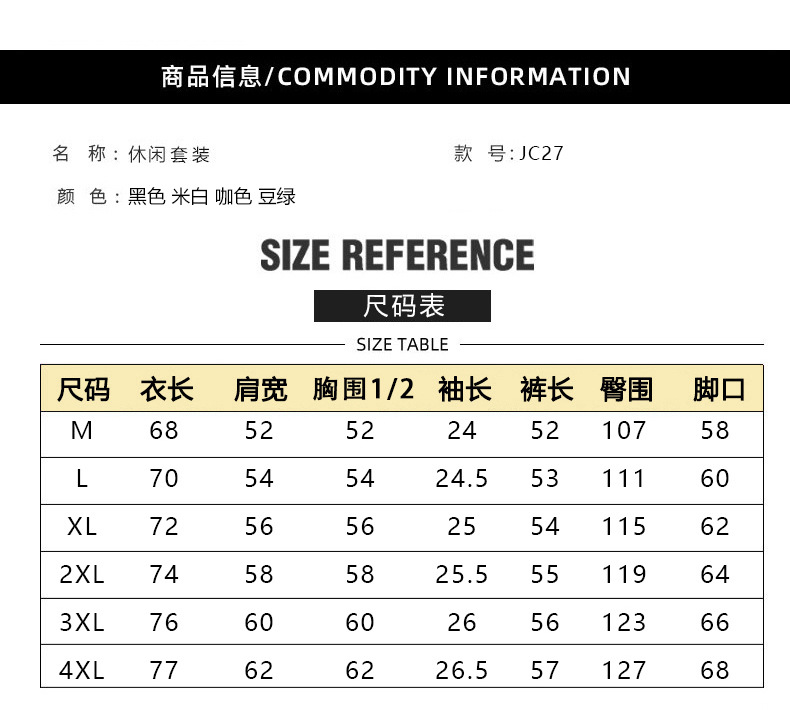 | Colores | JC27 traje negro,JC27 traje beige,Juego de color café JC27,JC27 traje verde frijol |