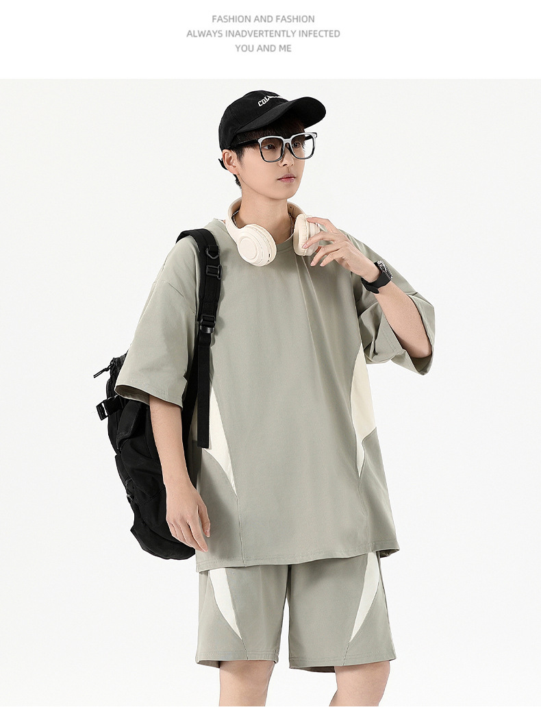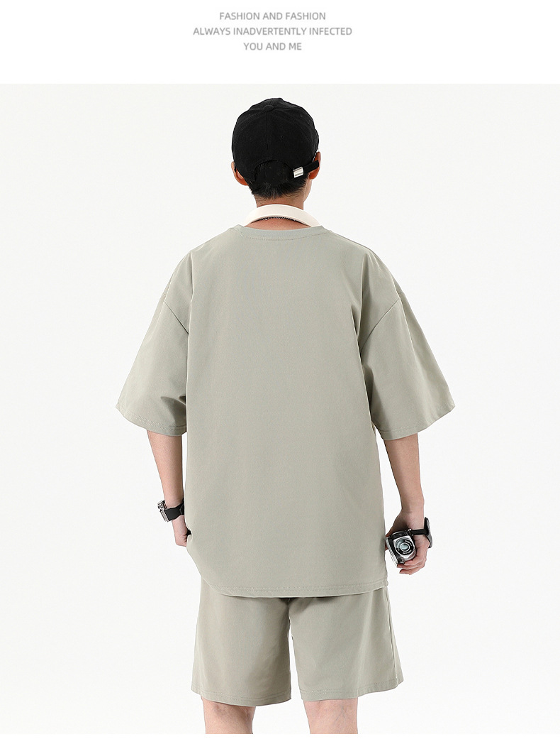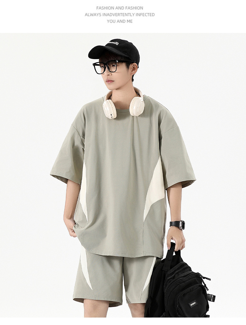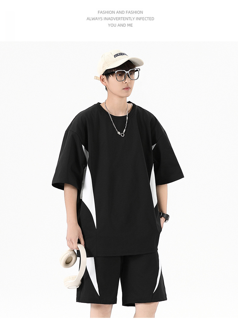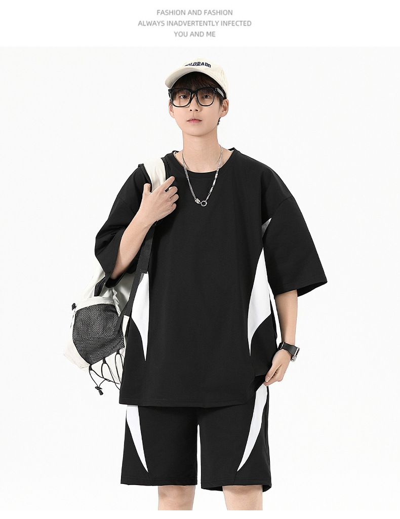 Camiseta suelta de manga corta para hombre adolescente, verano para niño 2025, pantalones cortos de manga corta para hombre de nueva tendencia, traje de dos piezas