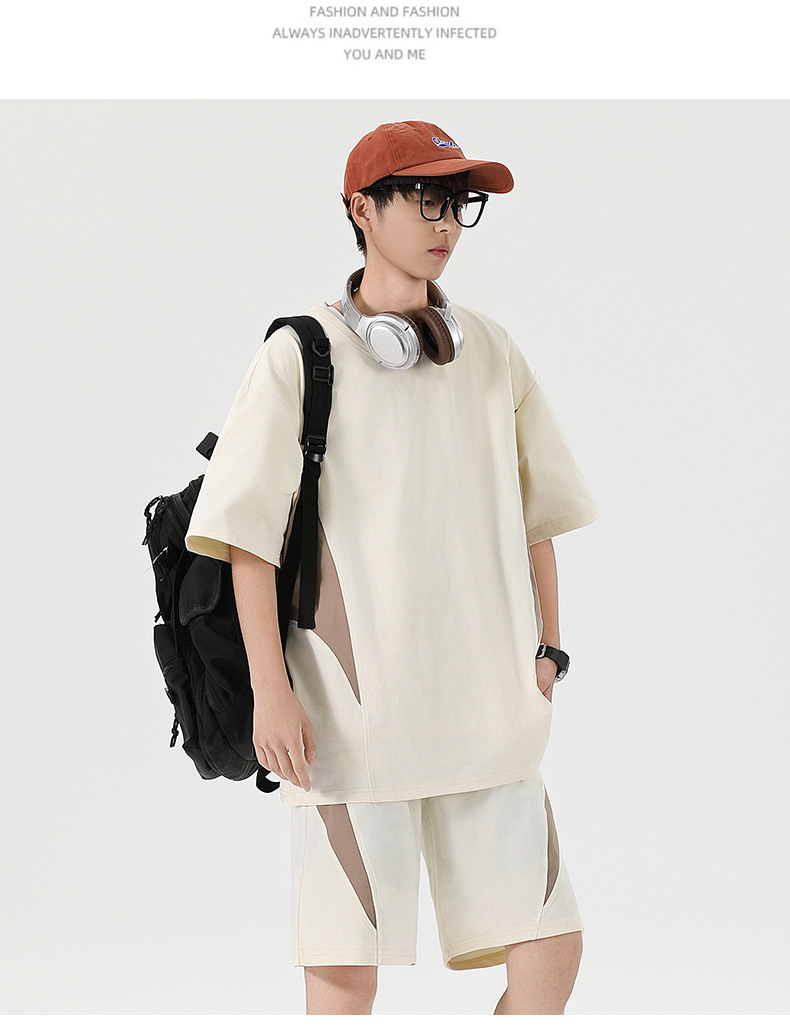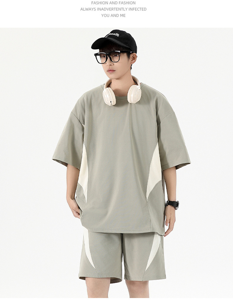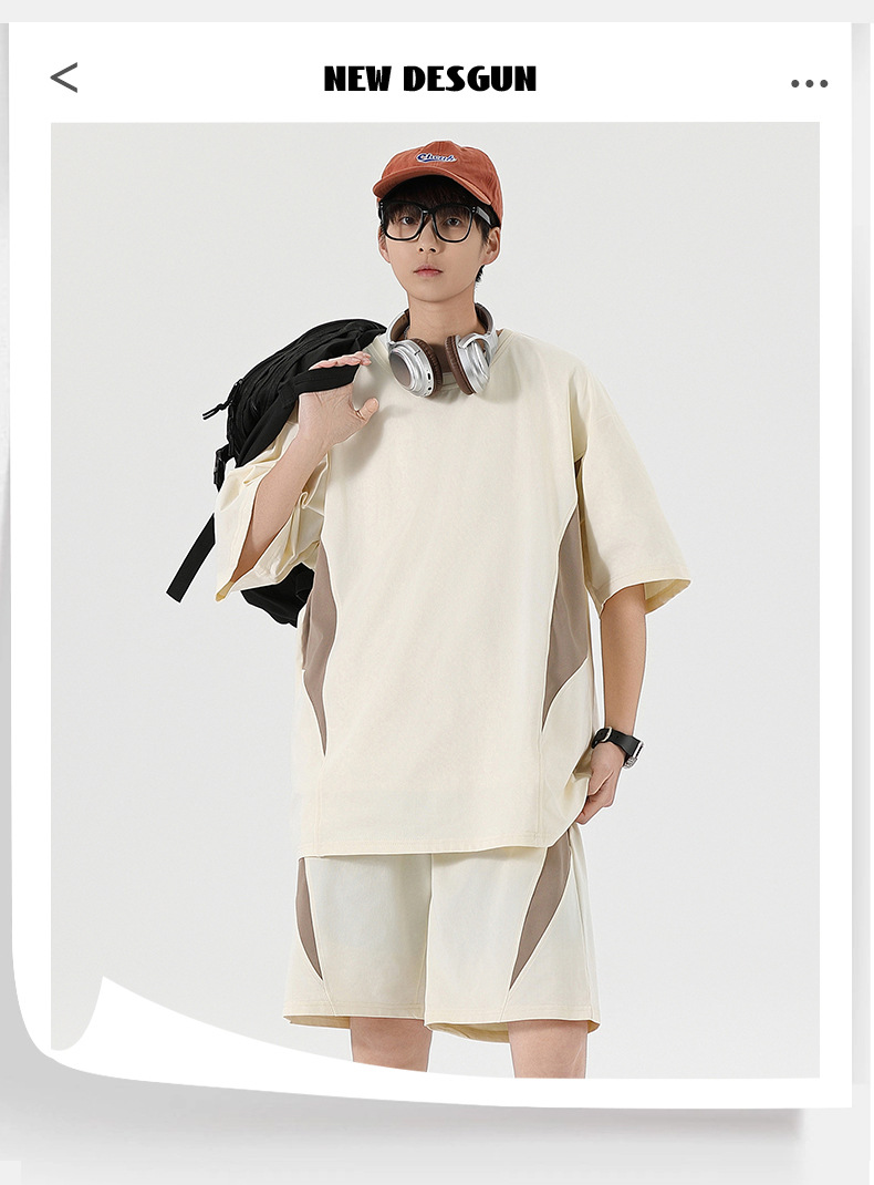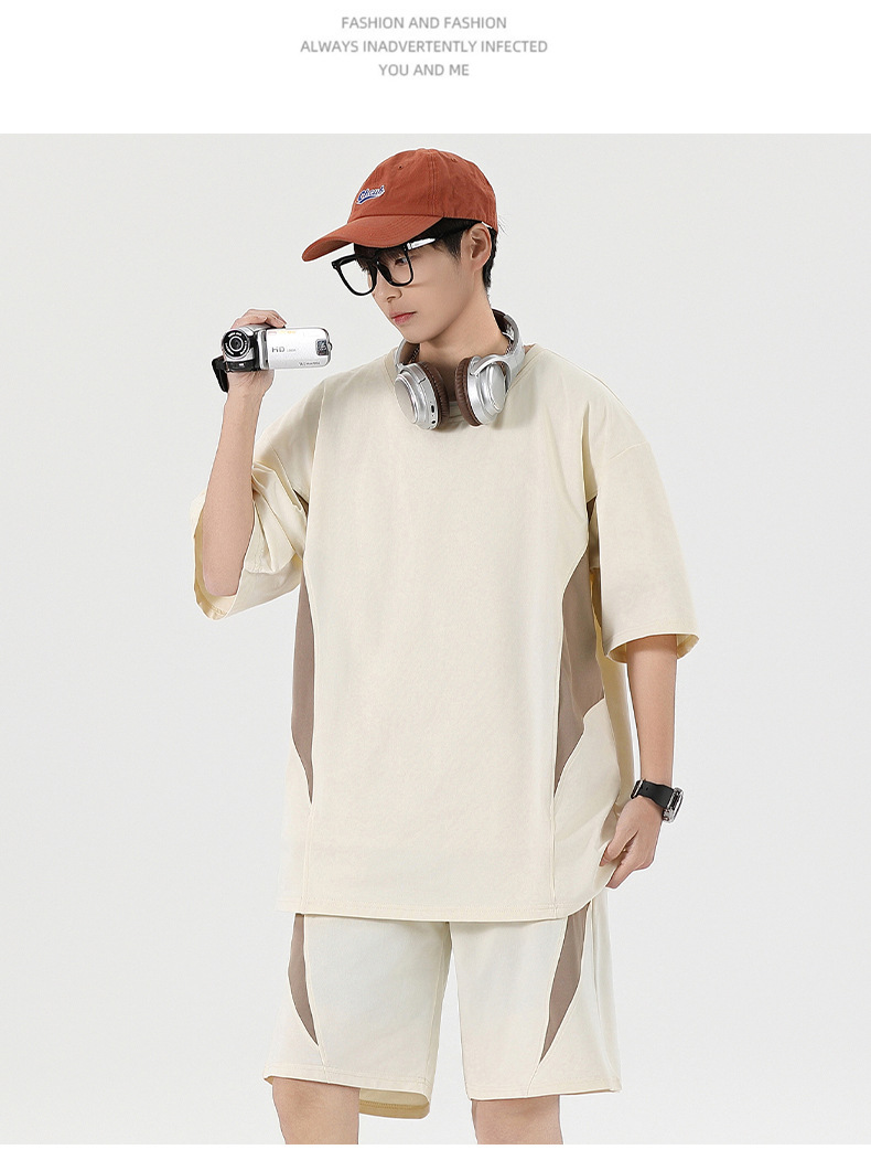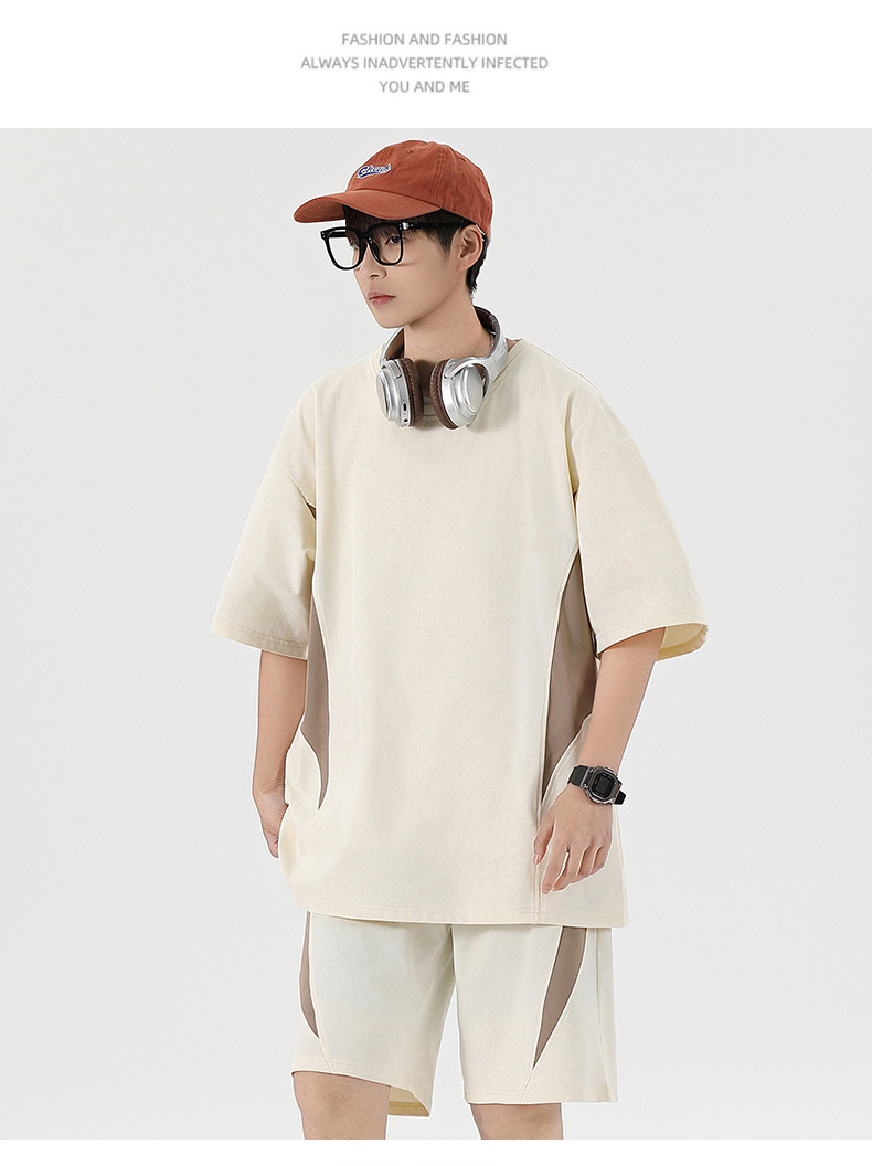 Camiseta suelta de manga corta para hombre adolescente, verano para niño 2025, pantalones cortos de manga corta para hombre de nueva tendencia, traje de dos piezas