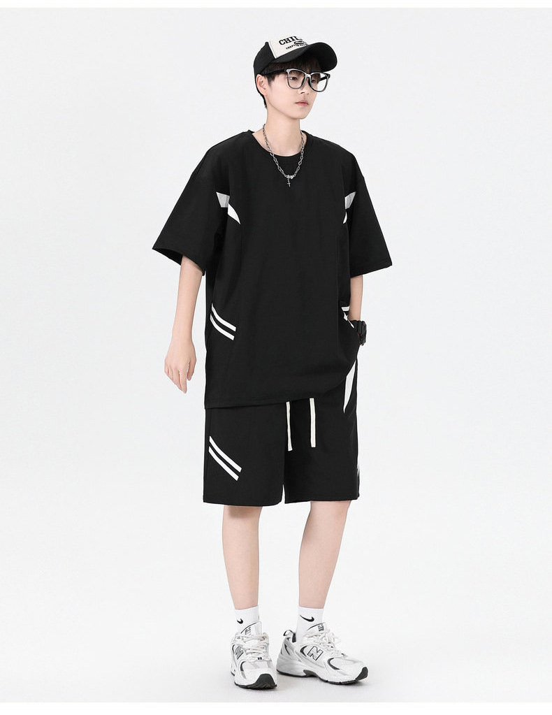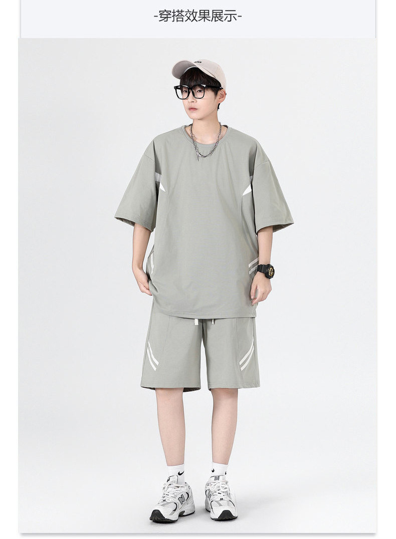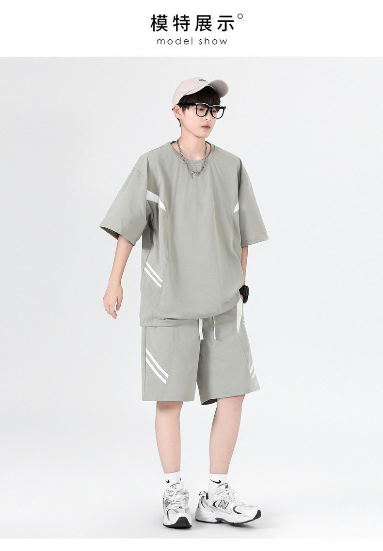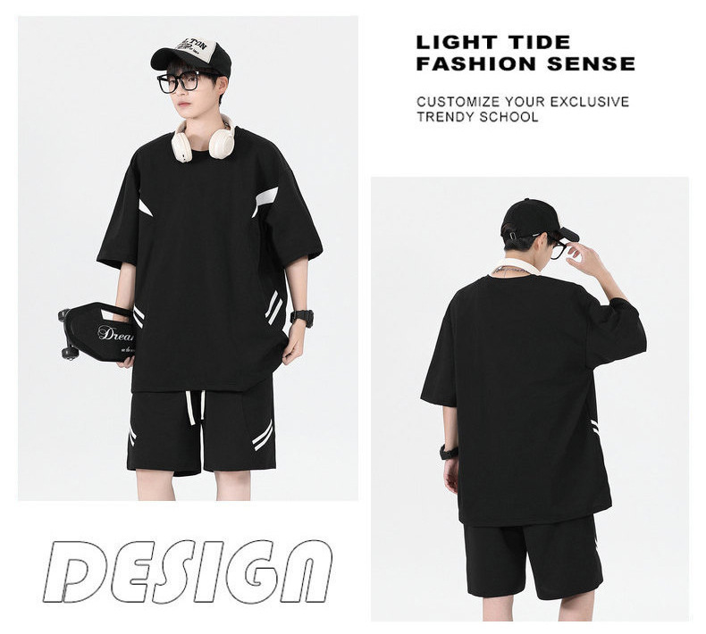 Ropa de clase deportiva logotipo personalizado verano joven hombre moda deportes sueltos cuello redondo pantalones cortos de manga corta traje hombre
