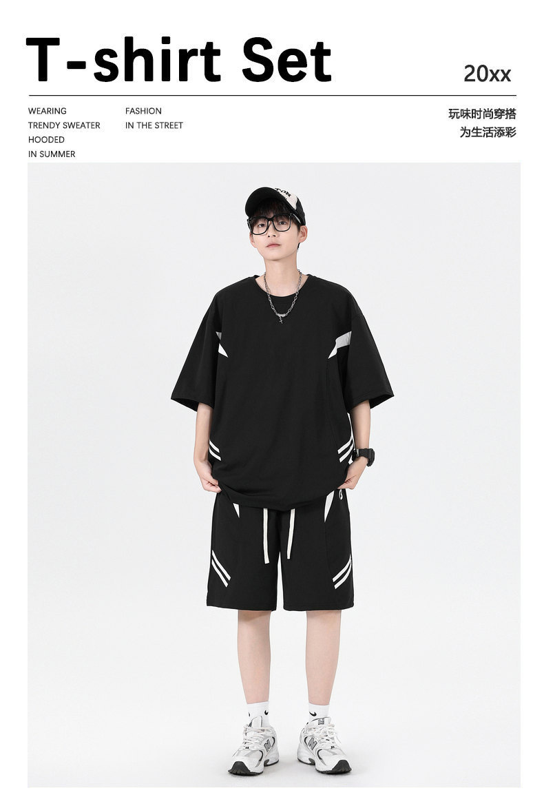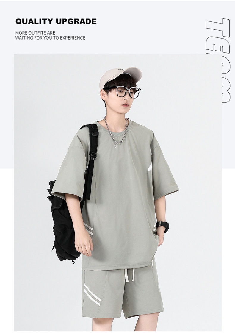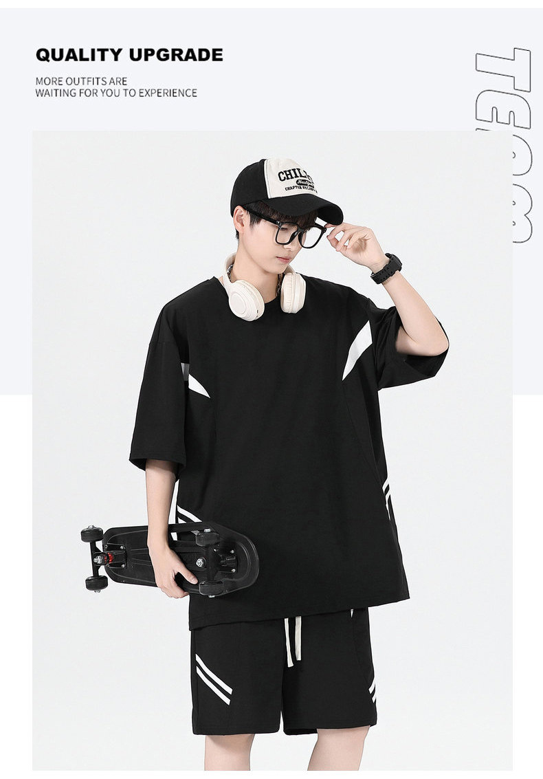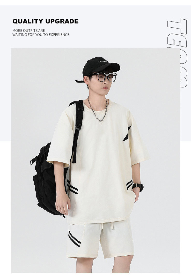 Ropa de clase deportiva logotipo personalizado verano joven hombre moda deportes sueltos cuello redondo pantalones cortos de manga corta traje hombre