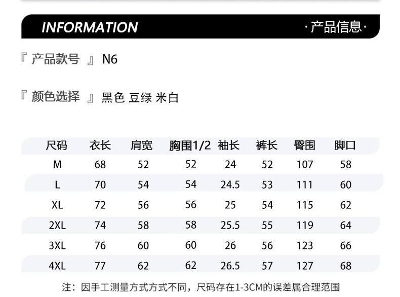 | Colores | N6 traje negro,Traje blanco N6,Juego verde frijol N6 |