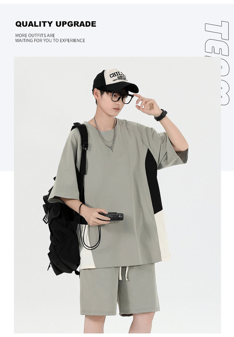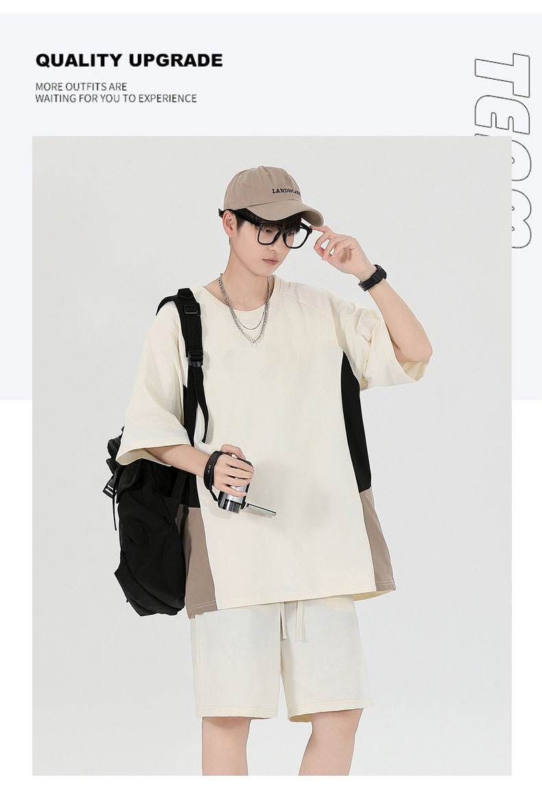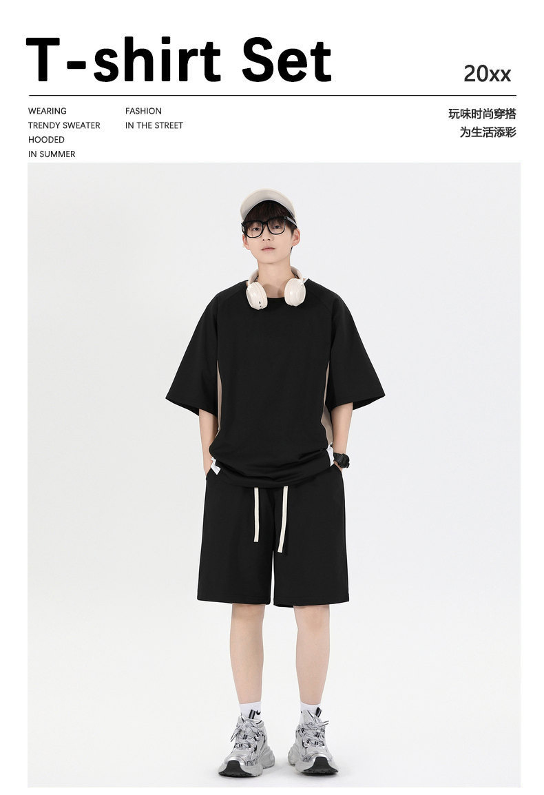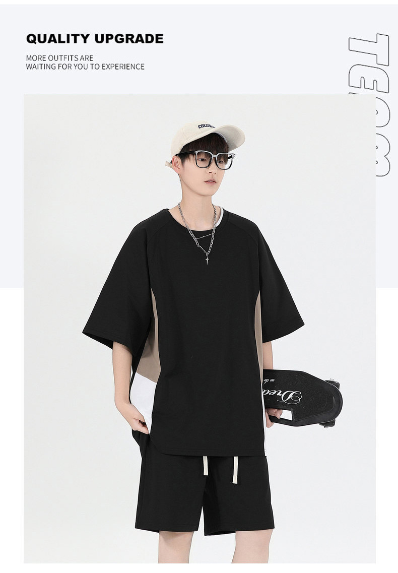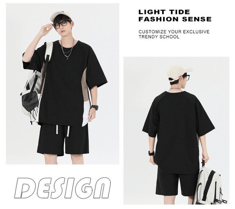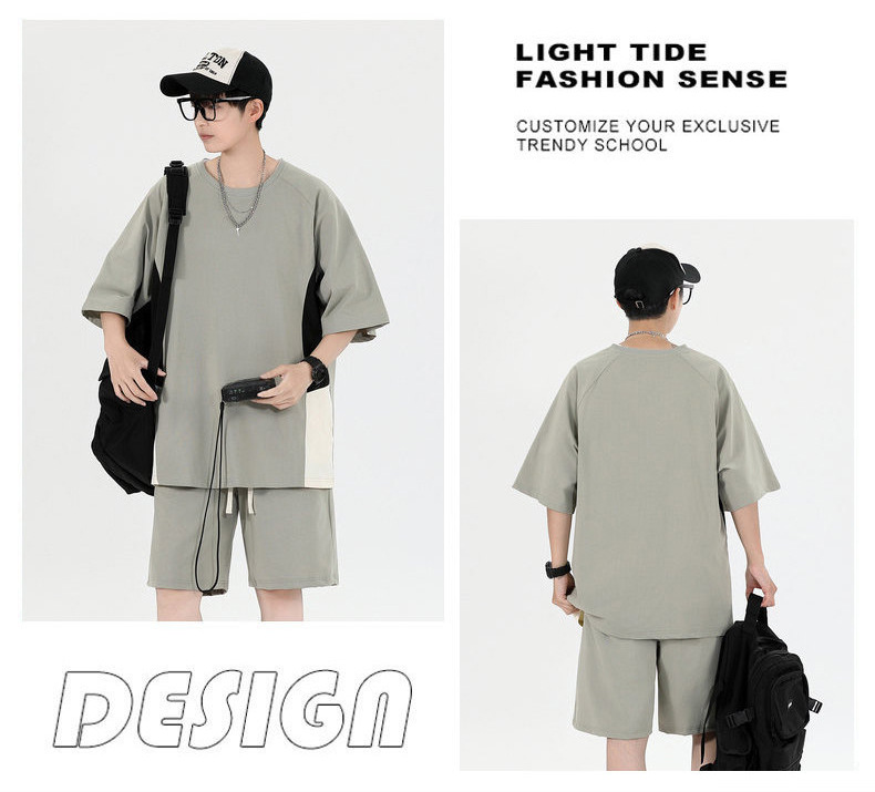 Fábrica de cuello redondo suelto camiseta de verano hombre manga corta pantalones cortos trajes deportivos para hombres personalizados DIY personalizados
