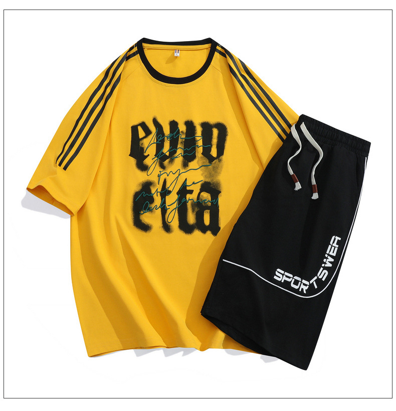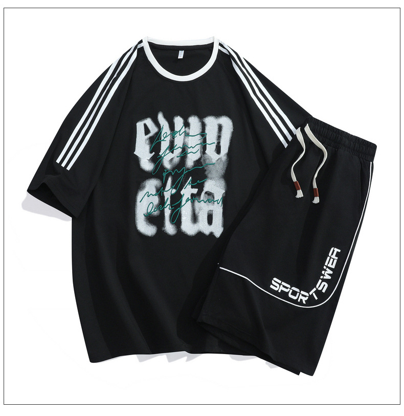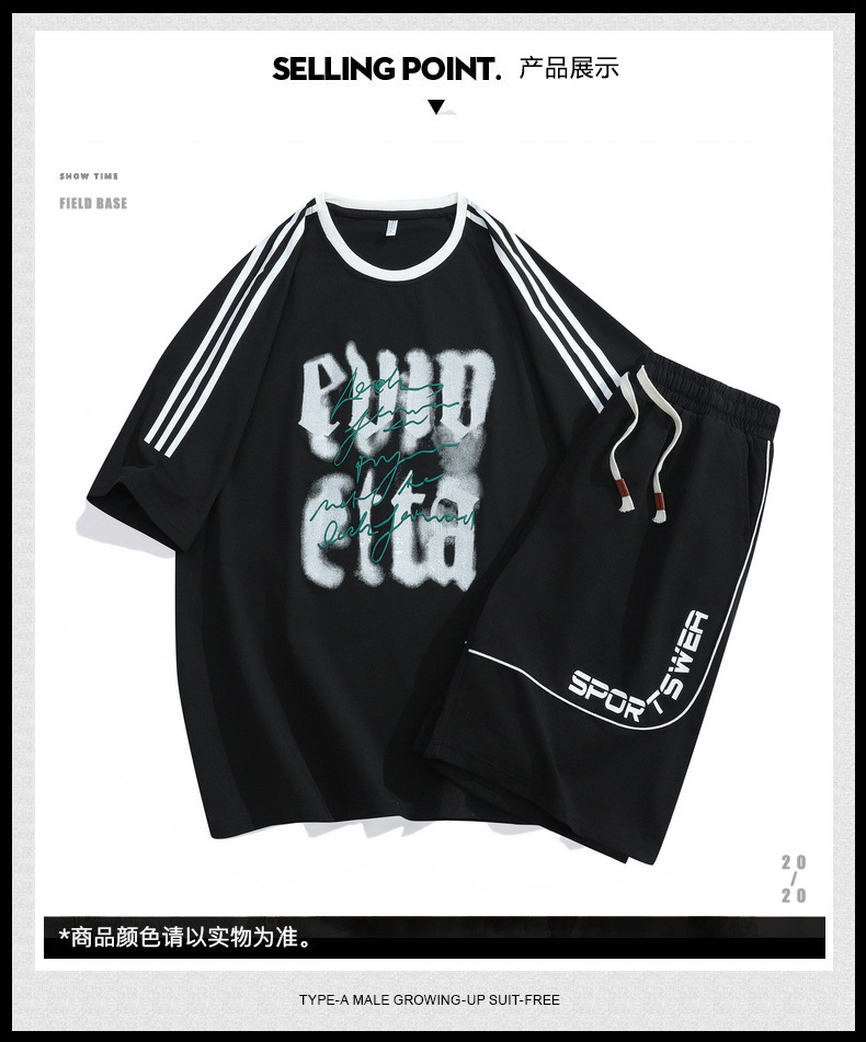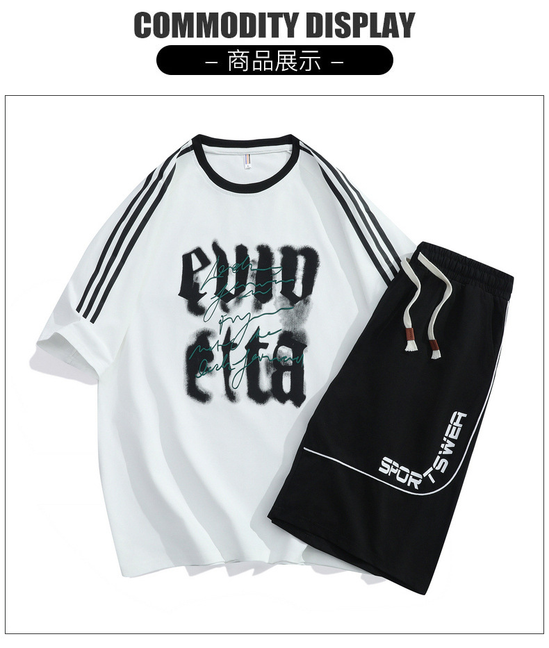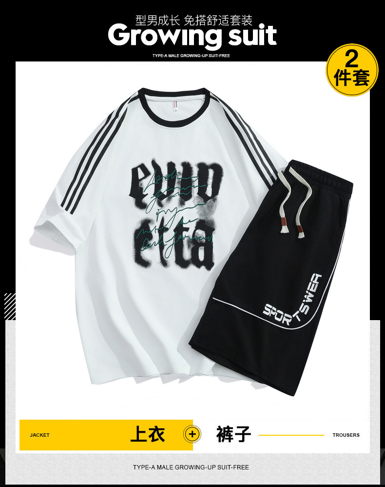 2025 verano nuevo estilo simple traje casual suelto para hombres y adolescentes pantalones cortos de manga corta tendencia de moda hermosa impresión