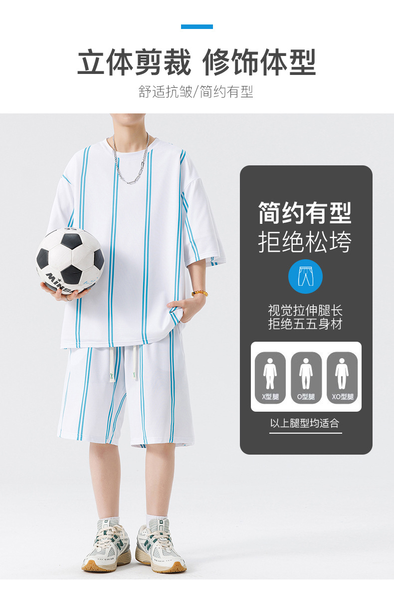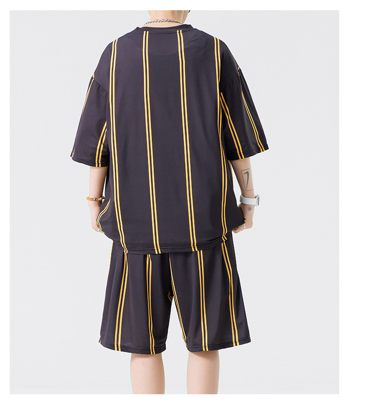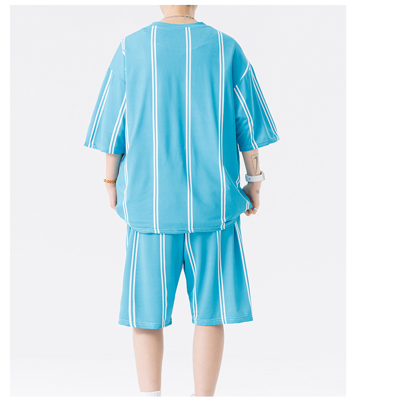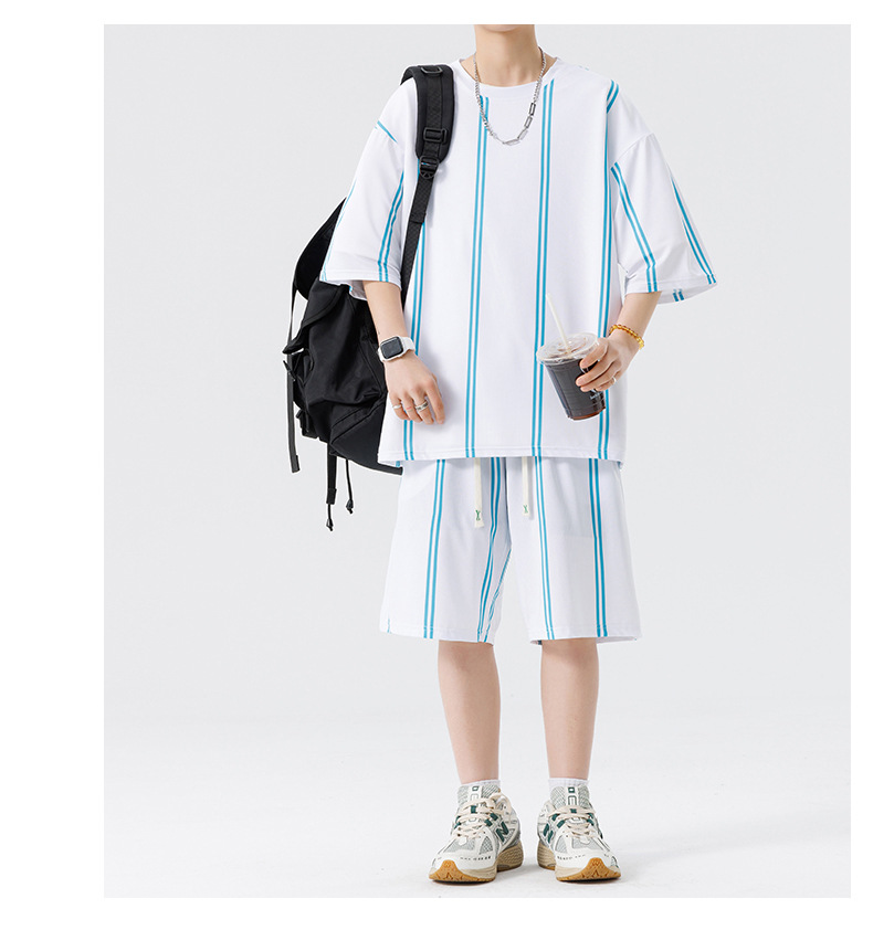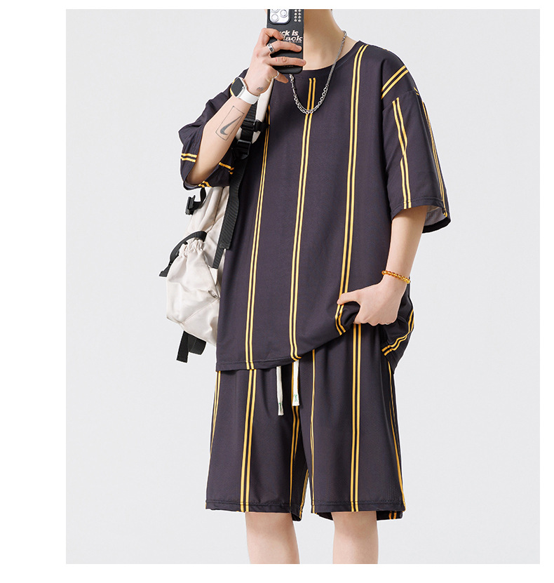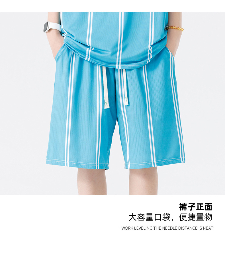 Nuevo traje de pantalones cortos de camiseta de cuello redondo con estampado a rayas de verano para adolescentes, pantalones cortos casuales de manga corta, ropa suelta para el hogar