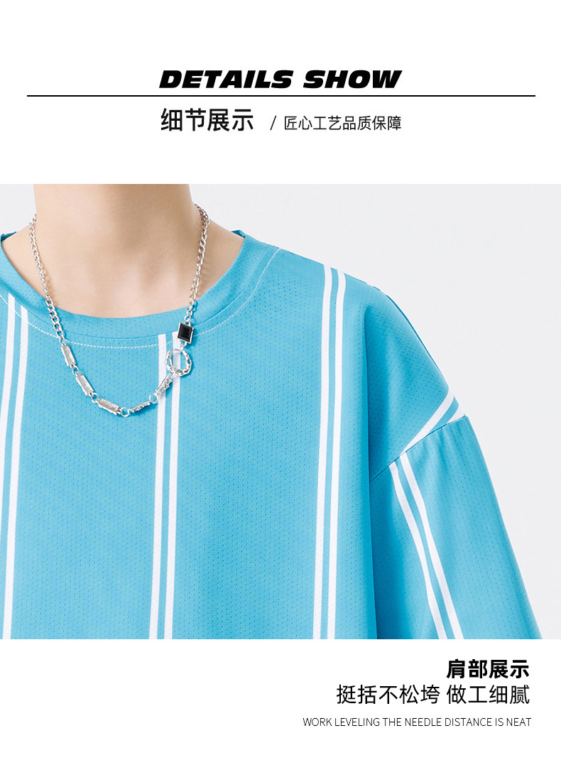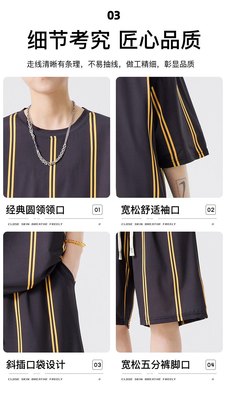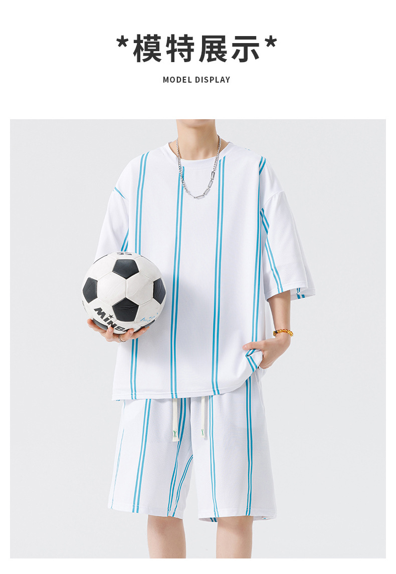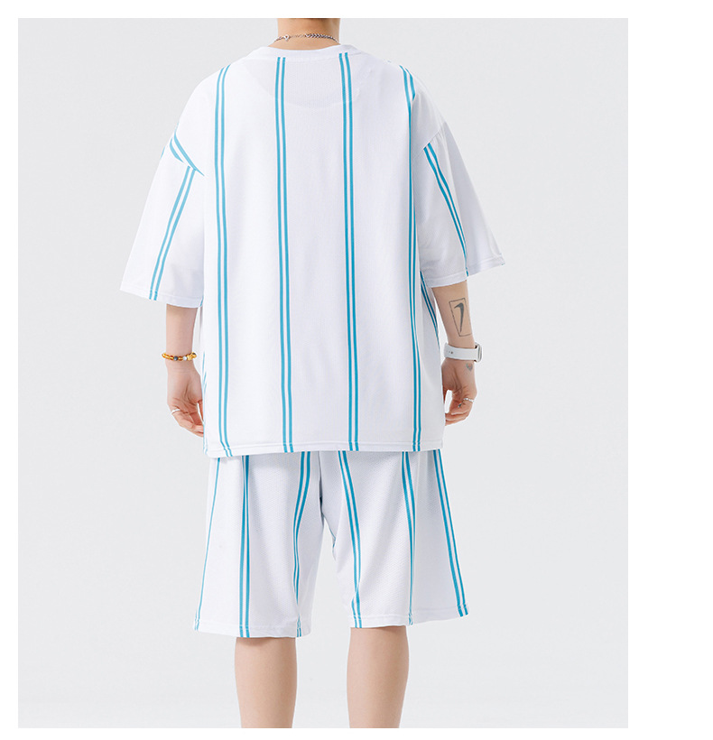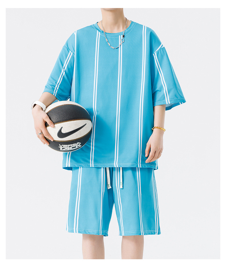 Nuevo traje de pantalones cortos de camiseta de cuello redondo con estampado a rayas de verano para adolescentes, pantalones cortos casuales de manga corta, ropa suelta para el hogar