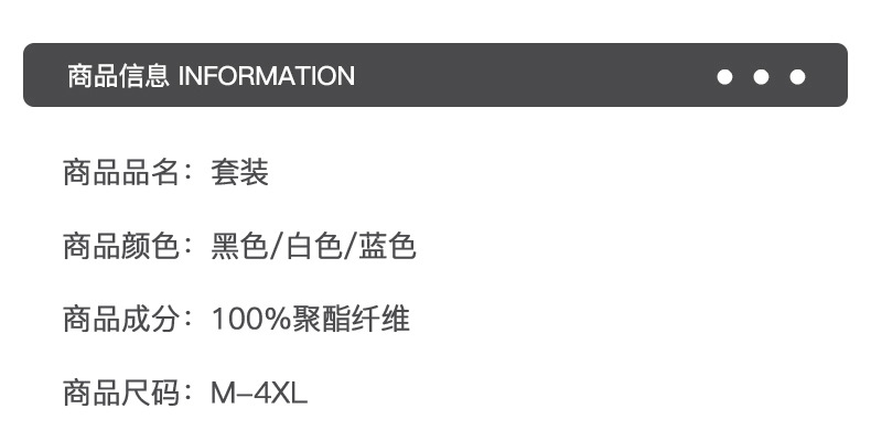 | Colores | TZ8976 traje negro,TZ8976 traje blanco,TZ8976 set azul |