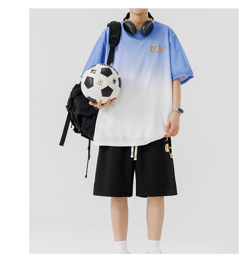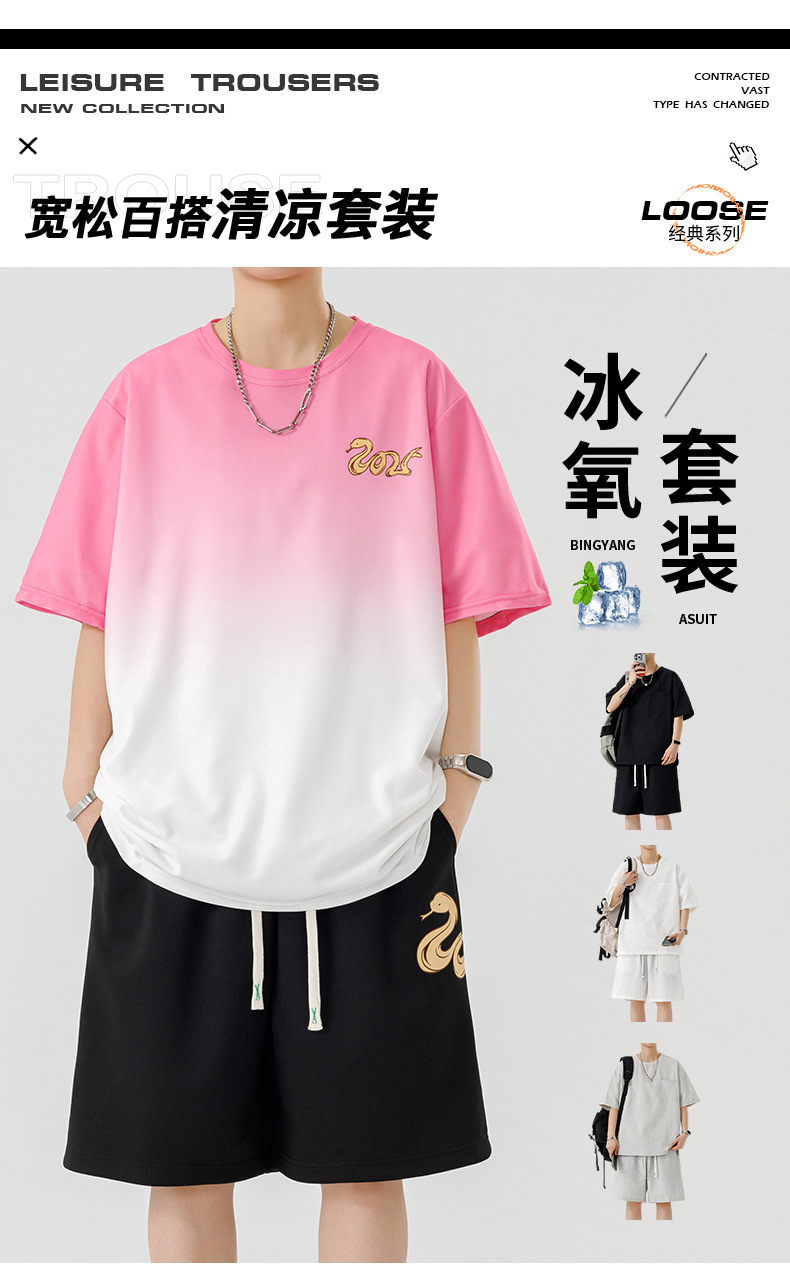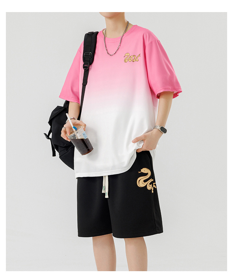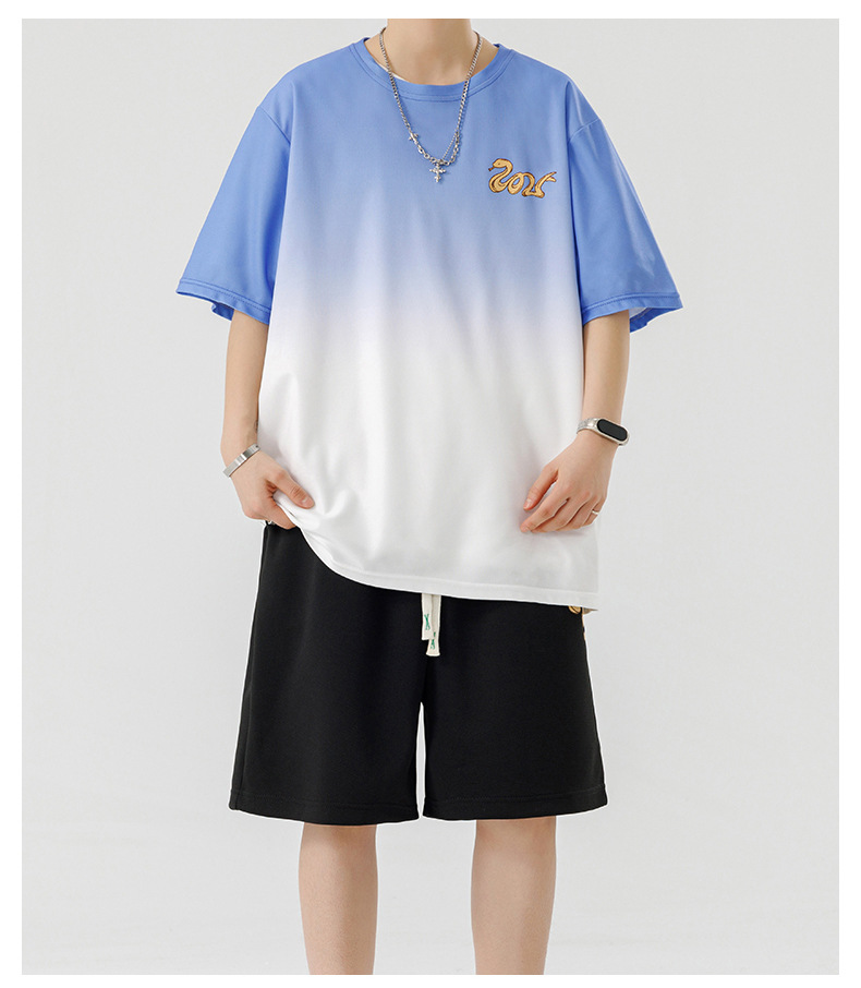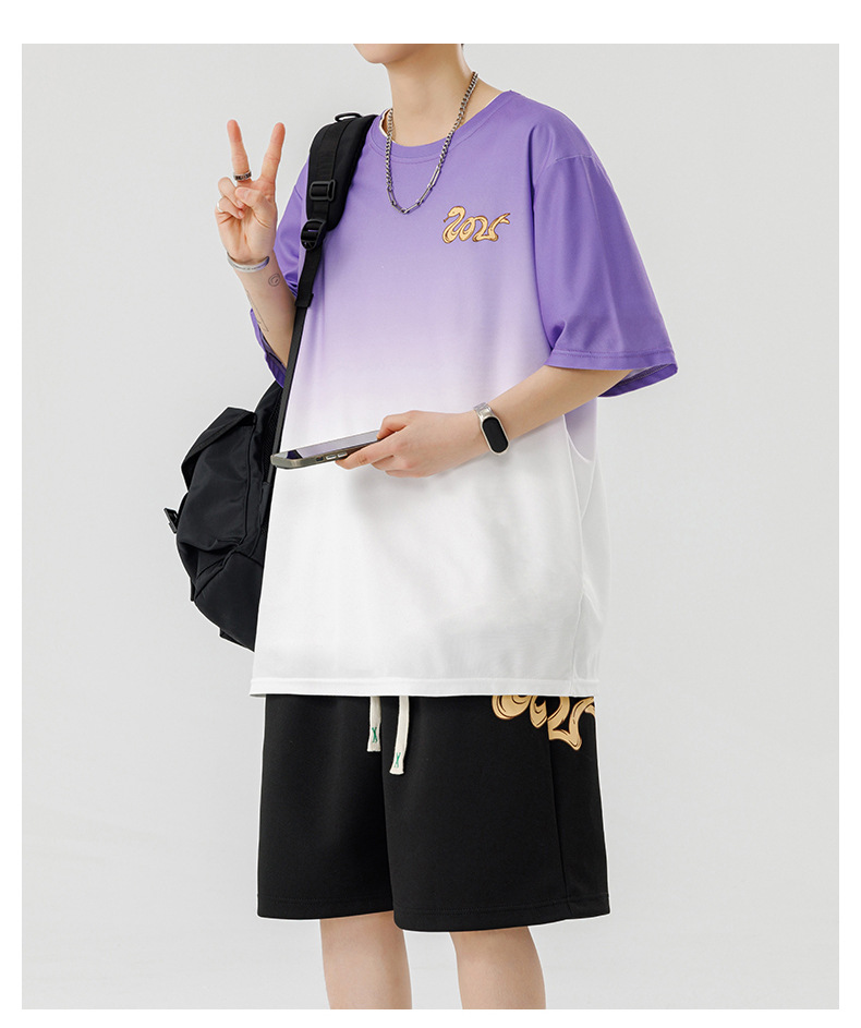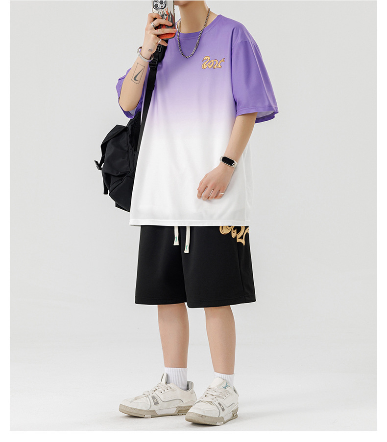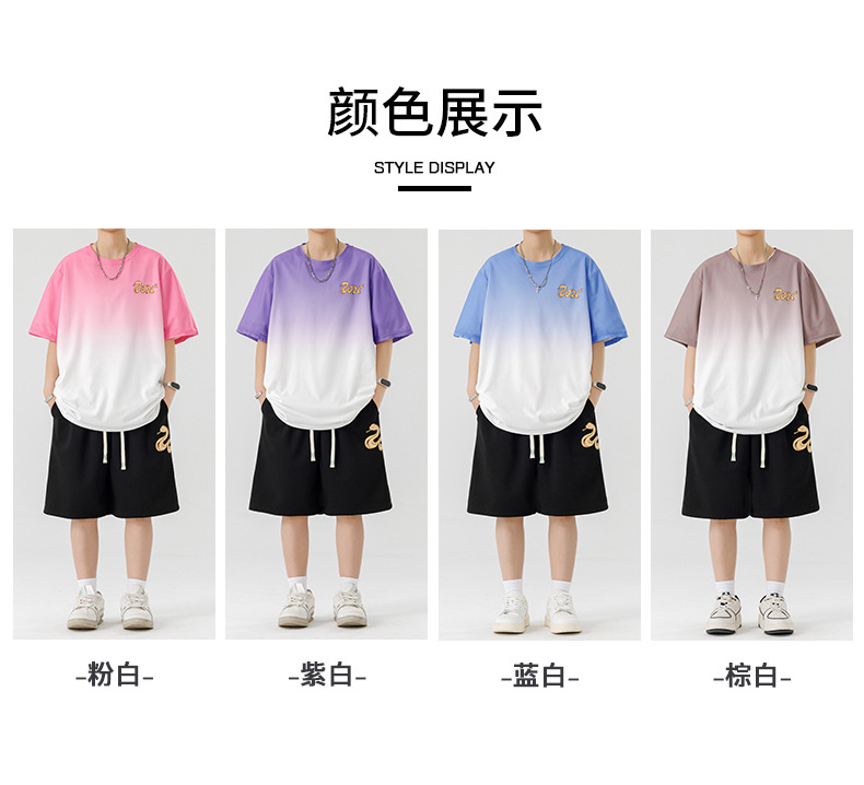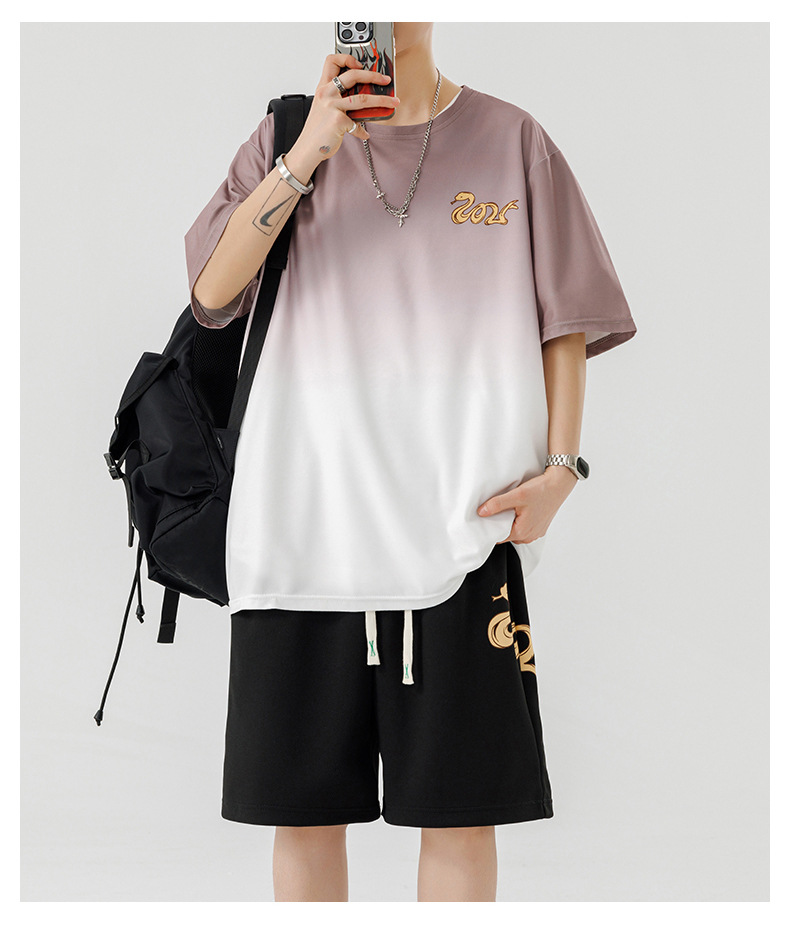 2025 nuevo verano adolescente pantalones cortos de manga corta traje deportivo casual moda degradado suelto traje de dos piezas hombre