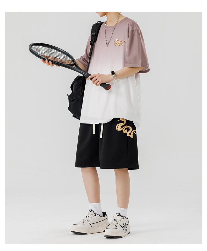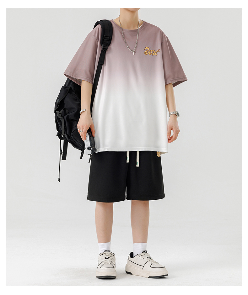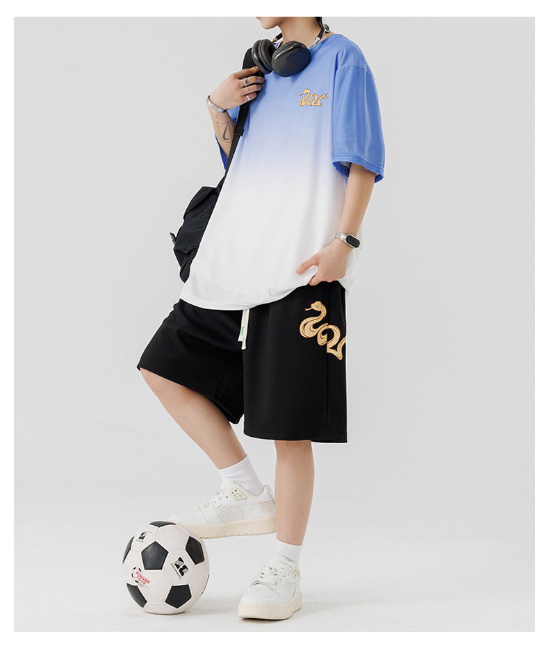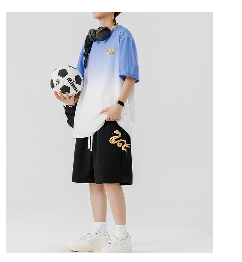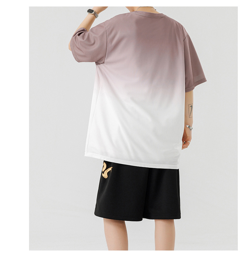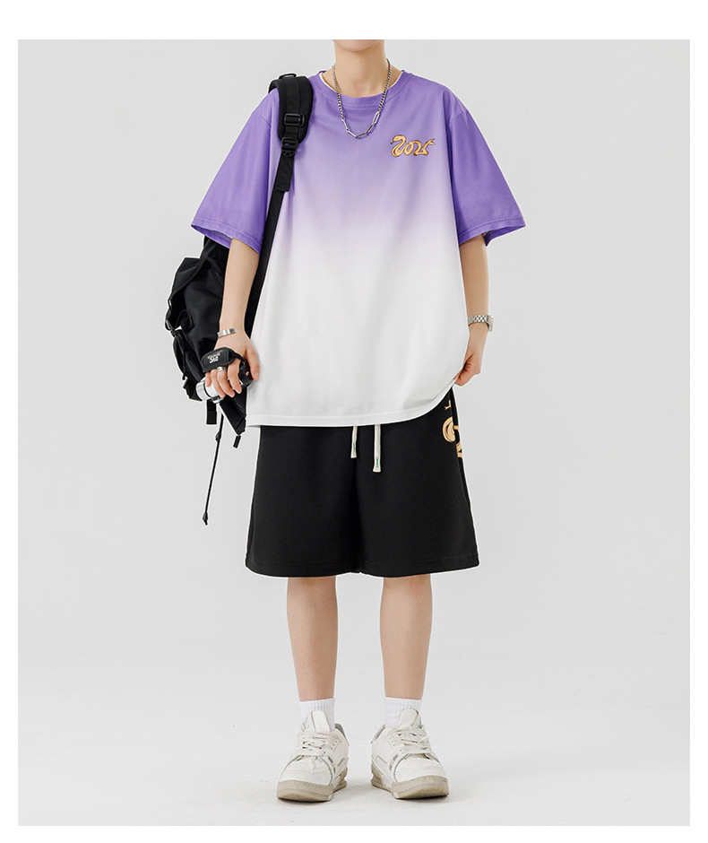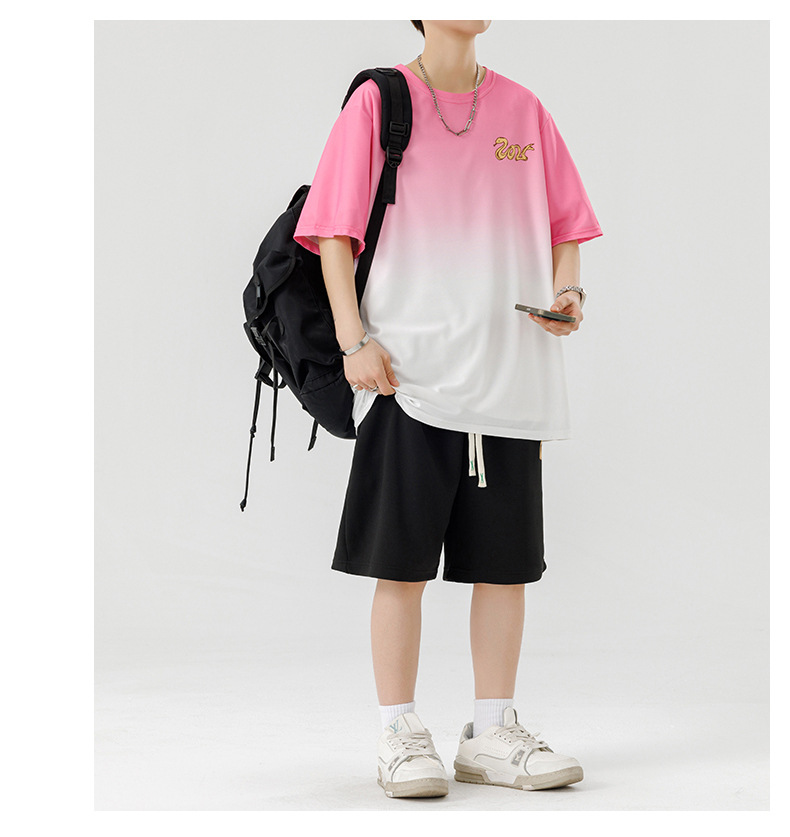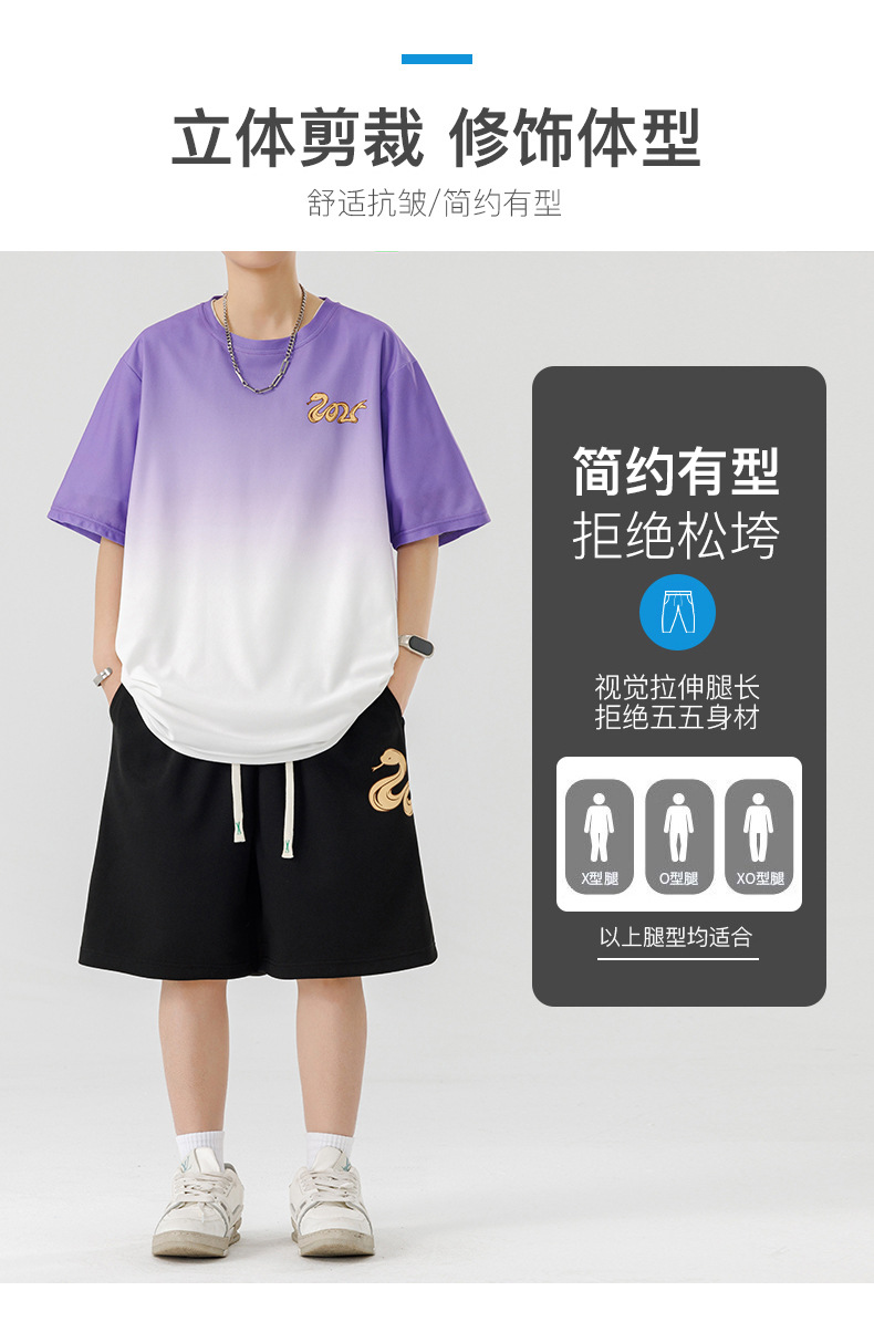 2025 nuevo verano adolescente pantalones cortos de manga corta traje deportivo casual moda degradado suelto traje de dos piezas hombre
