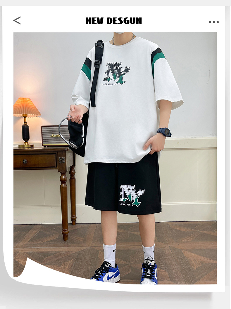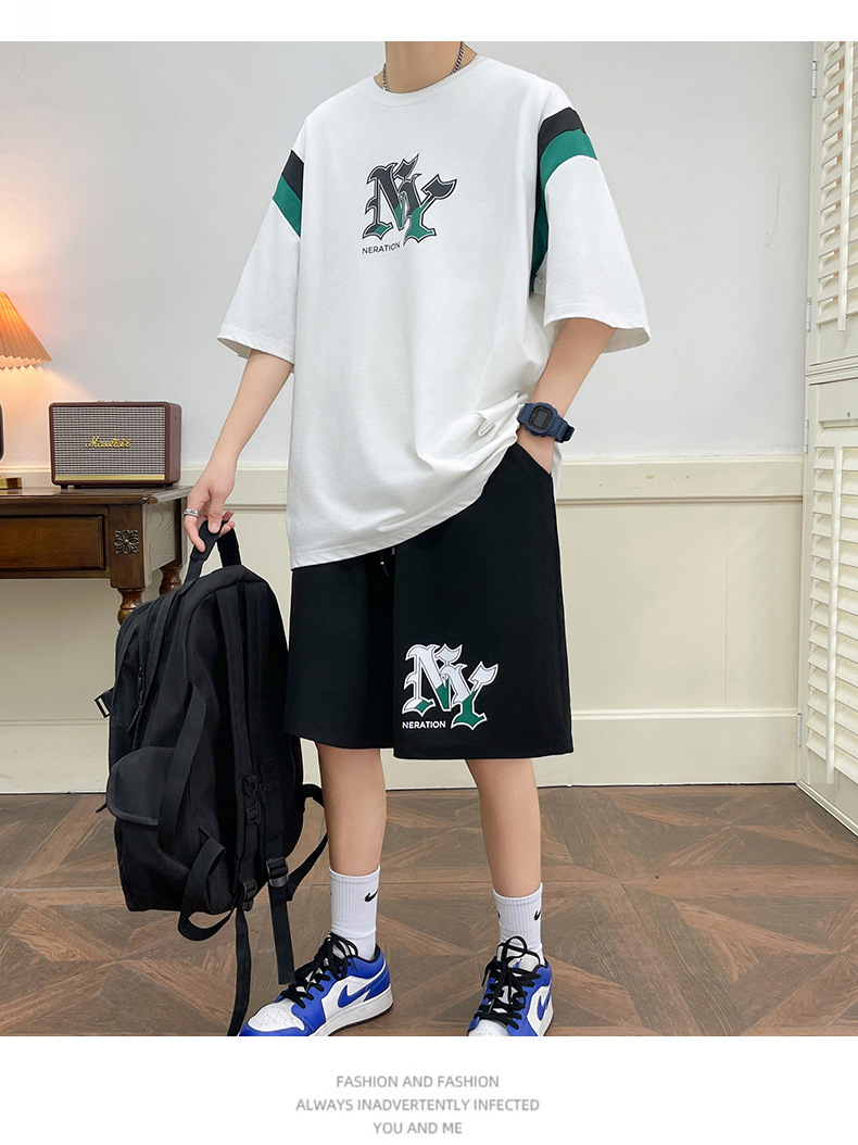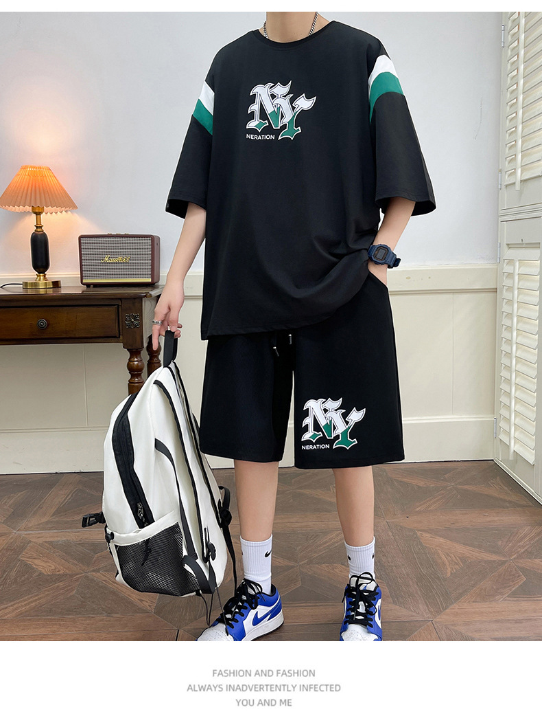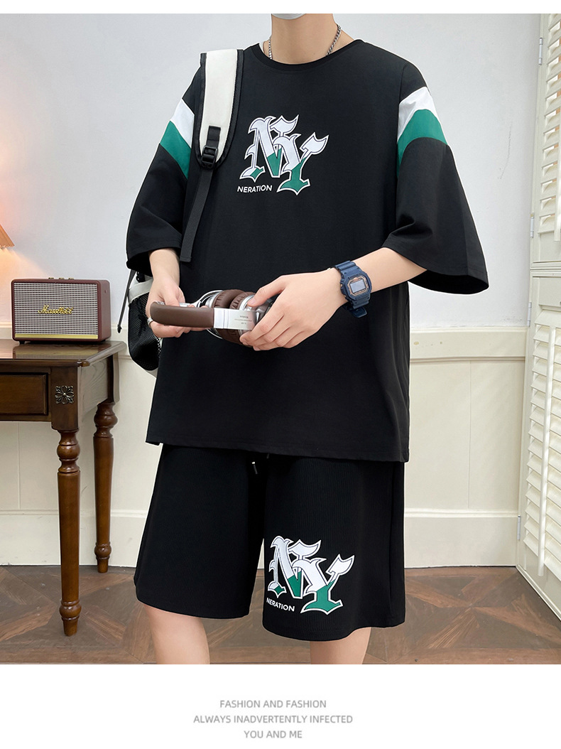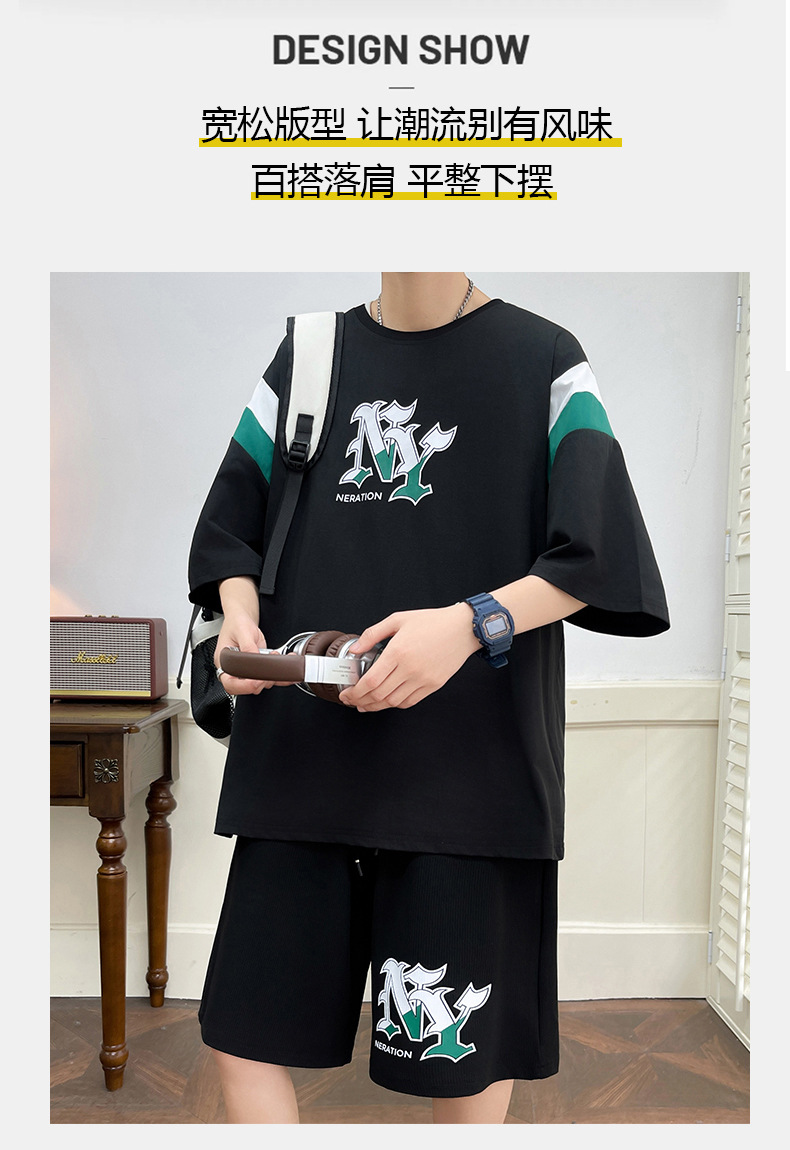 Juvenile set de pantalones cortos de mangas cortas para hombres nueva moda impresión suelta patrón de ropa deportiva casual camiseta de dos piezas set
