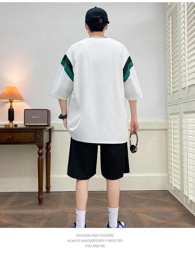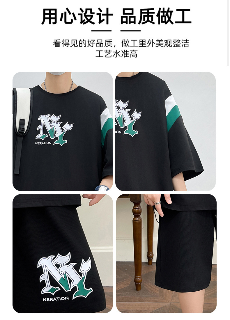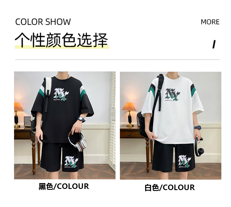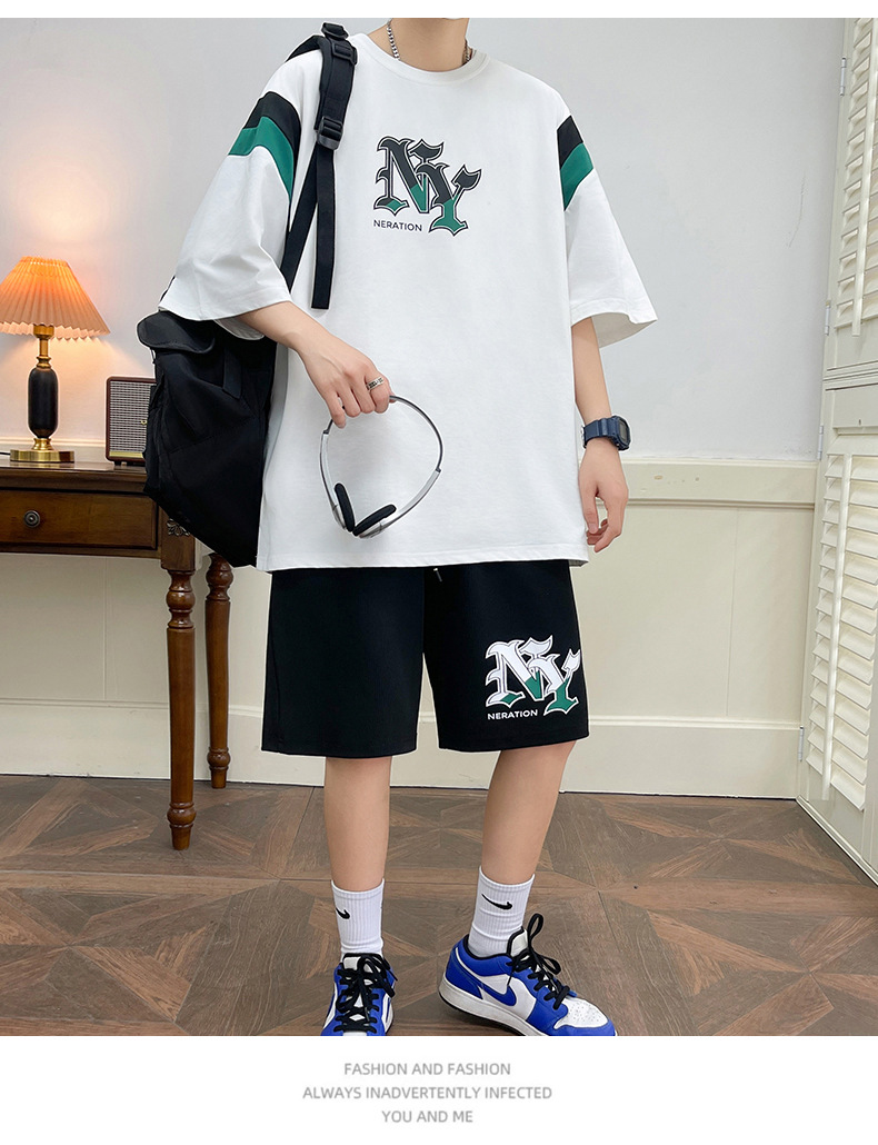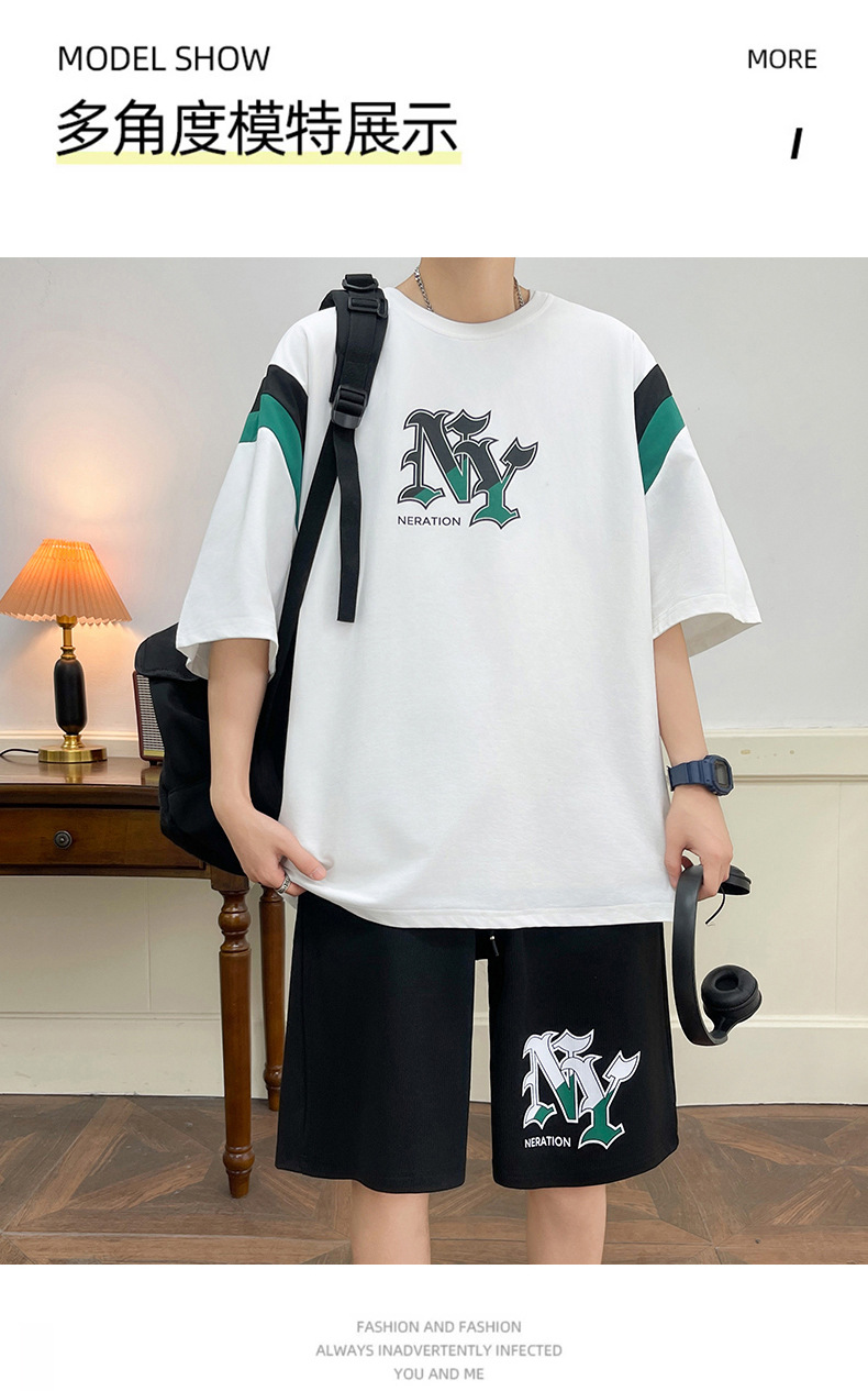 Juvenile set de pantalones cortos de mangas cortas para hombres nueva moda impresión suelta patrón de ropa deportiva casual camiseta de dos piezas set