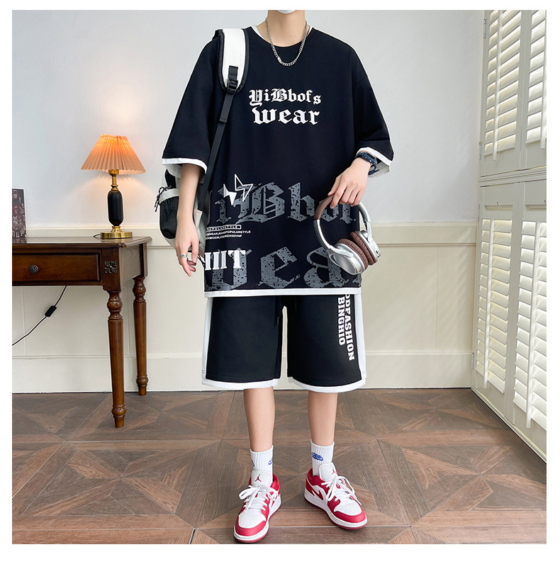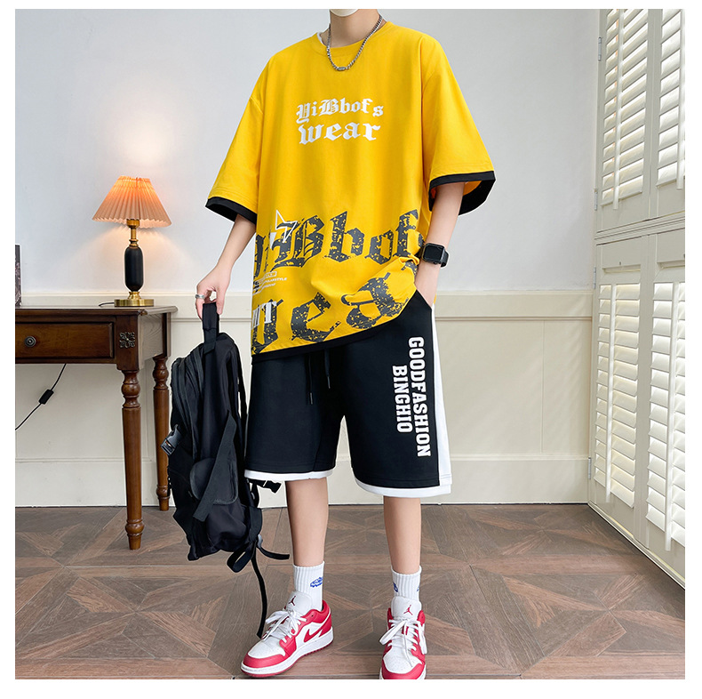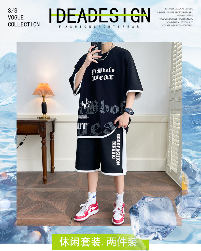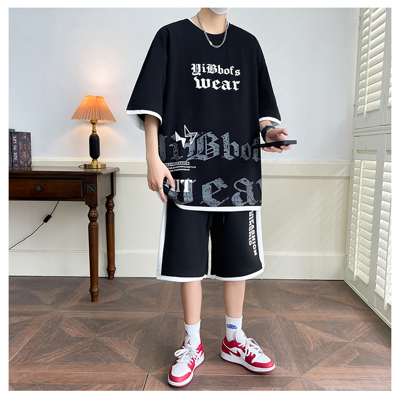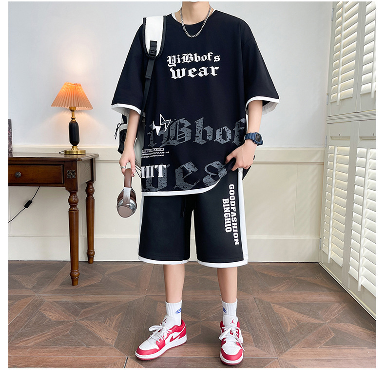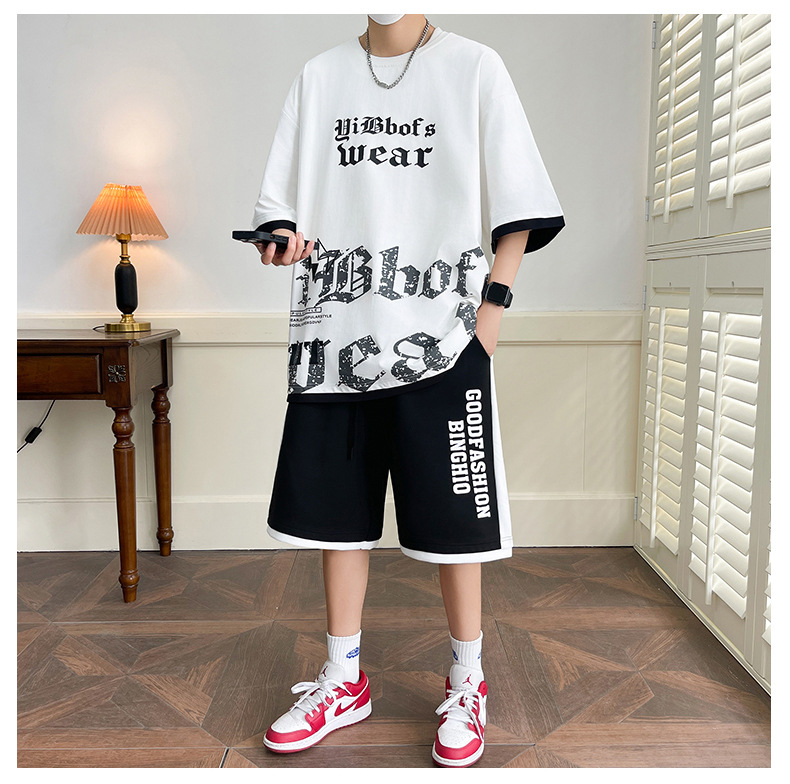 Hombre de verano suit suelto 2025 nuevos pantalones cortos de manga corta moda juvenil casual guapo camiseta deportiva dos piezas set