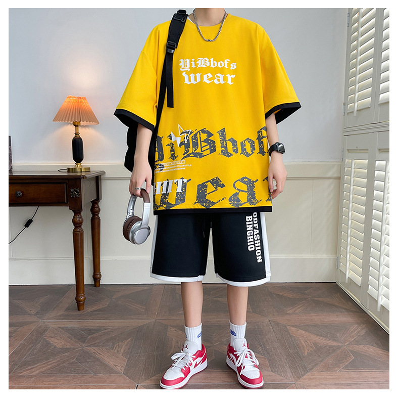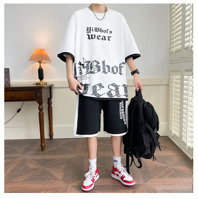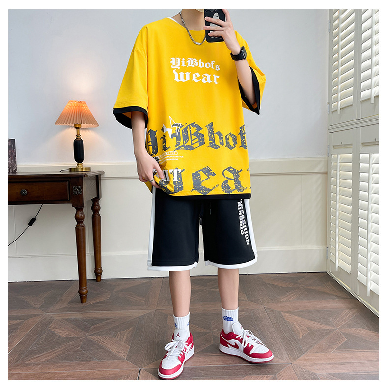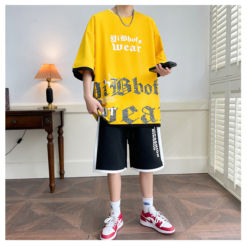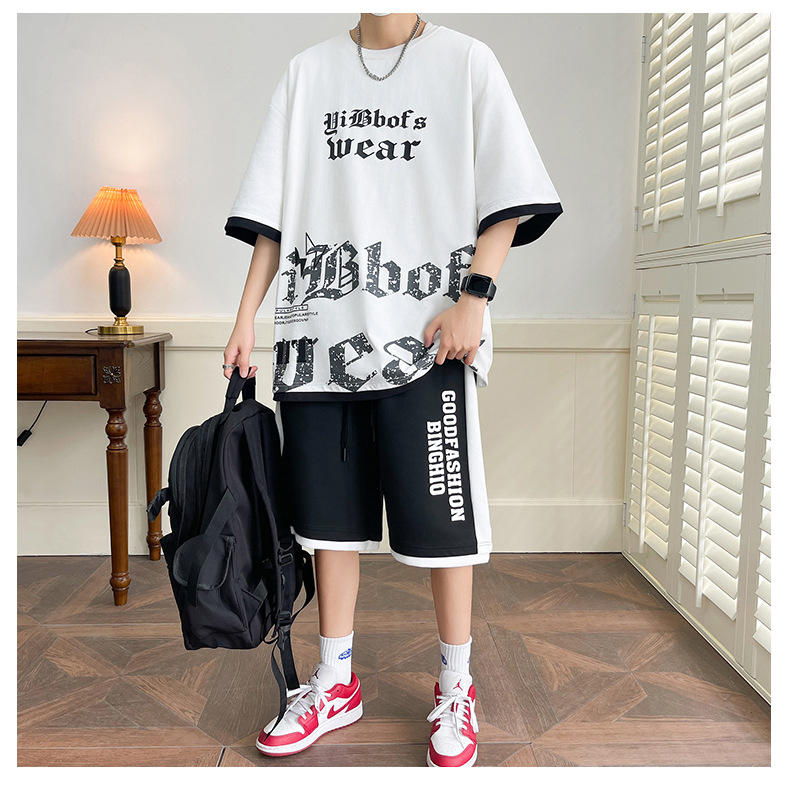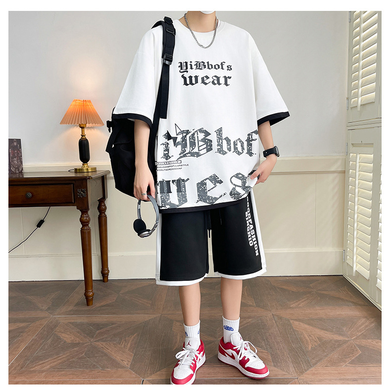 Hombre de verano suit suelto 2025 nuevos pantalones cortos de manga corta moda juvenil casual guapo camiseta deportiva dos piezas set
